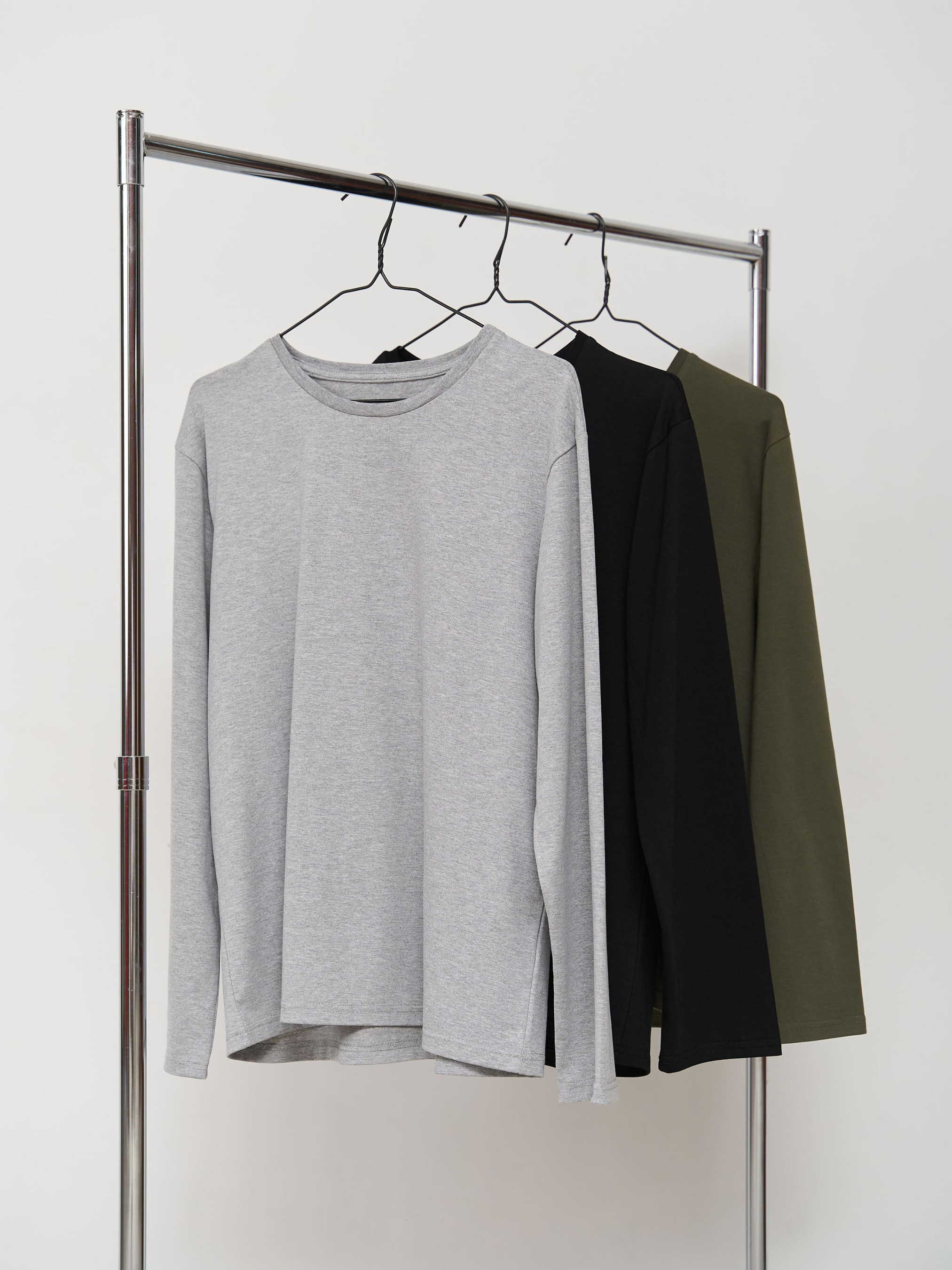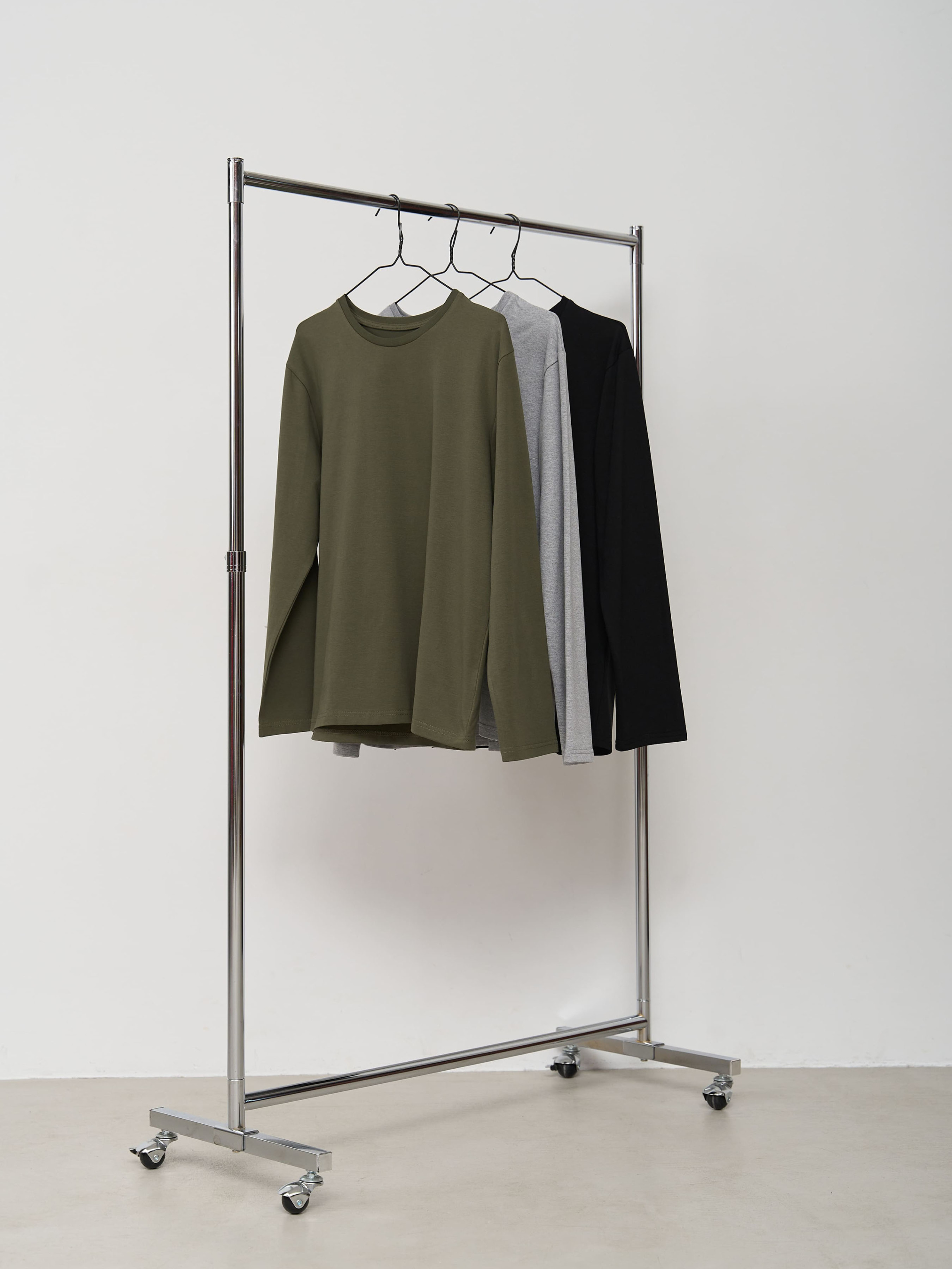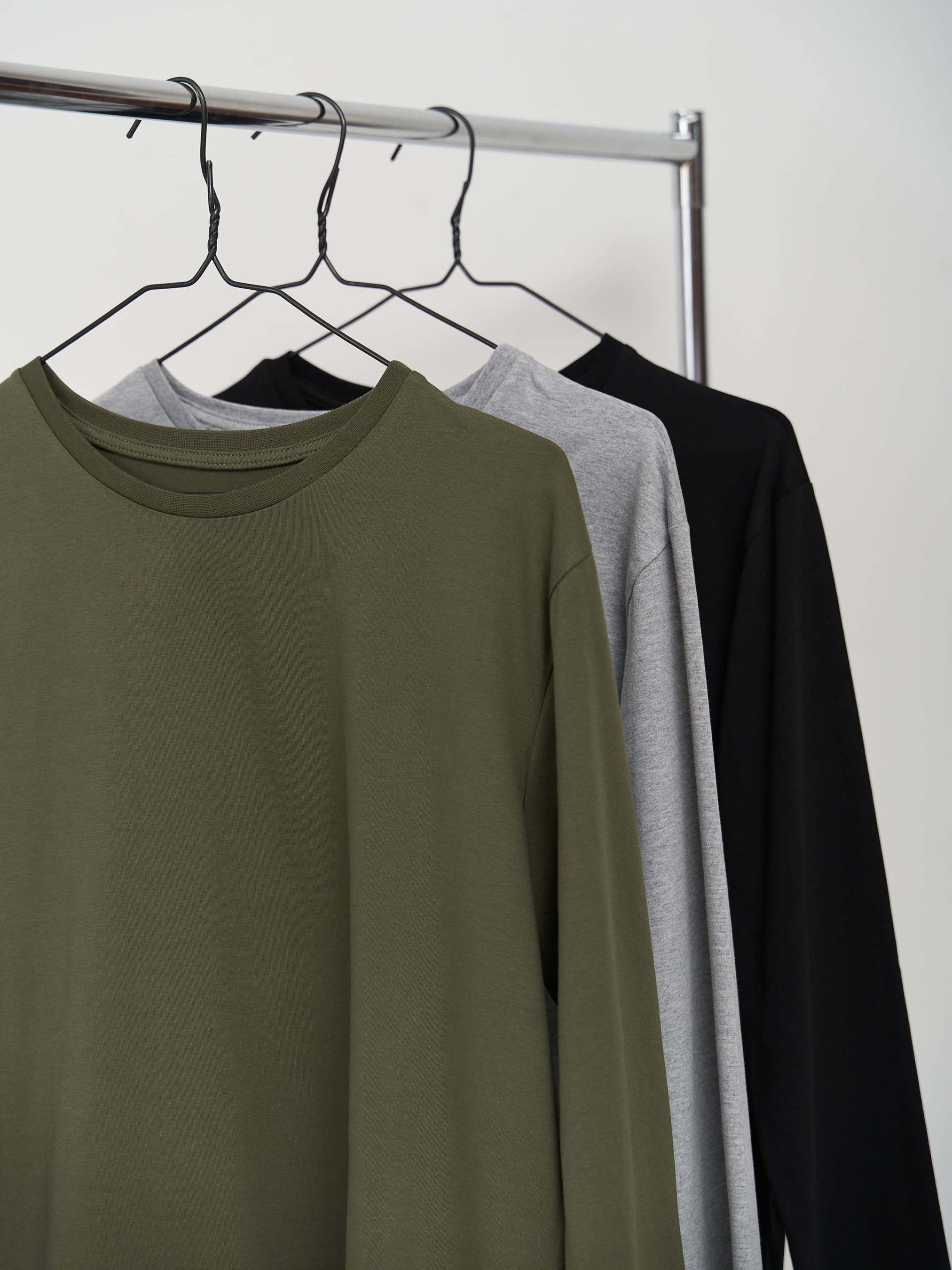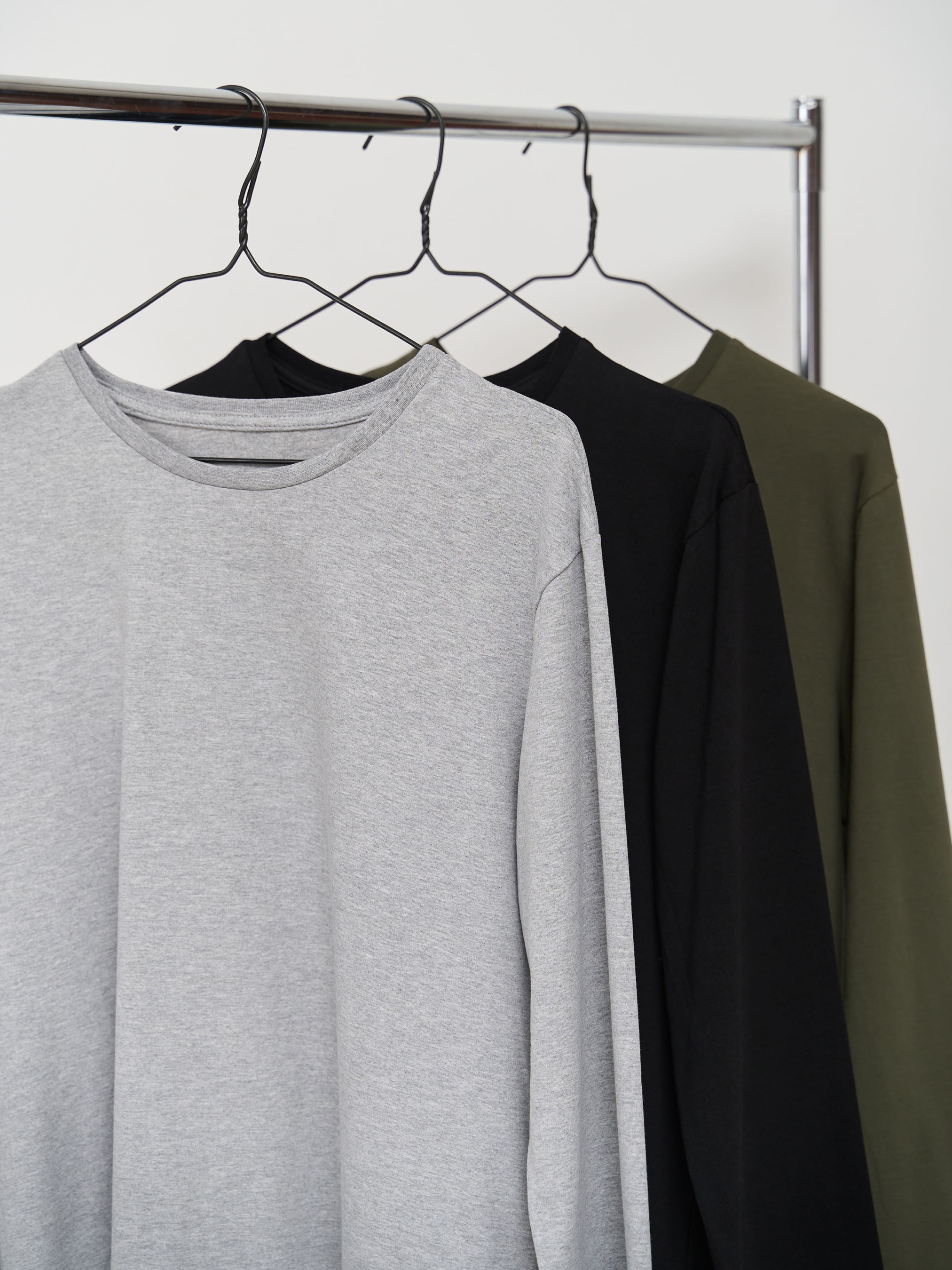 Супер пропозиція від Handy Wear! Замовляйте наш набір лонгслівів на кожен день і отримуйте знижку 10%. Лонгслів можна поєднувати з піжамними штанами в клітинку, лляними штанами, шортами, однотонними штанами з двохнитки. Носити як вдома, так і під одягом, для занять спортом. Матеріал дуже приємний до тіла: кулір, 95% бавовна. У набір входить 3 лонгсліва: чорний, сірий, хакі.