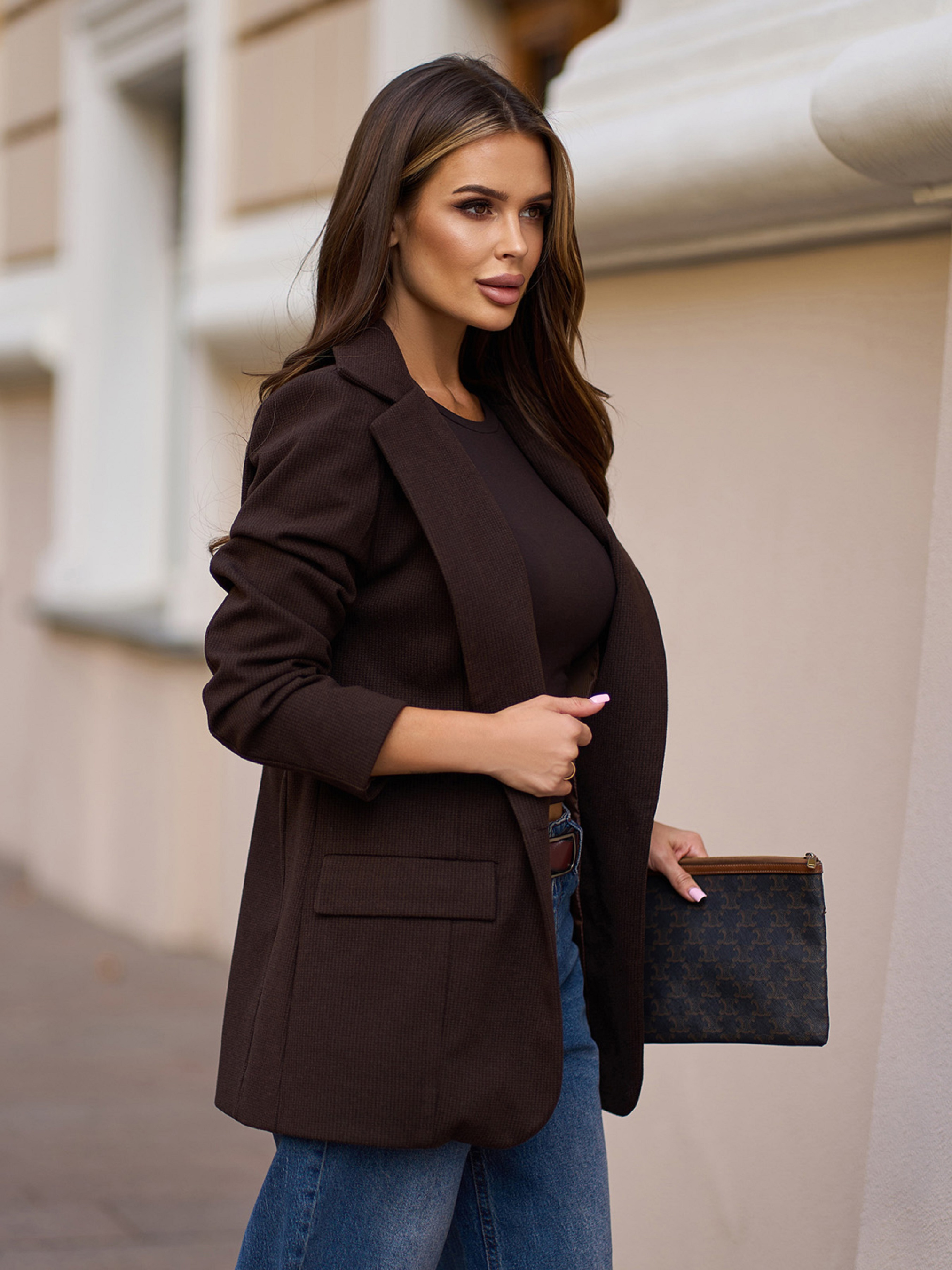 Блейзер ISSA Plus модель 15322_темно_коричневый