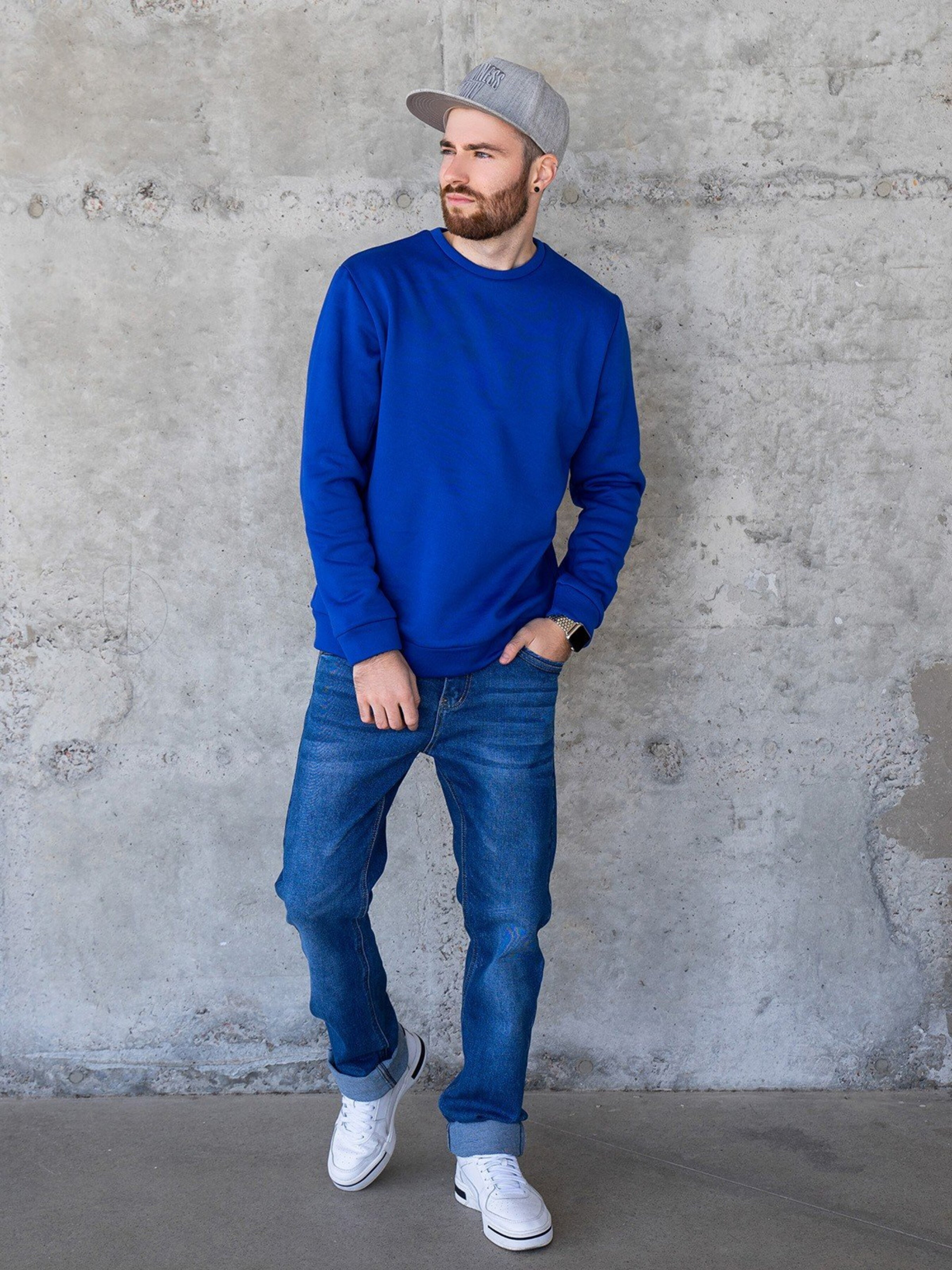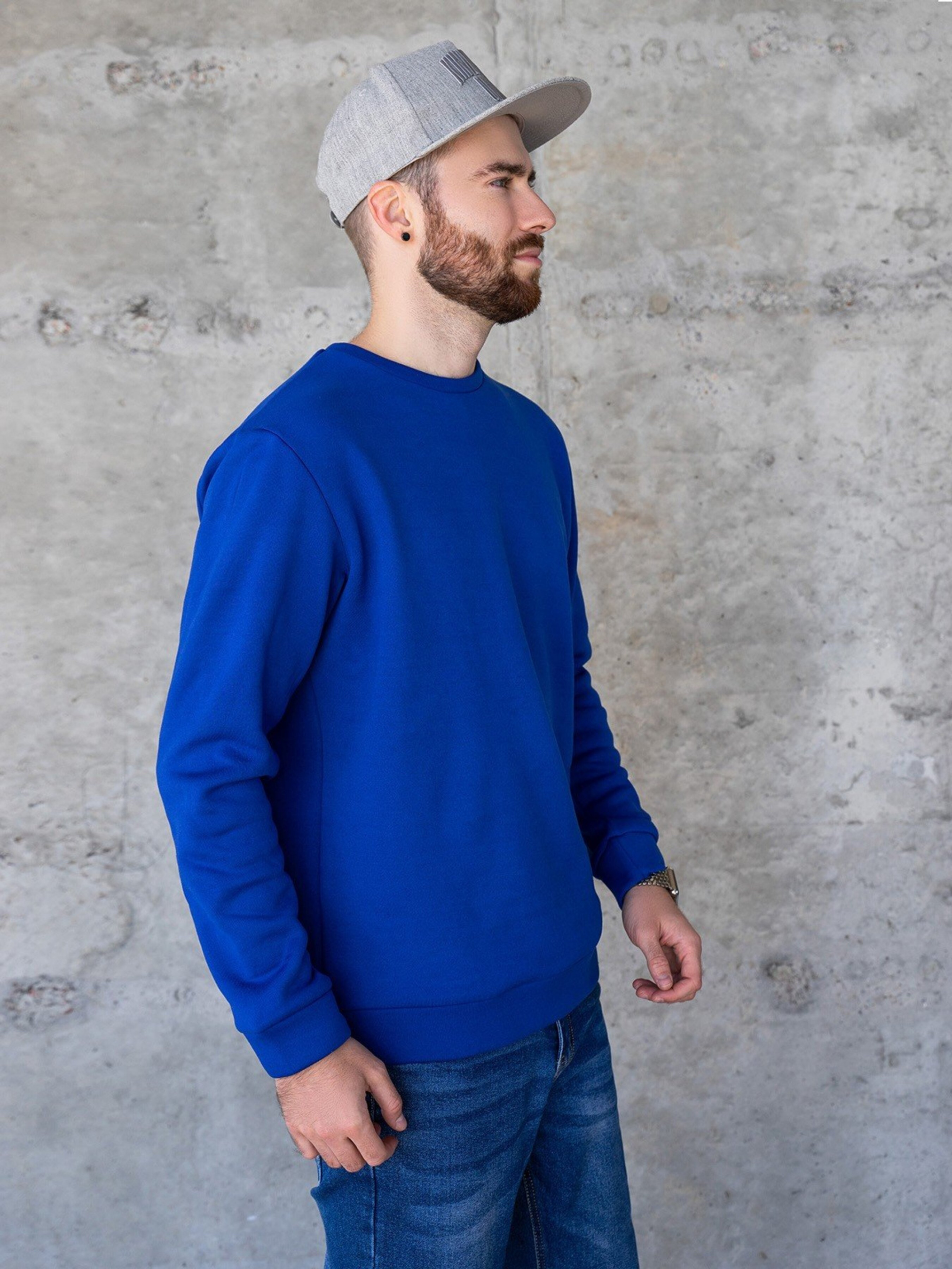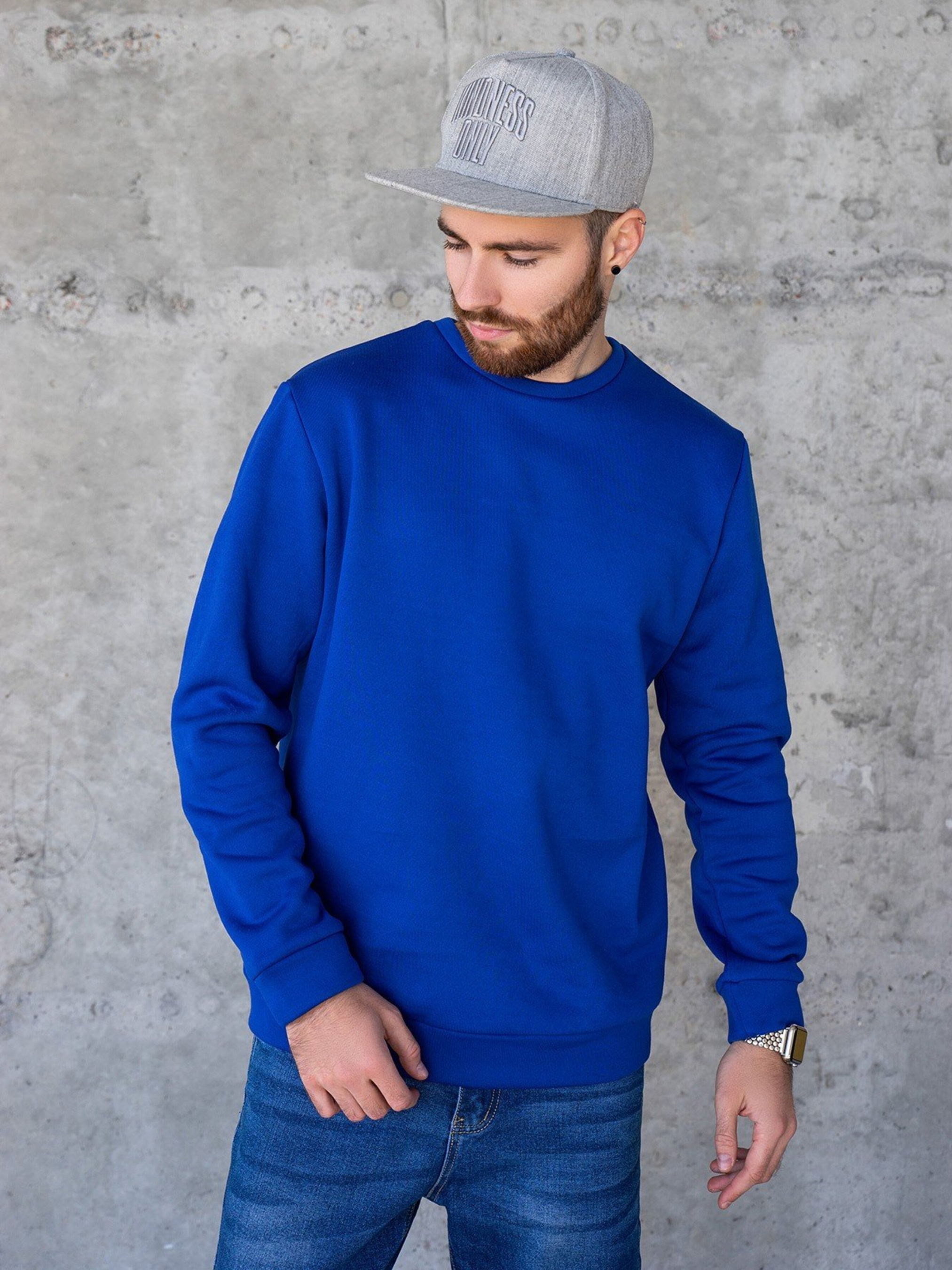 Синій теплий світшот із написами. Склад тканини: 50% бавовна, 50% поліестер. Матеріал: Трикотаж на фліcі. Напівобхват: Груди: S(56), M(58), L(60), XL(62), Довжина виробу - 71, Рукав - 64, Тканина: Середньої еластичності.