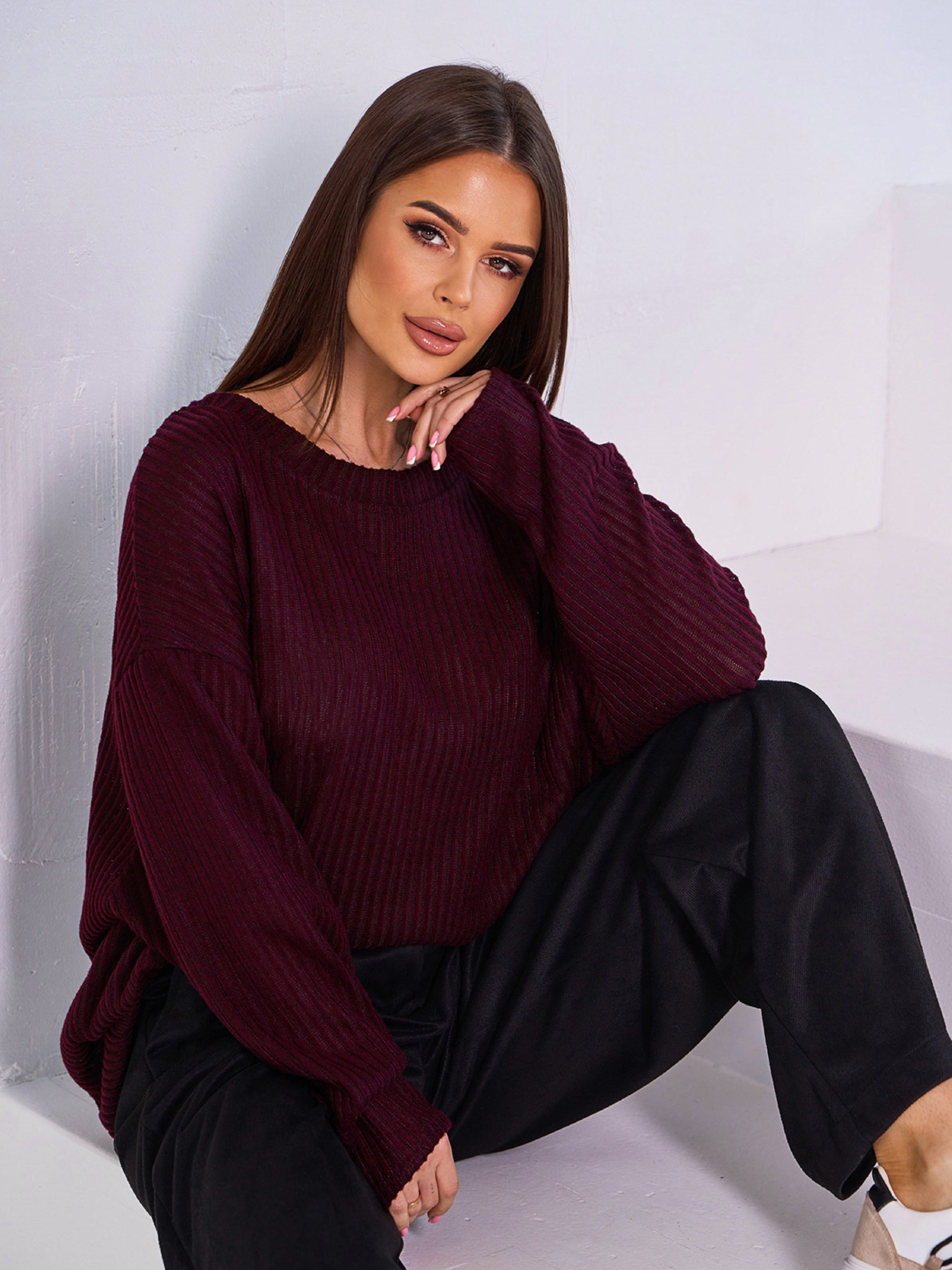 Джемпер ISSA Plus модель 15044_темно_бордовый