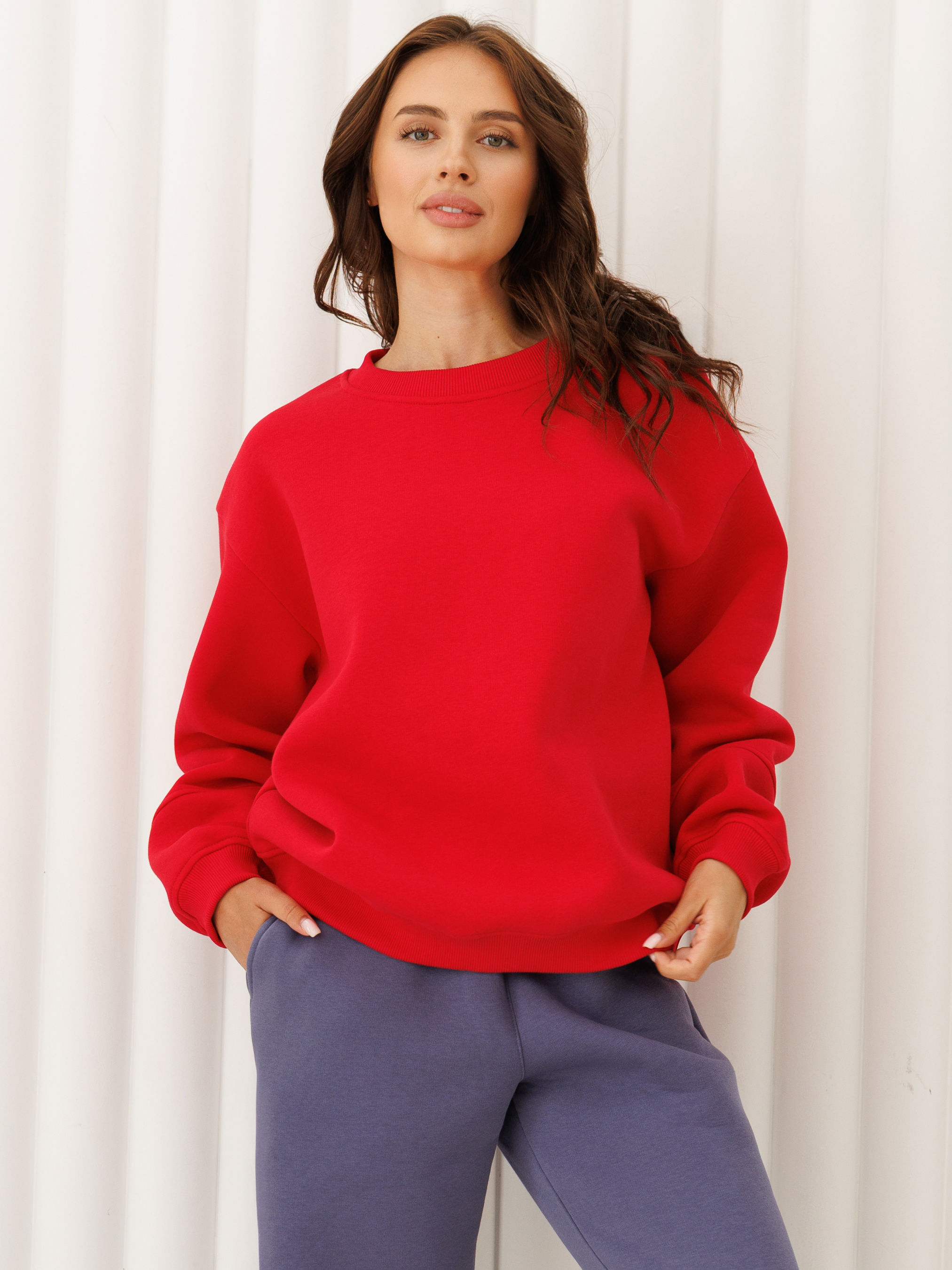 80% cotton, 20% polyester. Жіночий джемпер у червоному відтінку – практична річ, яка поєднує комфорт, тепло та універсальний стиль. М’який трикотаж на флісі приємно гріє, не обмежує рухів і забезпечує комфорт у будь-яку пору року. Вільний крій і круглий виріз створюють зручну посадку, а акуратні манжети додають охайного вигляду. Ця модель чудово підходить для повсякденного використання – вдома, на прогулянці чи в подорожі. Червоний колір легко комбінується з іншими речами у гардеробі, тому джемпер стане базою для безлічі образів – від спортивного до casual. Флісовий матеріал утримує тепло й водночас дозволяє шкірі дихати, забезпечуючи комфорт протягом усього дня. Ви можете замовити онлайн та купити цей жіночий червоний джемпер, щоб мати універсальну річ, яка виглядає стильно й залишається зручною щодня.