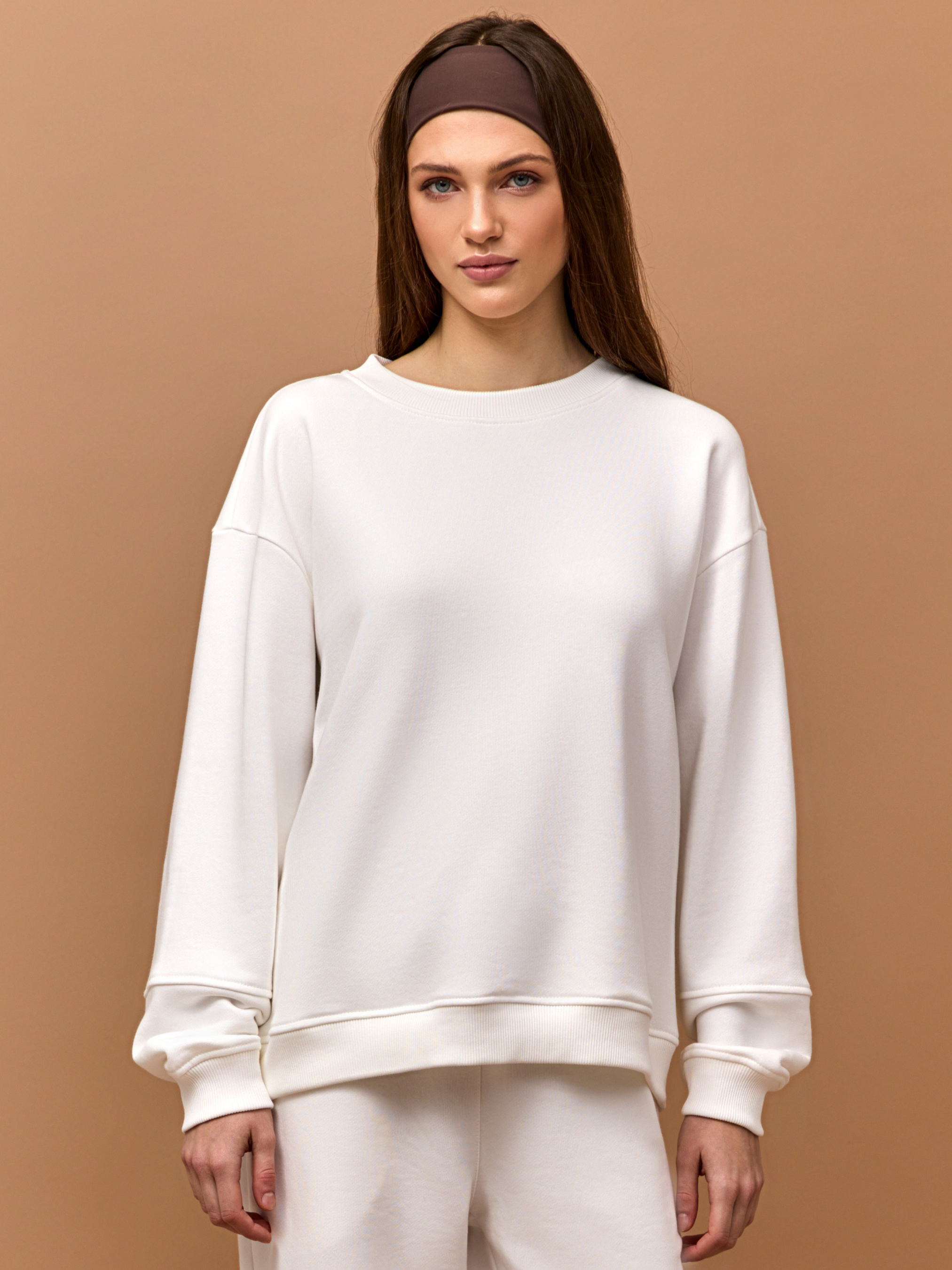 45% cotton, 40% modal, 15% polyester. М’який і світлий жіночий джемпер з бавовни із колекції SOFT DROP створений для відчуття затишку й внутрішнього спокою. Його білий відтінок символізує чистоту та легкість, гармонійно поєднується з будь-якими кольорами гардеробу. Джемпер має вільний, продуманий крій, що не обмежує рухів і додає образу невимушеності. Гладка фактура тканини й мінімалістичні лінії підкреслюють сучасний комфорт і природну жіночність. Виготовлений з натуральної бавовни, він приємний до тіла, дихає й забезпечує комфорт у будь-яку пору року. Ідеальний варіант для відпочинку, прогулянок або вихідних у місті. Замовити та купити джемпер білого кольору онлайн із капсульної колекції SOFT DROP та додати до свого базового гардеробу частинку м’якості й тепла.