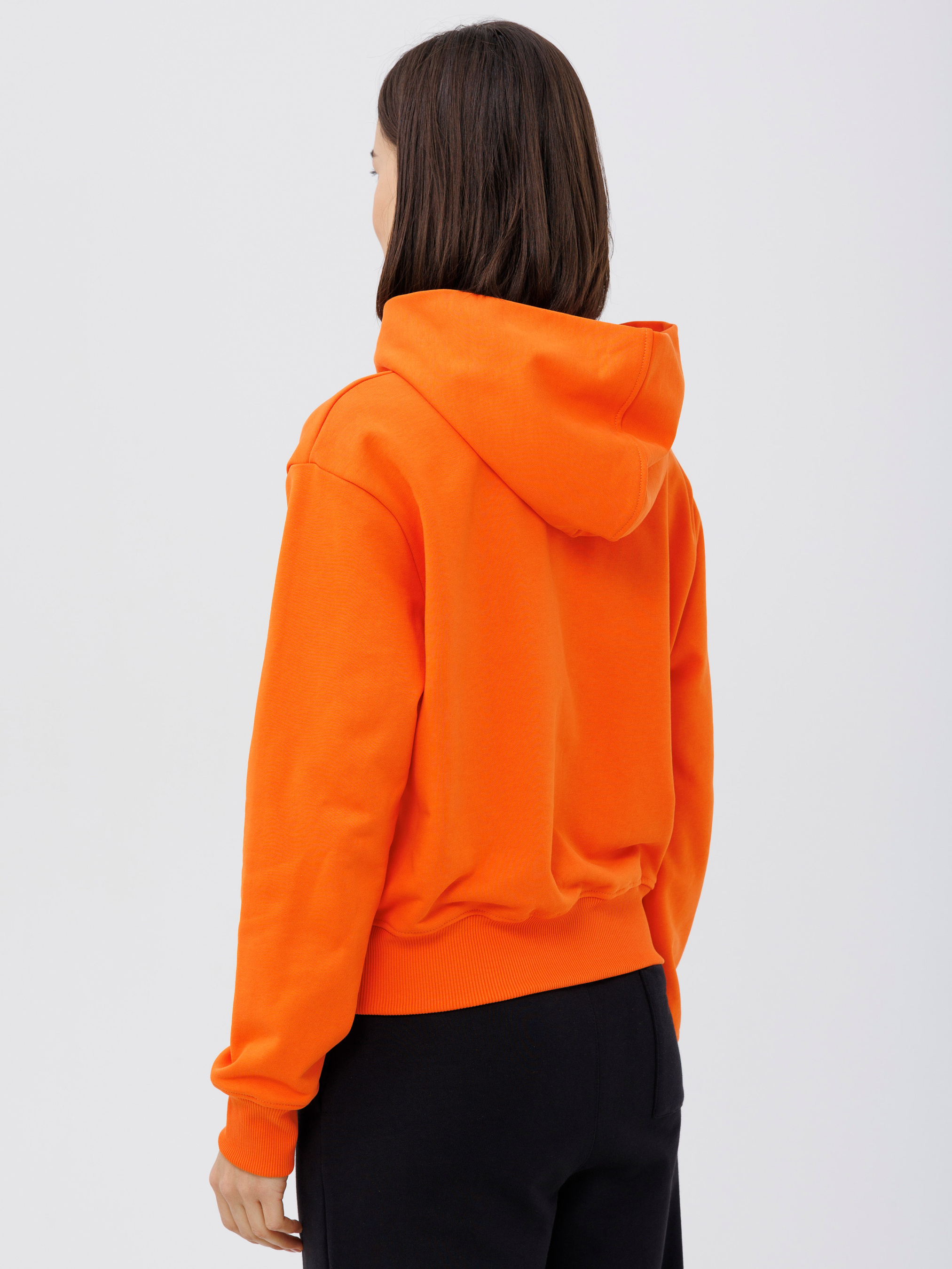100% cottonОдна з найулюбленіших речей у холодну пору року - джемпер. Цей варіант джемперу має капюшон, та надпис-прикрасу, довгий рукав, а також може похвалитися вкороченим фасоном. Ця деталь важлива для підкреслення вашої фігури, адже комбінуючи з іншими речами, гарно підкреслюється талія та стегна. Джемпер універсальний, на кожен день. Є у двох варіантах кольору - чорний та оранжевий.
