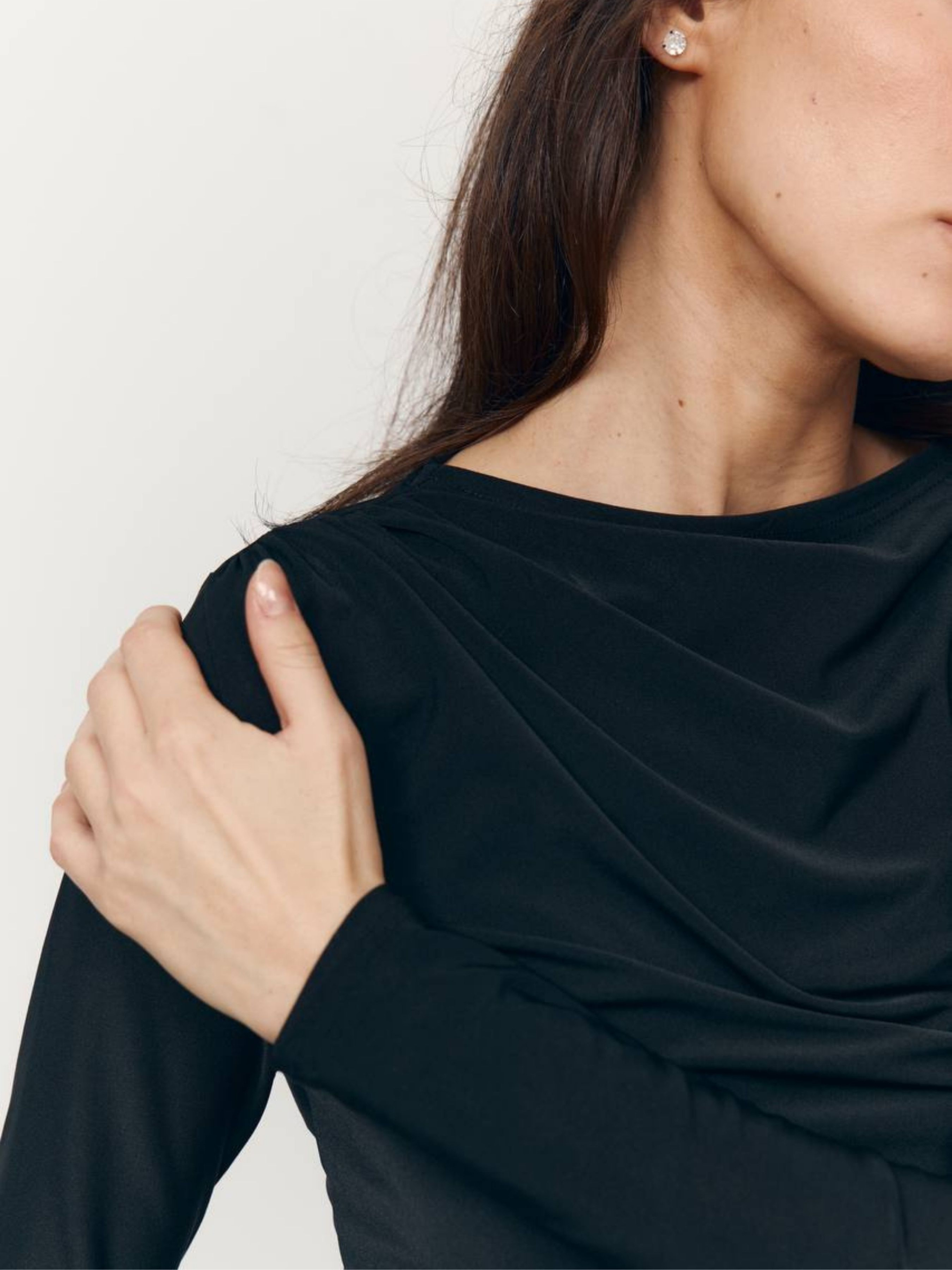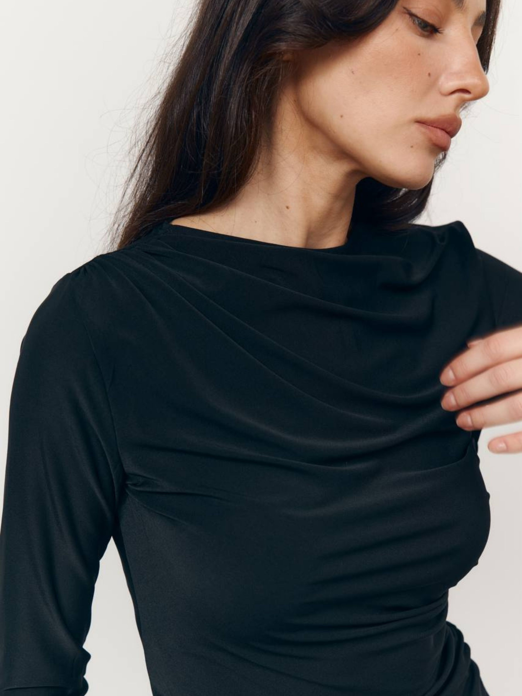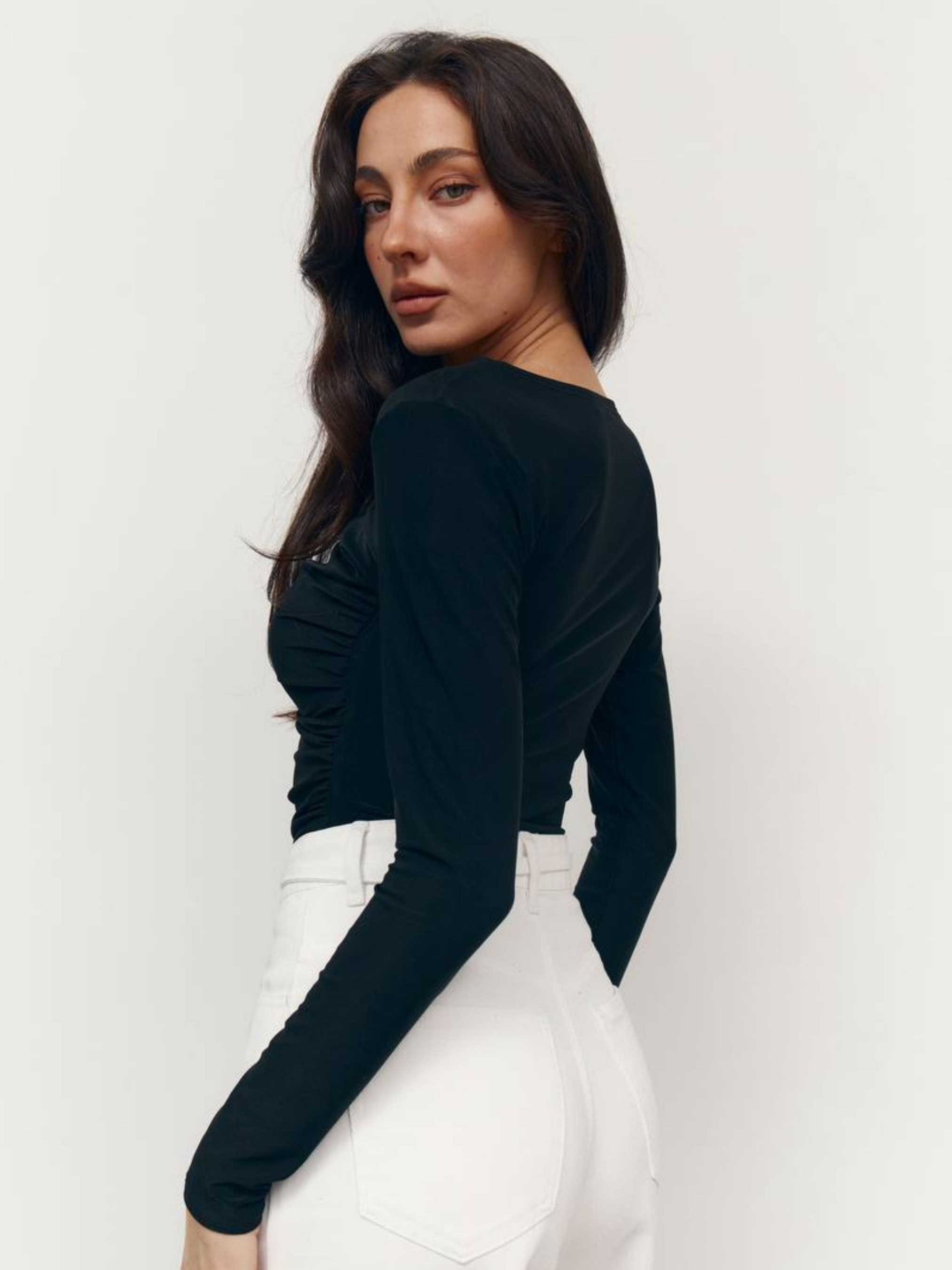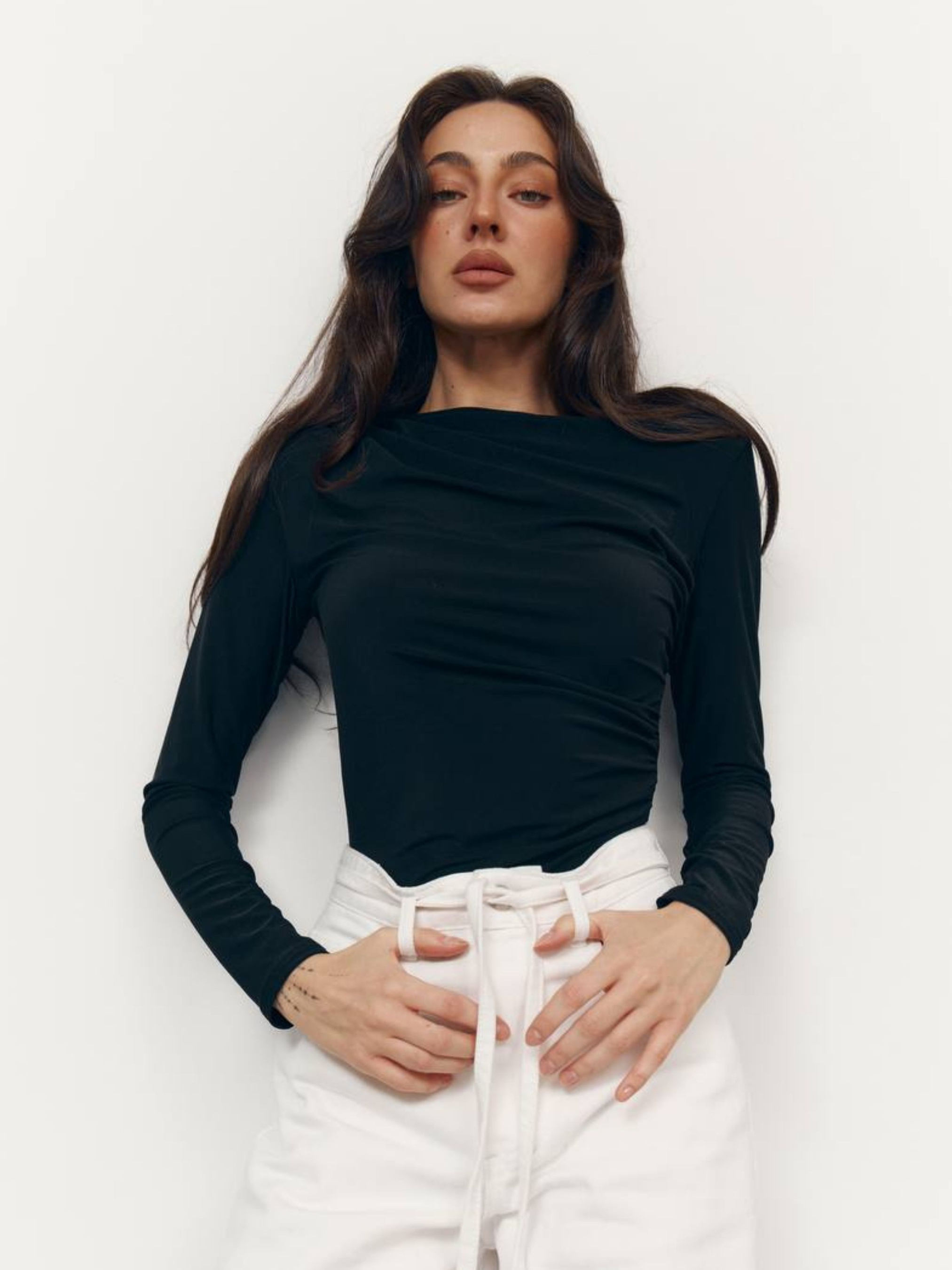 М'який, елегантний та базовий саме таким має бути ідеальний лонг. Модель із ніжного стрейчевого трикотажу із вмістом віскози дарує приємне почуття на тілі та комфорт протягом усього дня. Ніжна драпіровка надає жіночності та акцентує лінію силуету. Завдяки еластичній тканині лонг ідеально сідає по фігурі, не сковує руху і легко поєднується як з денним, так і вечірнім гардеробом. Ідеальний вибір для тих, хто цінує чисті лінії, комфорт та витонченість у деталях.