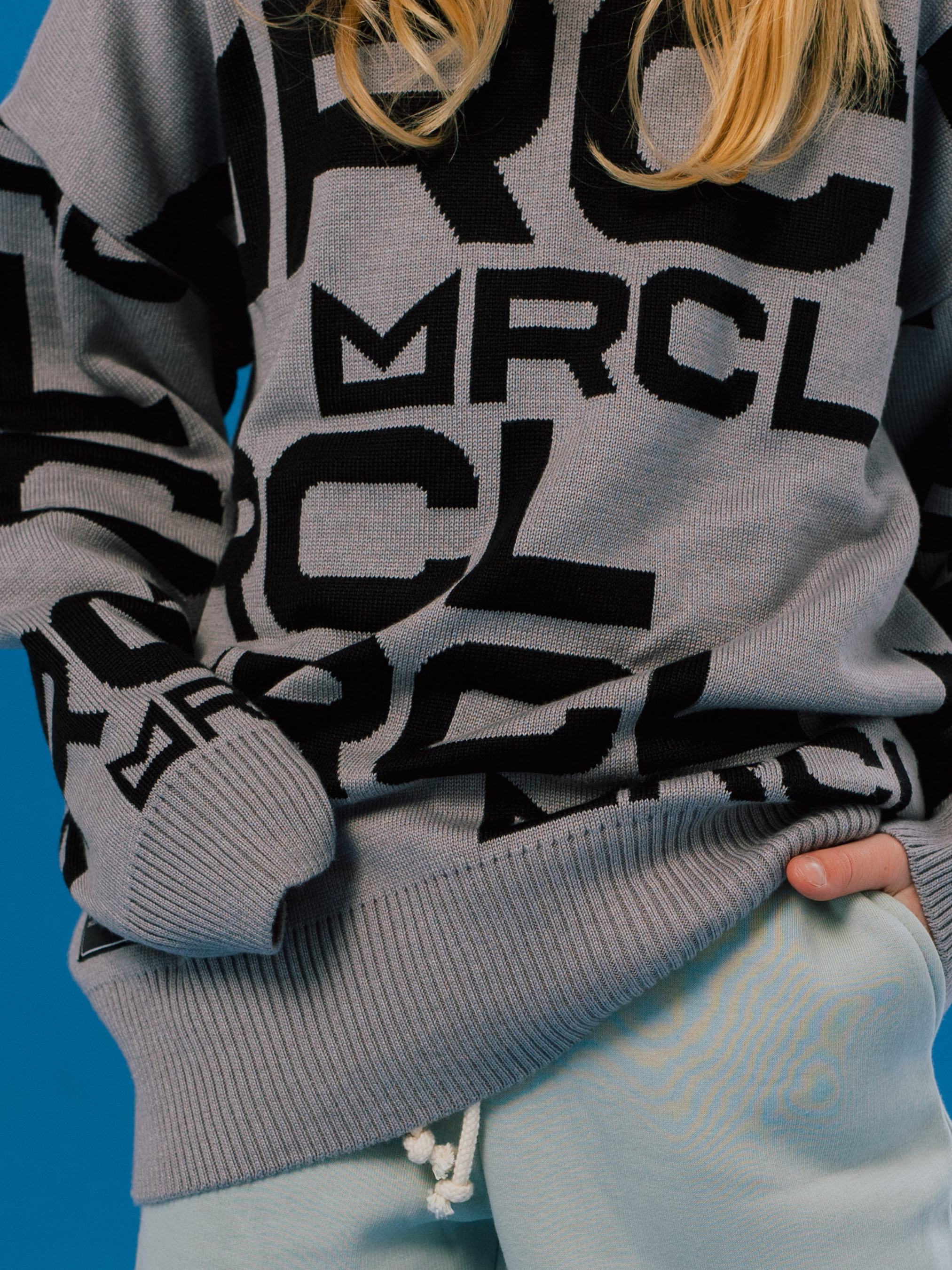 Сірий дитячий джемпер з контрасним чорним брендуванням.