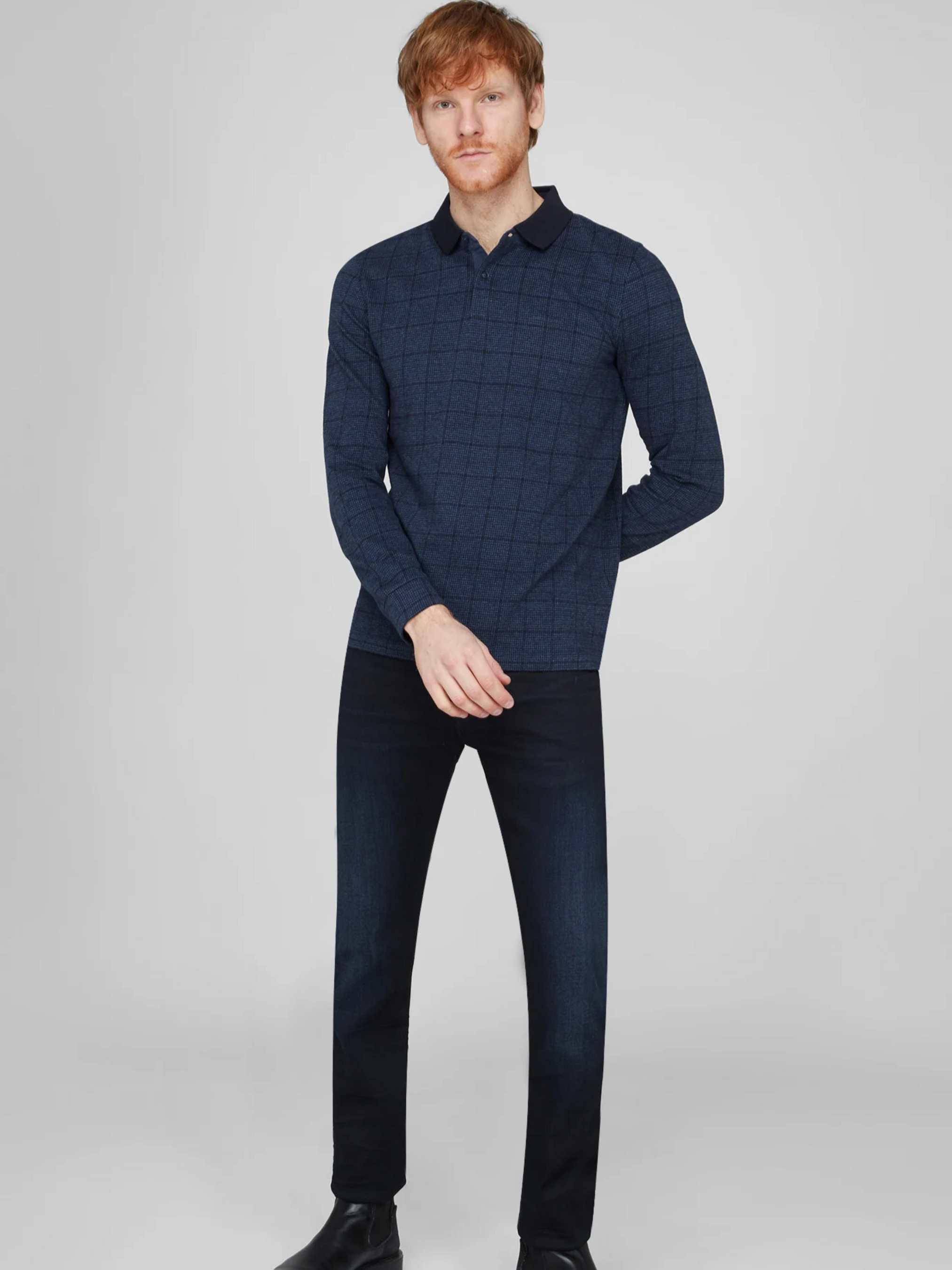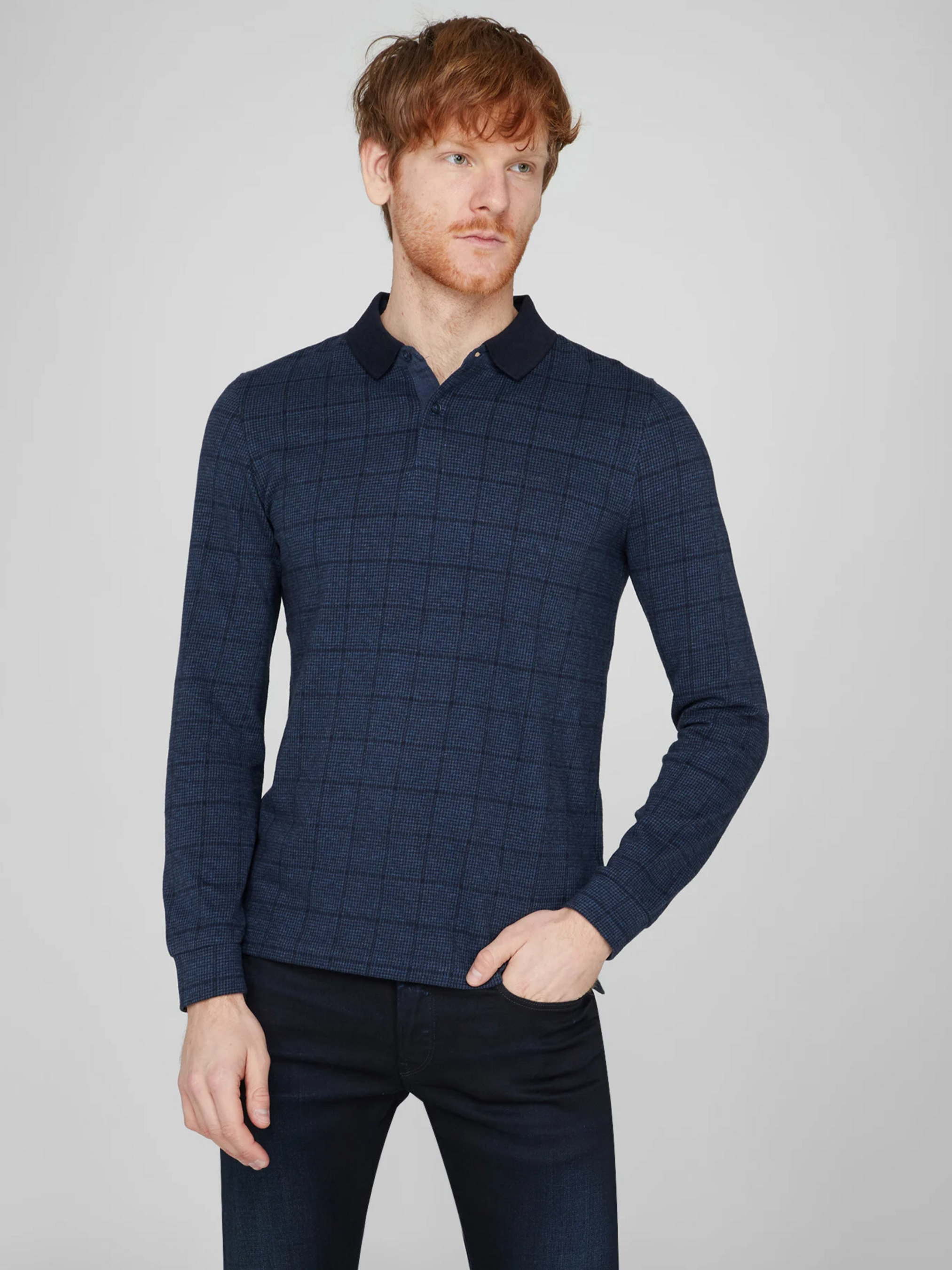 Комфорт, класика і текстурний шарм у кожній нитці Основні характеристики: Колір: глибокий синій із картатим візерунком «гусина лапка» — він додає текстурної глибини базовому кольору. Матеріал: 100 % бавовна — натуральний, повітропроникний, приємний до тіла. Тип рукава: довгий — забезпечує універсальність для демісезонного носіння. Комір: відкладний класичний комір. Застібка: акуратні ґудзики — функціональні та естетично завершені. Крій: прямий силует — поєднує свободу руху і гармонію з формою тіла. Фасон: лаконічна, стримана тканина з візерунком додають універсальних акцентів до базового стилю. Чому варто обрати це поло: Текстурний шарм: візерунок «гусина лапка» надає глибини образу, роблячи його більш вишуканим, ніж однотонне. Натуральність і комфорт: 100 % бавовна — дихає, не викликає подразнень, підходить для всесезонного використання. Сільська елегантність: довші рукави та класичний комір — чудово пасує як до офісного стилю, так і до smart-casual. Легкість у догляді: натуральна тканина проста в пранні та носінні.