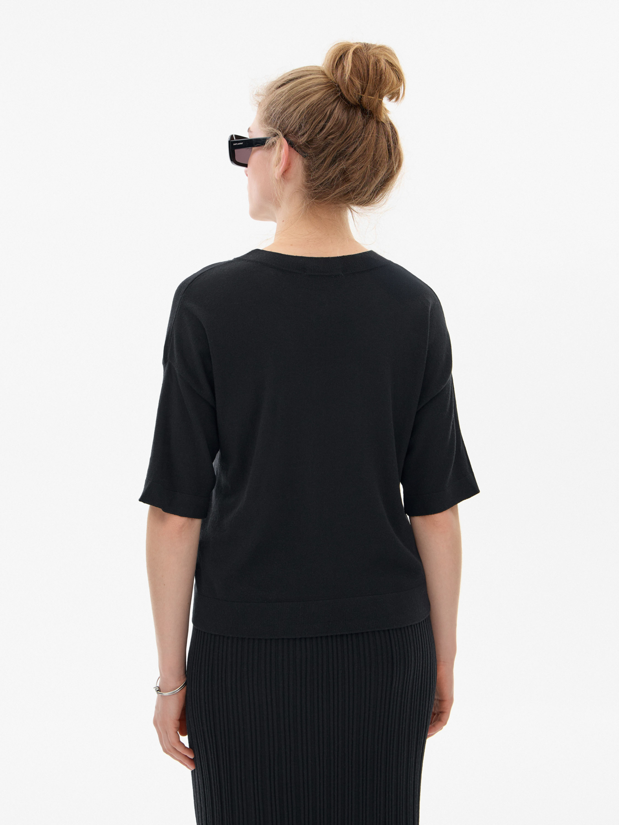 Футболка в'язана ТМ Promin - тільки високоякісні натуральні тканини. Склад: Модал - 45%, Акрил - 37%, ПА - 18% Колір: Чорний