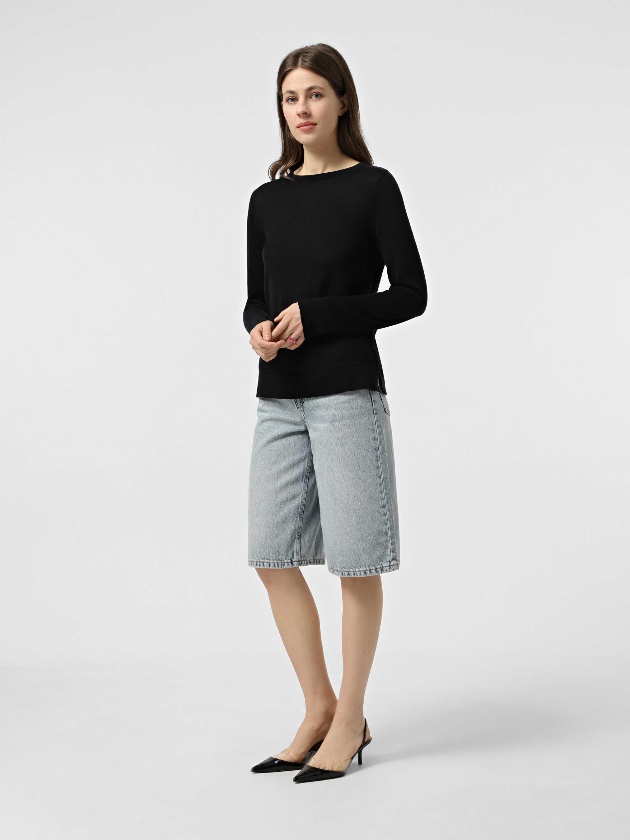 Лонгслів в'язаний ТМ Promin - тільки високоякісні натуральні тканини. Склад: Віскоза - 100% Колір: Чорний