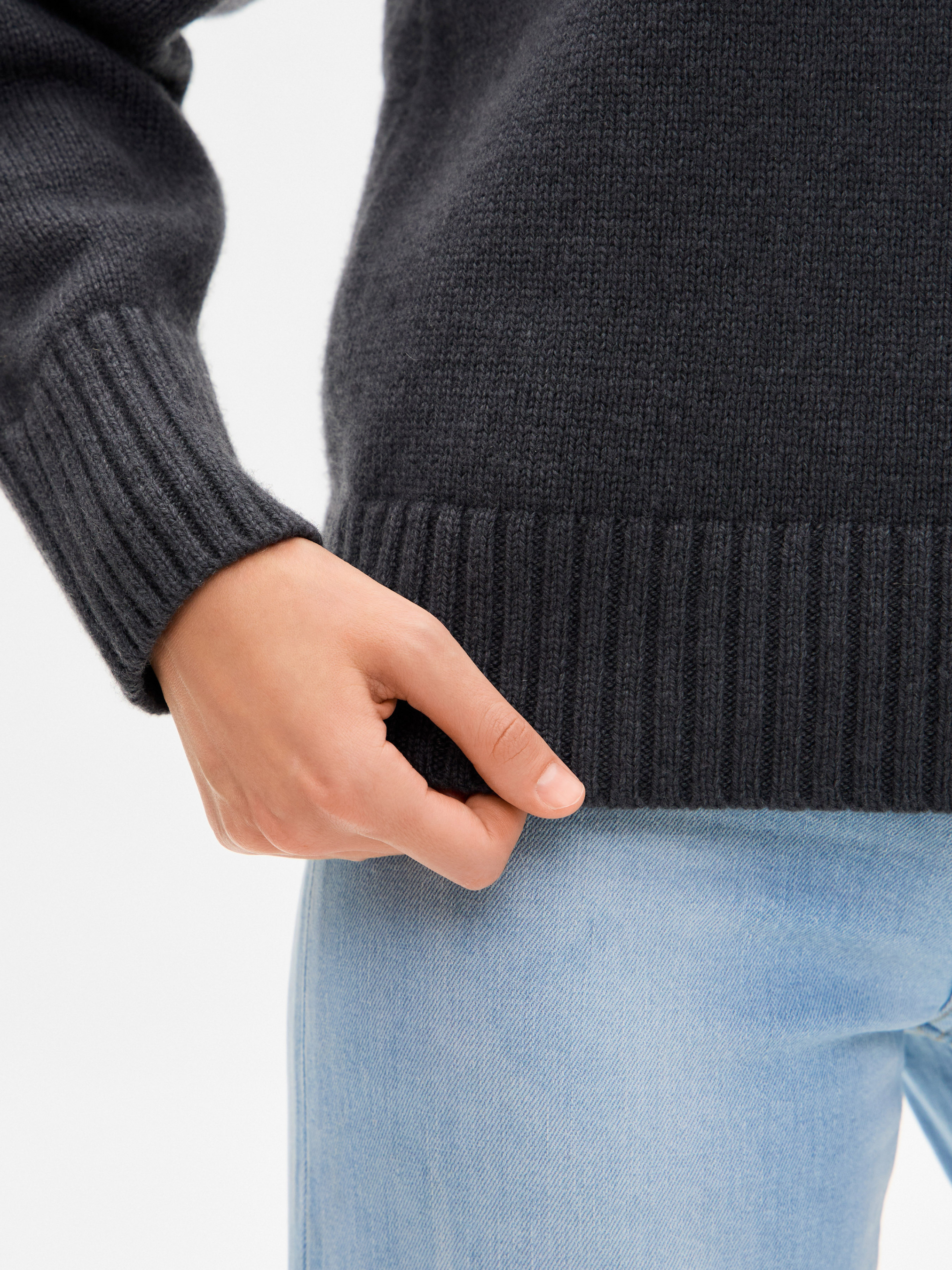 Светр ТМ Promin - тільки високоякісні натуральні тканини. Склад: Кашемір - 10%, Мерінос - 40%, віскоза - 30%, Поліамід - 20% Колір: Графіт