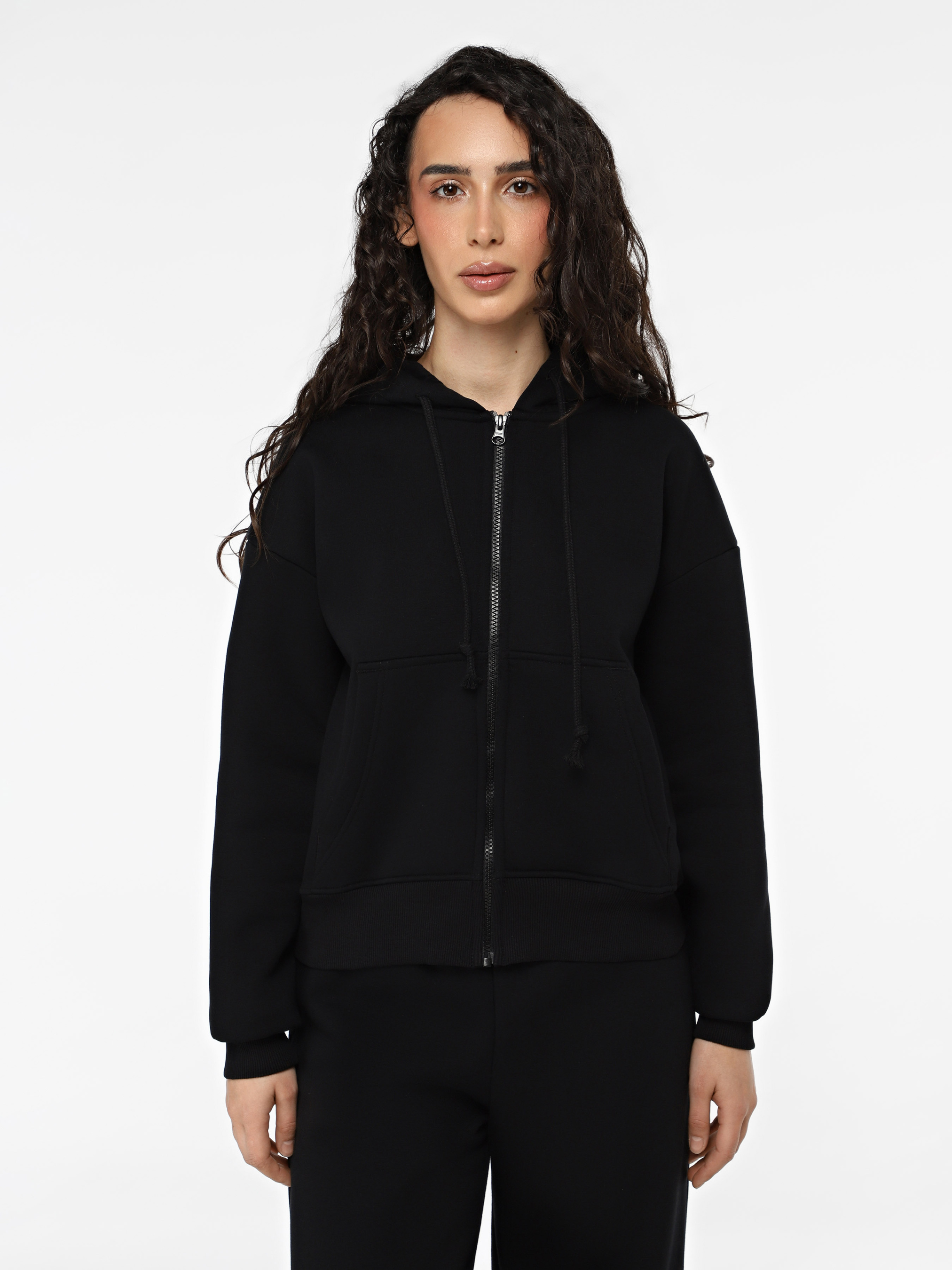 Худі жіночий з блискавкою ТМ Promin - тільки високоякісні натуральні тканини. Склад: Бавовна - 80%, Поліестер - 20% Колір: Чорний