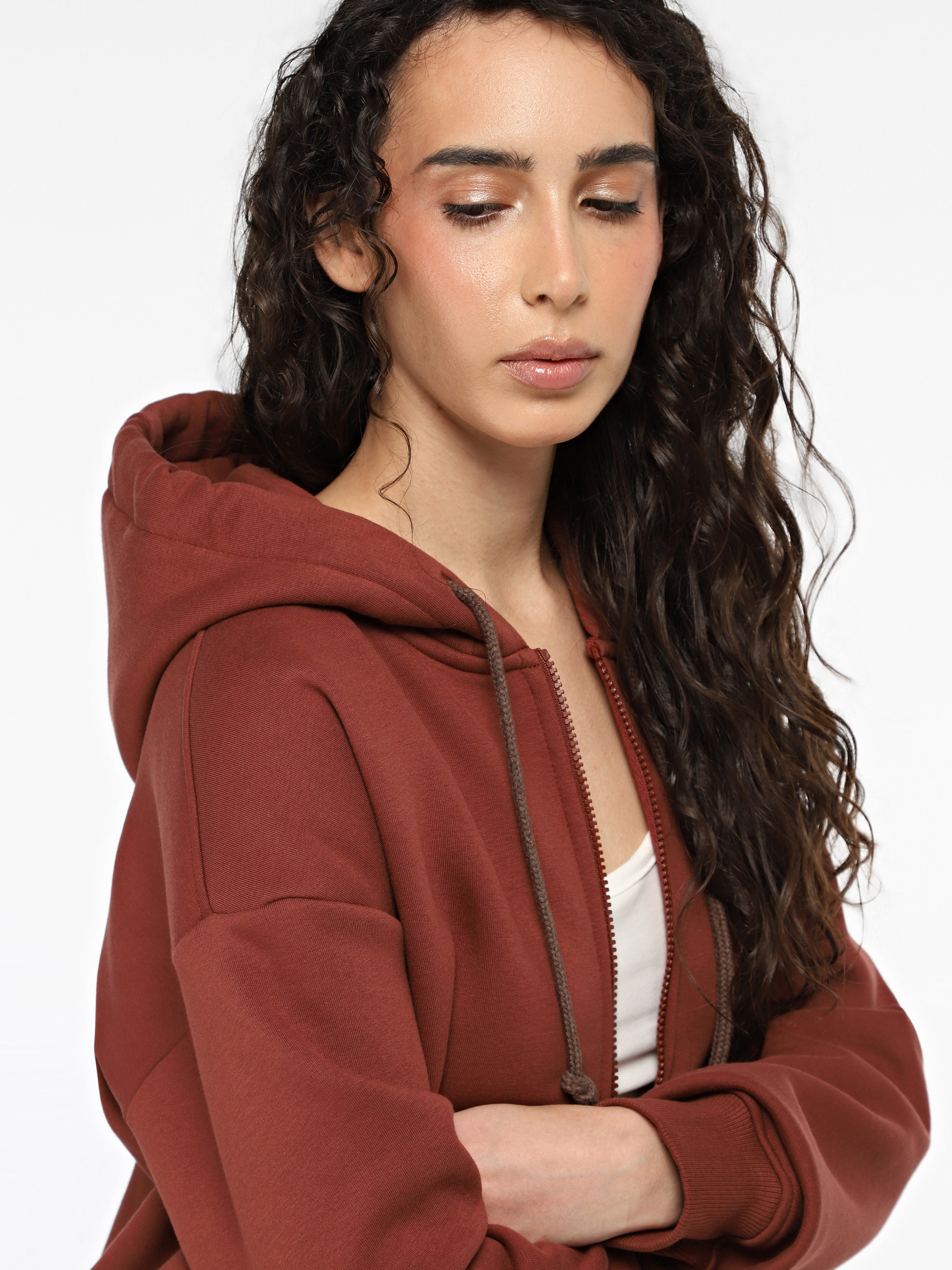 Худі жіночий з блискавкою ТМ Promin - тільки високоякісні натуральні тканини. Склад: Бавовна - 80%, Поліестер - 20% Колір: Цегляний