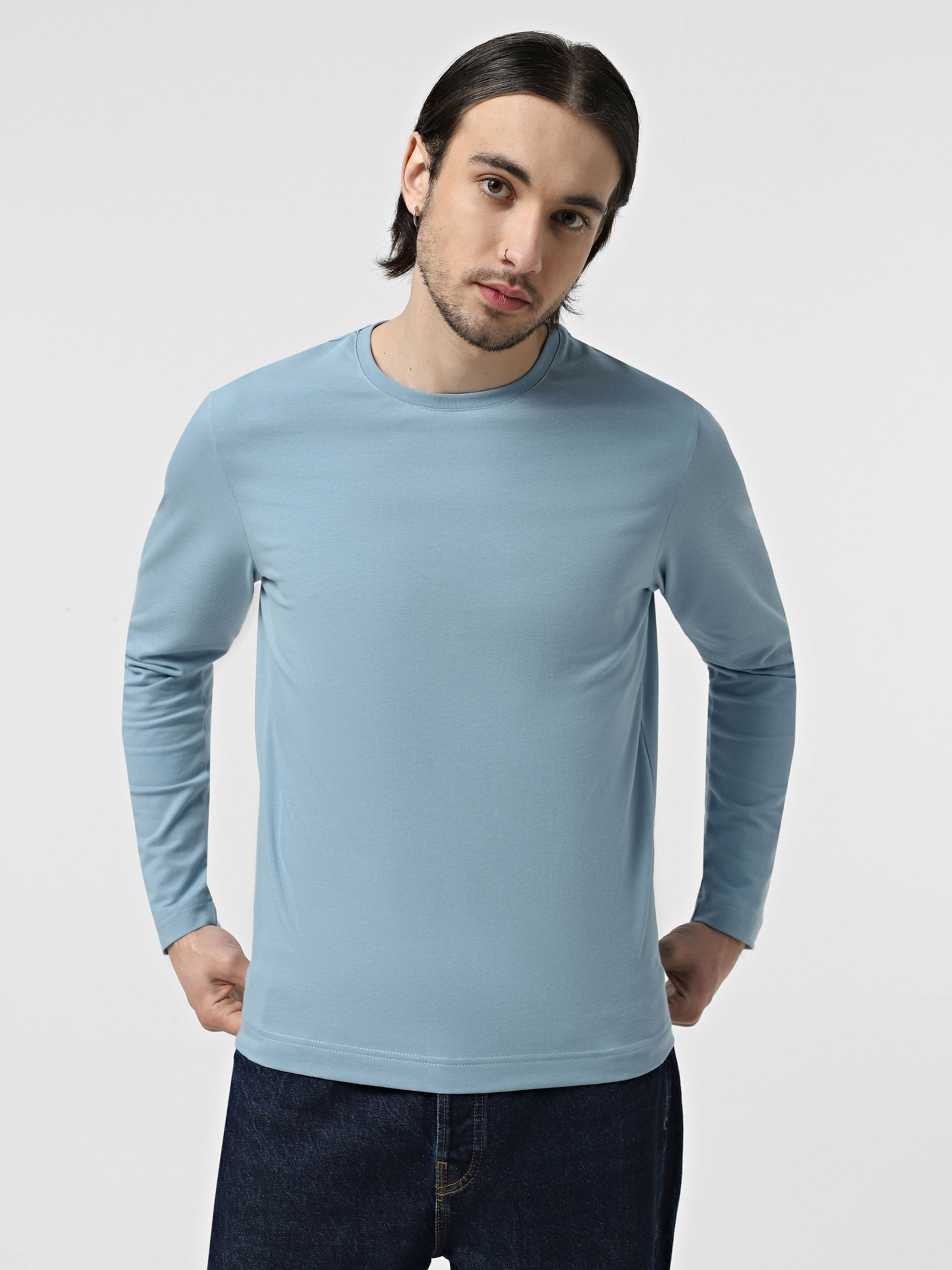 Лонгслів ТМ Promin - тільки високоякісні натуральні тканини. Склад: Бавовна - 95%, Еластан - 5% Колір: Сіро-блакитний