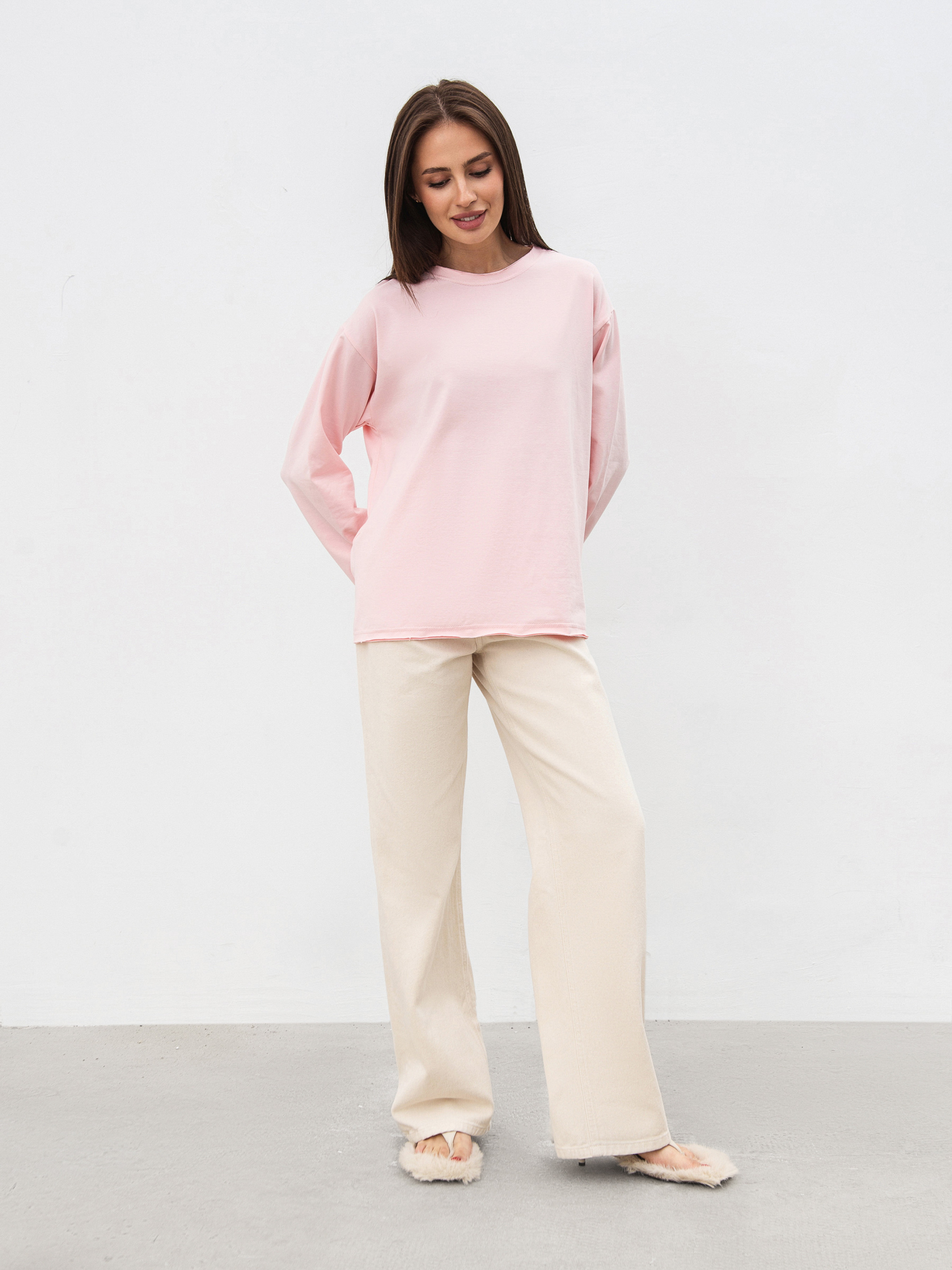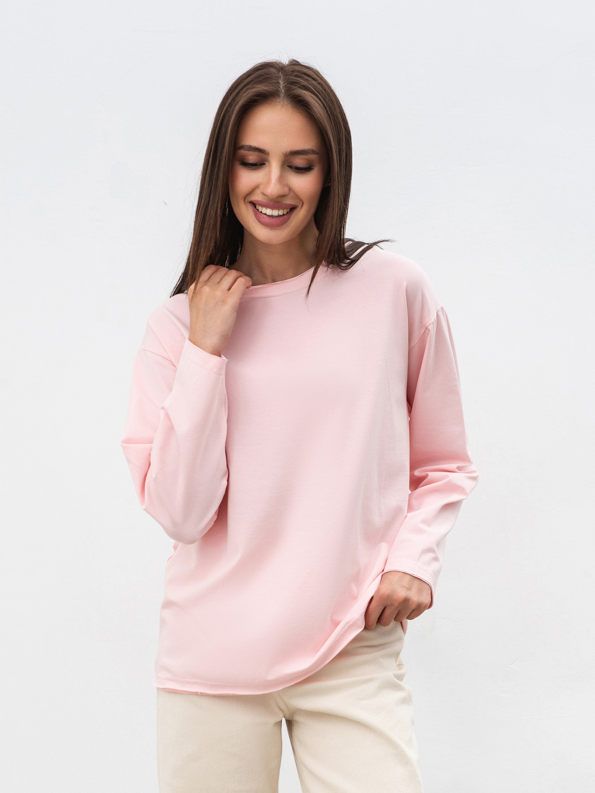 Базовий лонг прямого силуету. Універсальна річ, яка має бути в гардеробі у кожної. Лонг має акцентні низ, рукава та горловину завдяки ефекту необробленого краю. Модель виготовлена з м ;якого трикотажу. Базовий одяг поєднується з будь-чим, тому цей лонг підійде різному гардеробу. Особливо стильні поєднання будуть з джинсами оверсайз, спідницями міді чи бермудами. XS-S Довжина по спині : 64 см Довжина рукава : 54 см Напівобхват грудей : 54 см Плечі : 47 см Напівобхват талії : 53 см S-M Довжина по спині : 68 см Довжина рукава : 56 см Напівобхват грудей : 57 см Плечі : 49 см Напівобхват талії : 56 см M-L Довжина по спині : 72 см Довжина рукава : 60 см Напівобхват грудей : 63 см Плечі : 52 см Напівобхват талії : 62 см