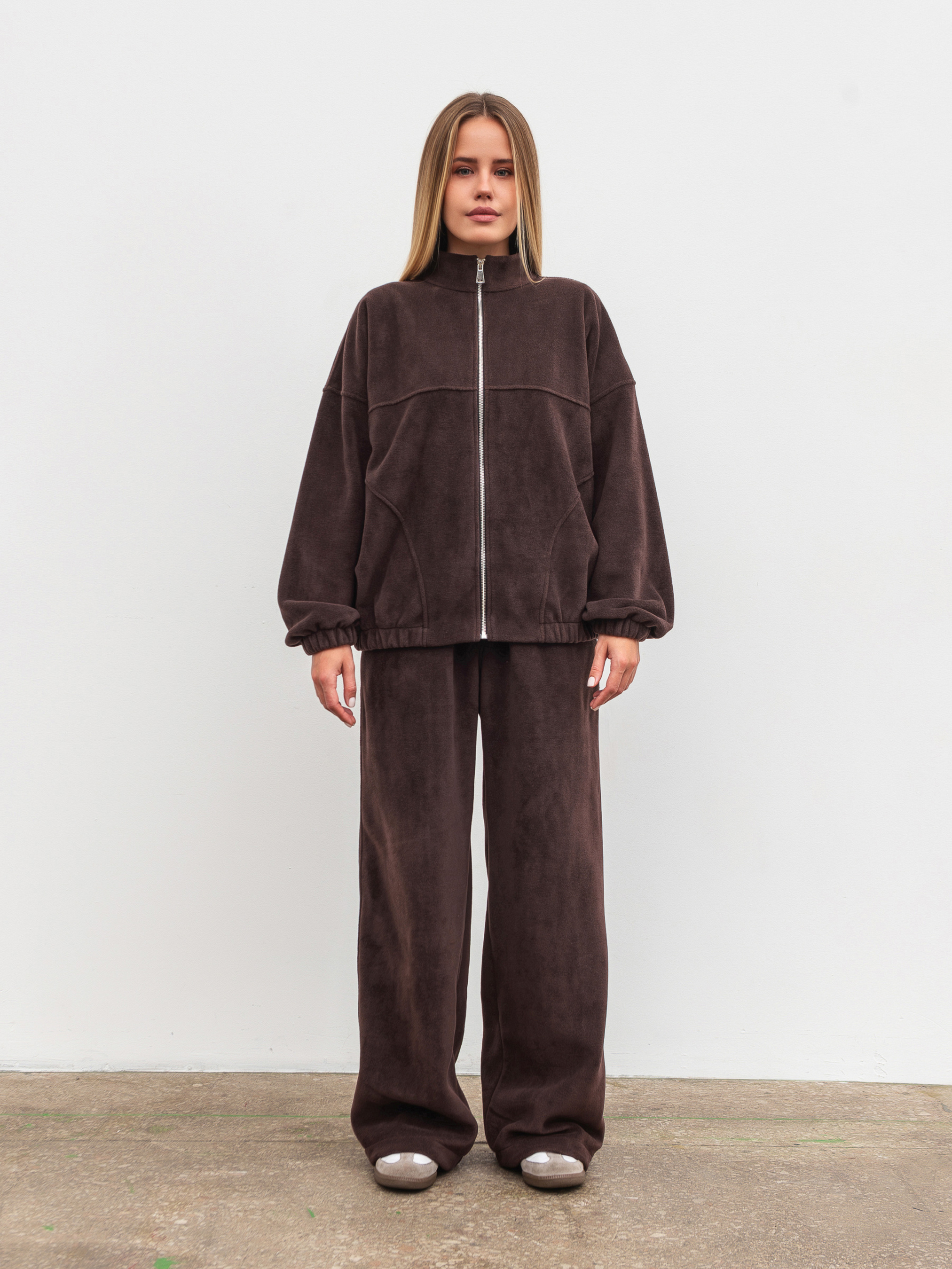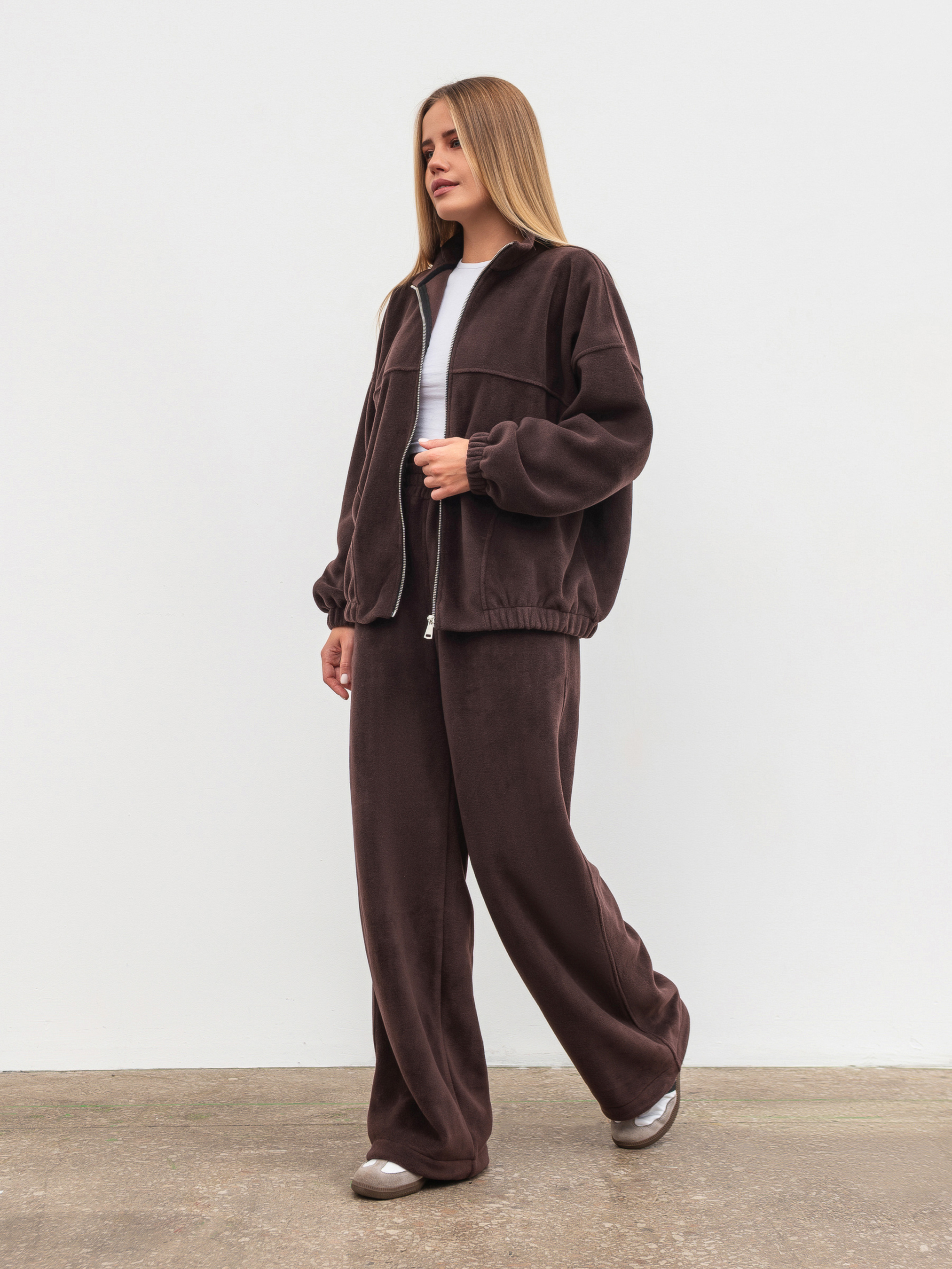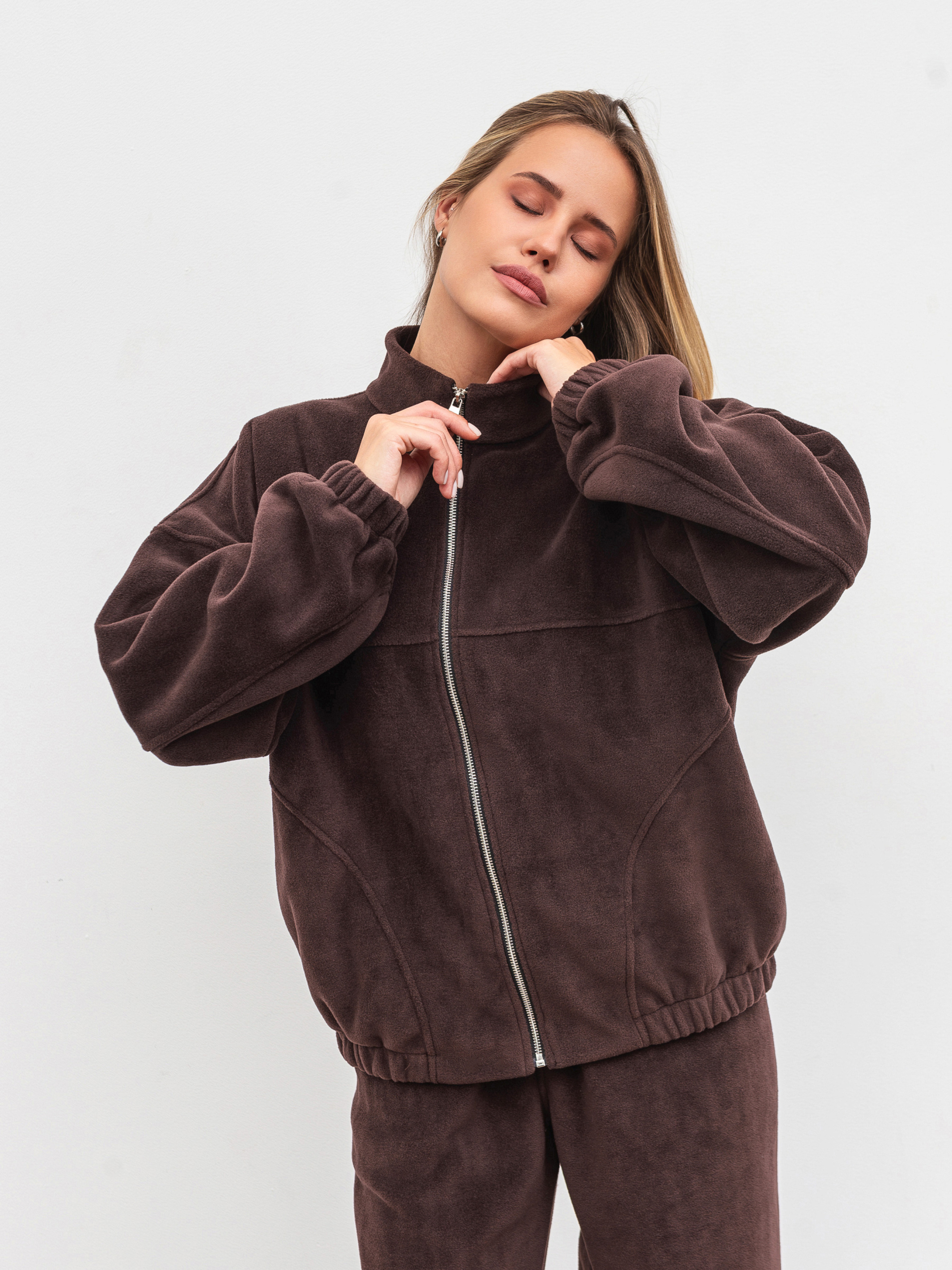 Теплий і стильний бомбер з м якого флісу must-have для холодного сезону. Подовжений фасон у форматі oversize зі спущеним плечем забезпечує комфорт і додає сучасного силуету. Модель має деталізований дизайн і легко комбінується як із повсякденними, так і зі спортивними образами. Для повного total-look можна доповнити комплект джогерами. Доступні кольори: коричневий, сірий, беж. Особливість: розмір L/XL доступний лише у коричневому та сірому кольорах. ХС-С Довжина по спині : 60 см Довжина рукава : 46 см Напівобхват грудей : 62 см Плечі : 63 см Напівобхват талії : 60 см С-М Довжина по спині : 61 см Довжина рукава : 46 см Напівобхват грудей : 64 см Плечі : 69 см Напівобхват талії : 62 см М-Л Довжина по спині : 61 см Довжина рукава : 46 см Напівобхват грудей : 66 см Плечі : 70 см Напівобхват талії : 63 см