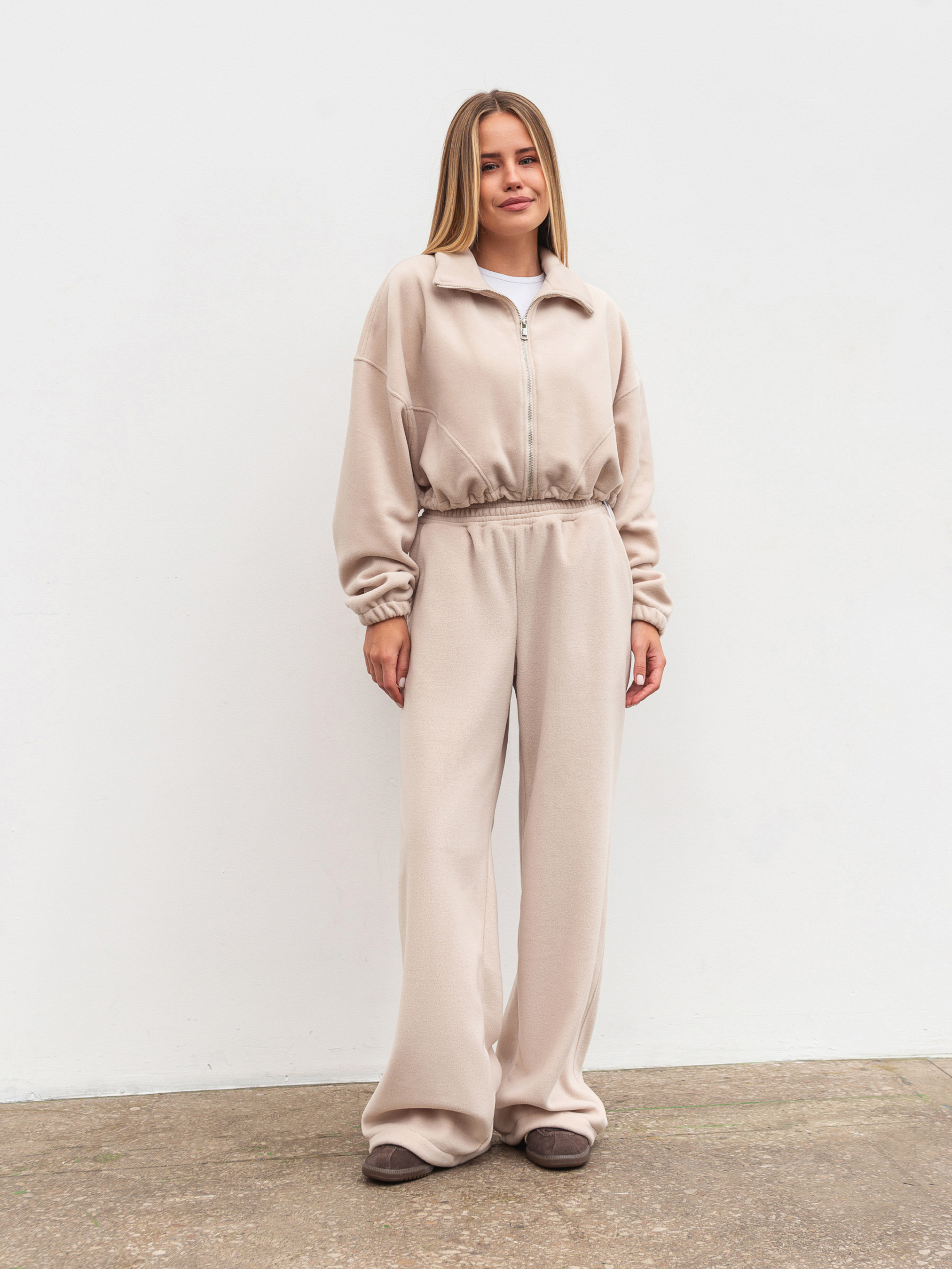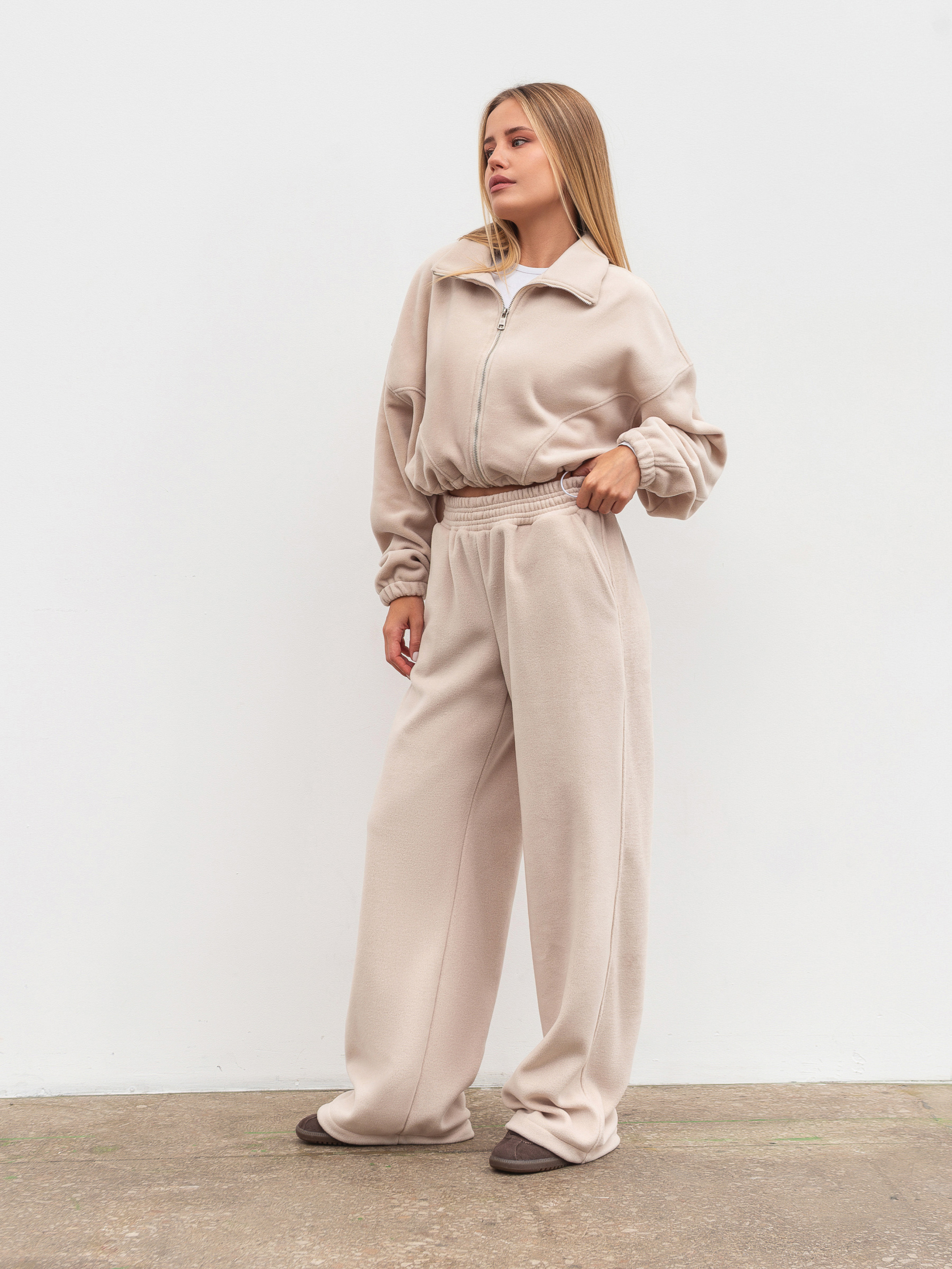 Затишний бомбер із м якого флісу тепла й стильна база для холодного сезону. Модель у вільному oversize-фасоні має спущене плече та регулюється кулісками знизу з обох боків, що дозволяє змінювати силует. Вкорочений крій робить бомбер універсальним у поєднанні з джинсами, легінсами чи спортивними штанами. Ідеально комбінується з джогерами з комплекту. Доступні кольори: коричневий, сірий, беж. XS-S Довжина по спині : 40 см Довжина рукава : 50 см Напівобхват грудей : 58 см Плечі : 62 см Напівобхват талії : 56 см S-M Довжина по спині : 40 см Довжина рукава : 50 см Напівобхват грудей : 60 см Плечі : 63 см Напівобхват талії : 57 см M-L Довжина по спині : 40 см Довжина рукава : 50 см Напівобхват грудей : 60 см Плечі : 65 см Напівобхват талії : 58 см