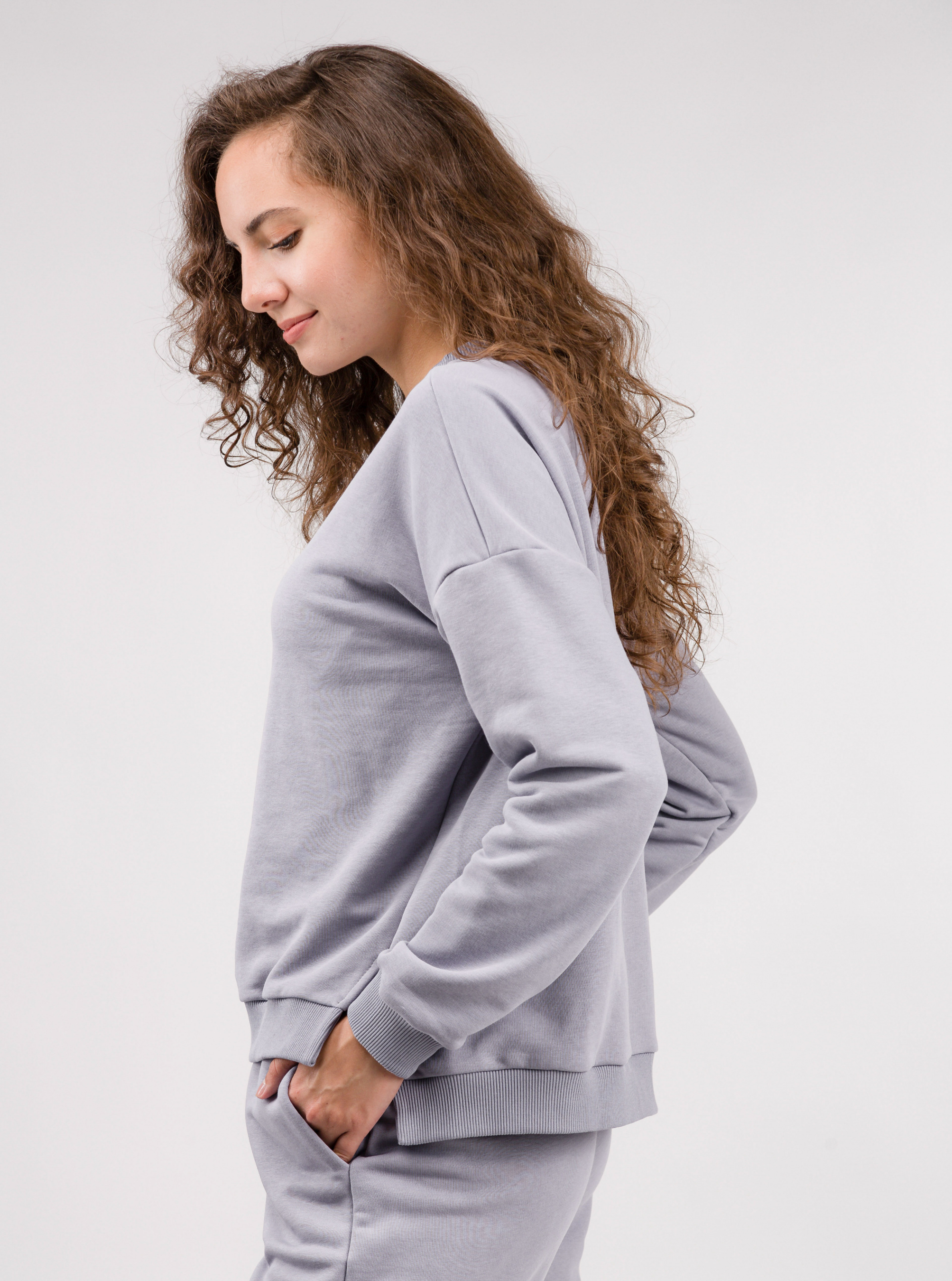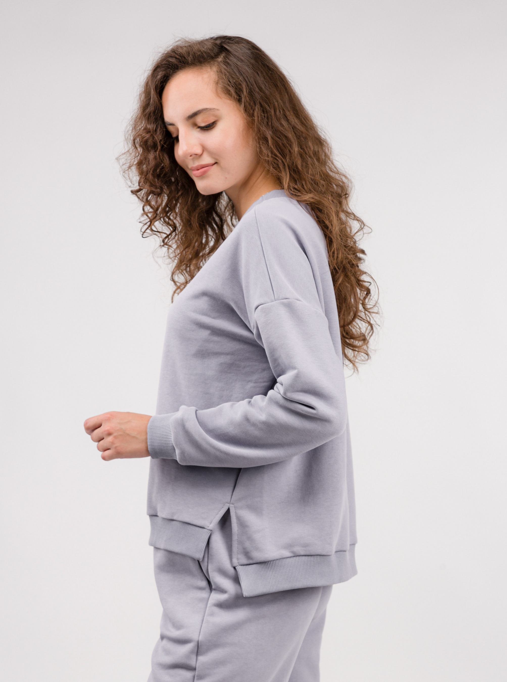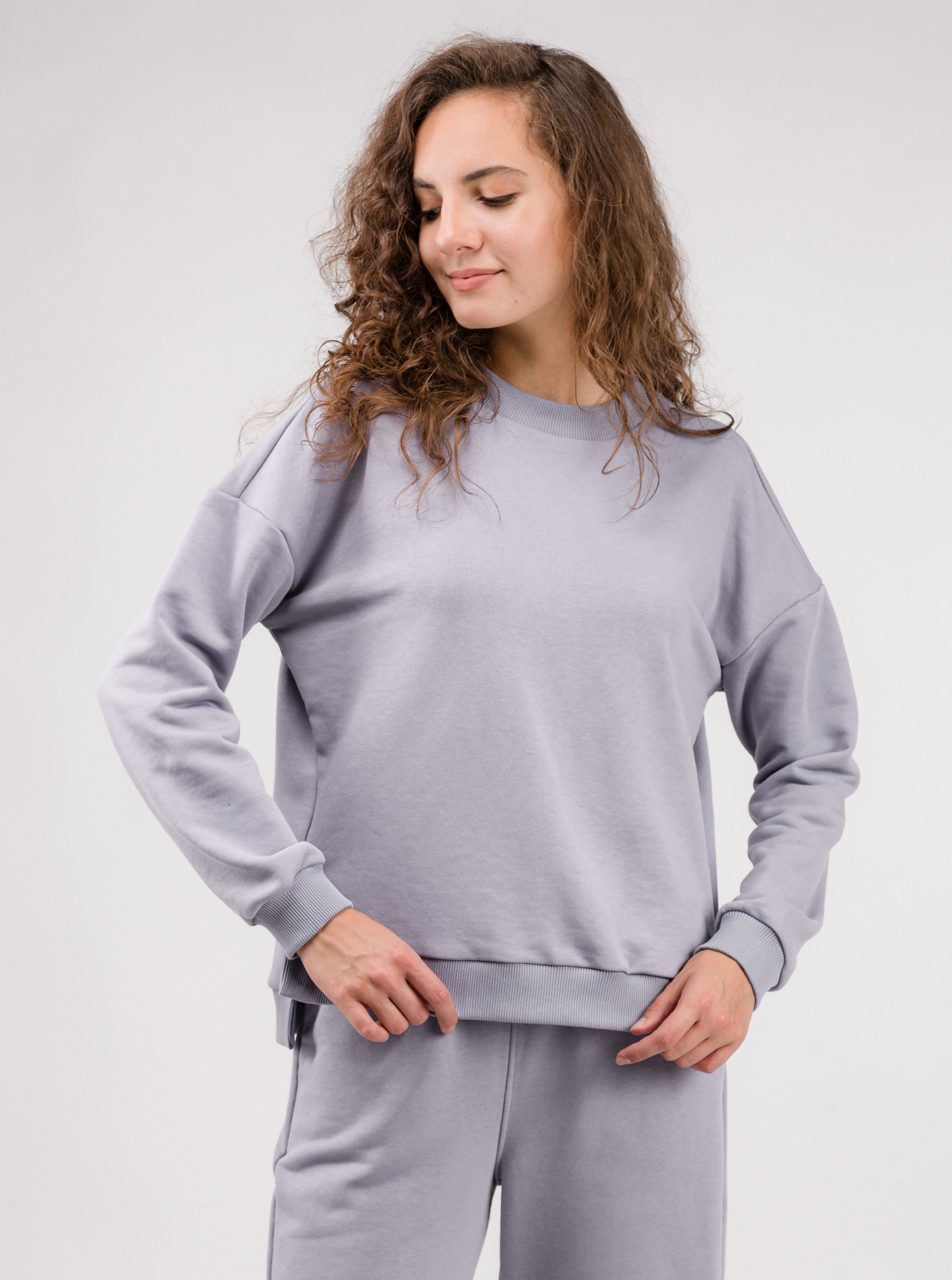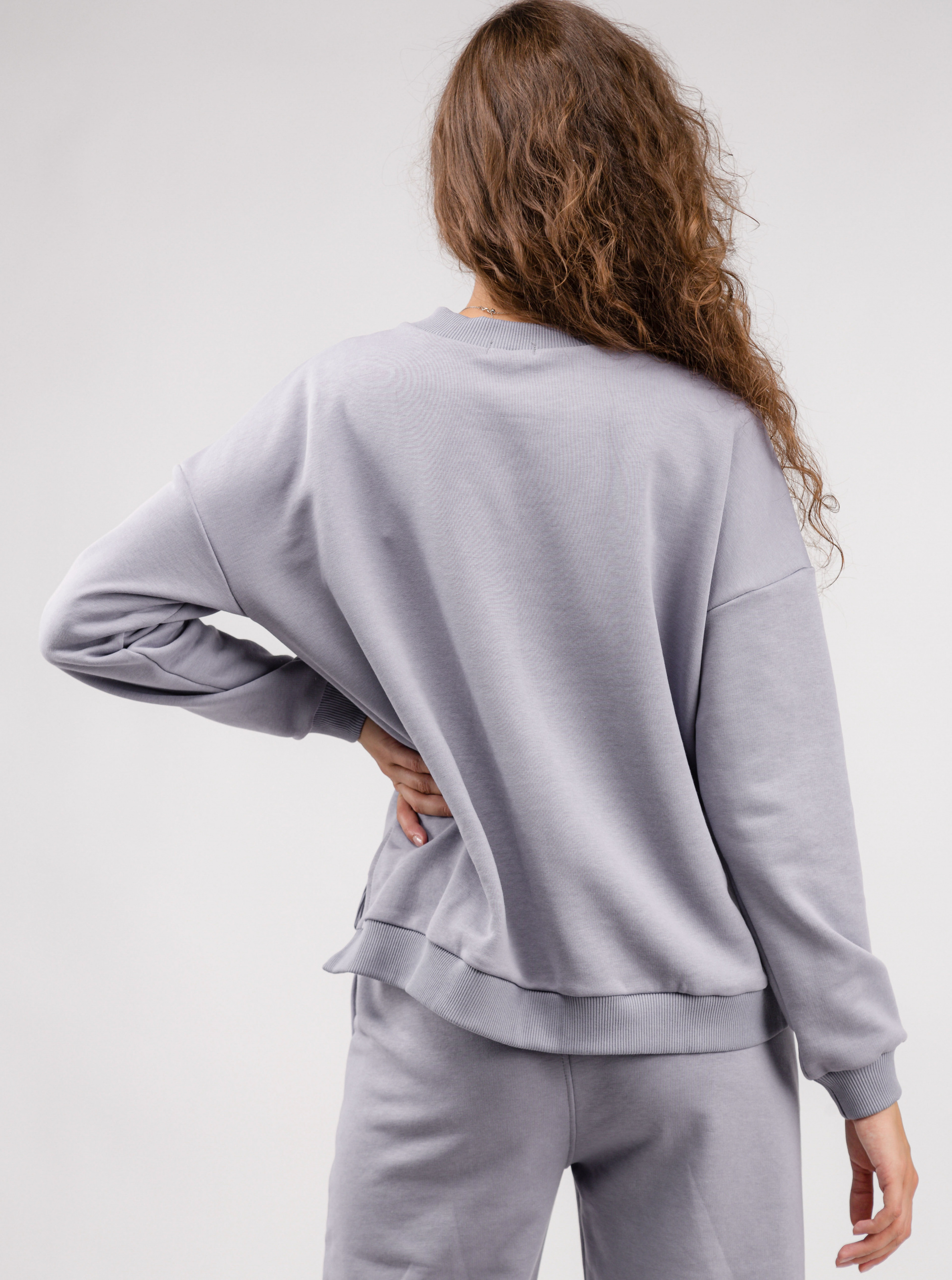 Вільний світшот зі спущеною лінією плеча. Спинка трохи довша ніж перед, по бокам розрізи. Можна комбінувати з джогерами в колір чи з будь-яким базовим низом XS|S: довжина по спинці 58 см, довжина рукава 47 см, ширина плечей 62 см, напівобхват грудей 58 см S|M: довжина по спинці 58,5 см, довжина рукава 48 см, ширина плечей 63 см, напівобхват грудей 59 см M|L: довжина по спинці 59 см, довжина рукава 49 см, ширина плечей 64,5 см, напівобхват грудей 60 см