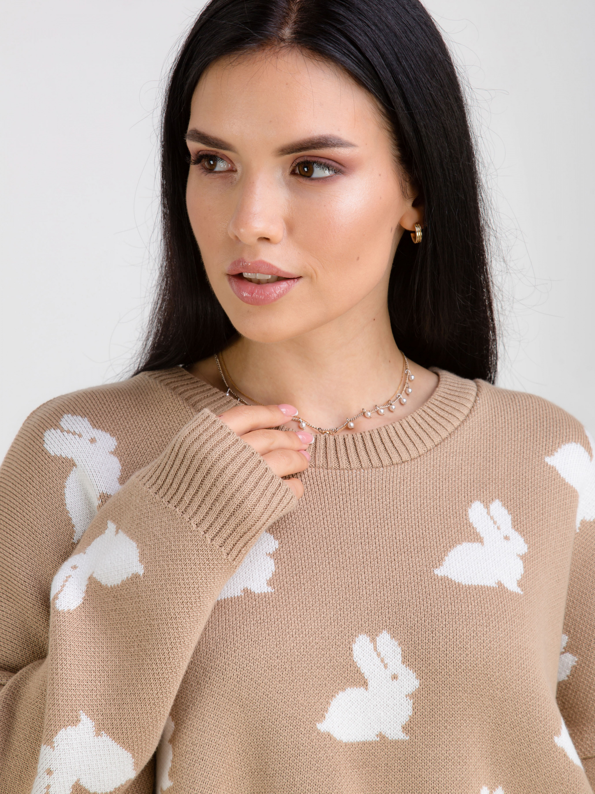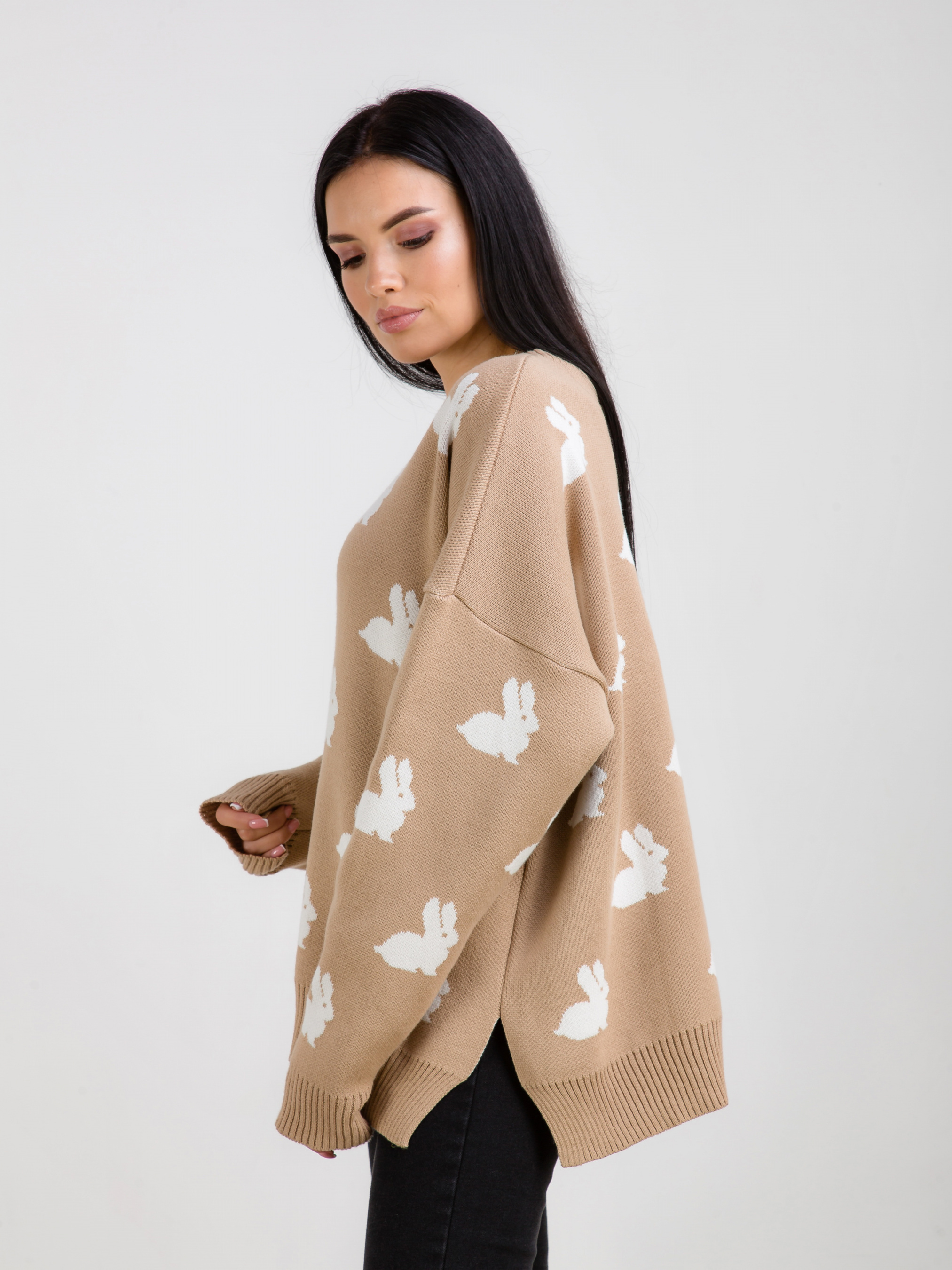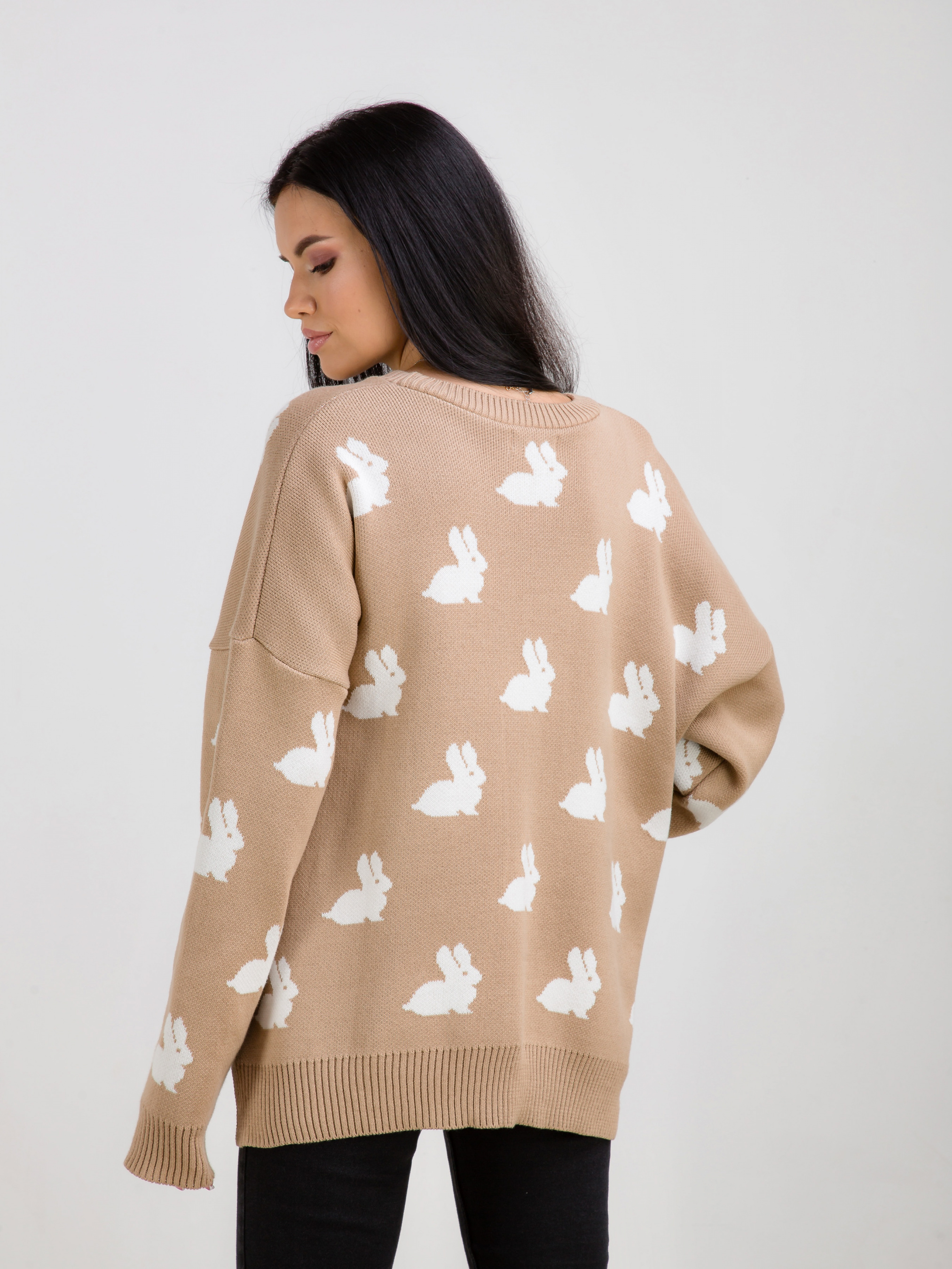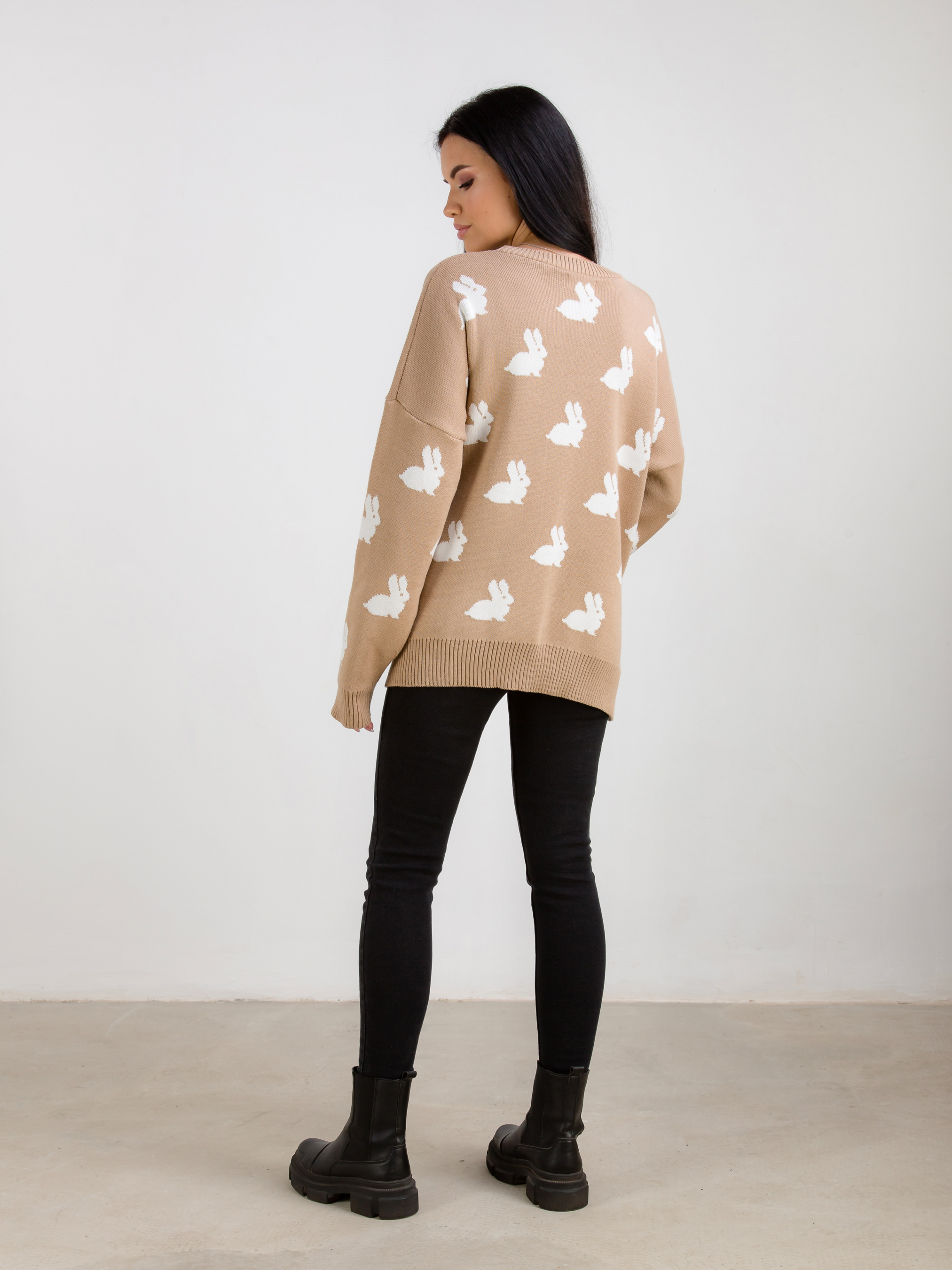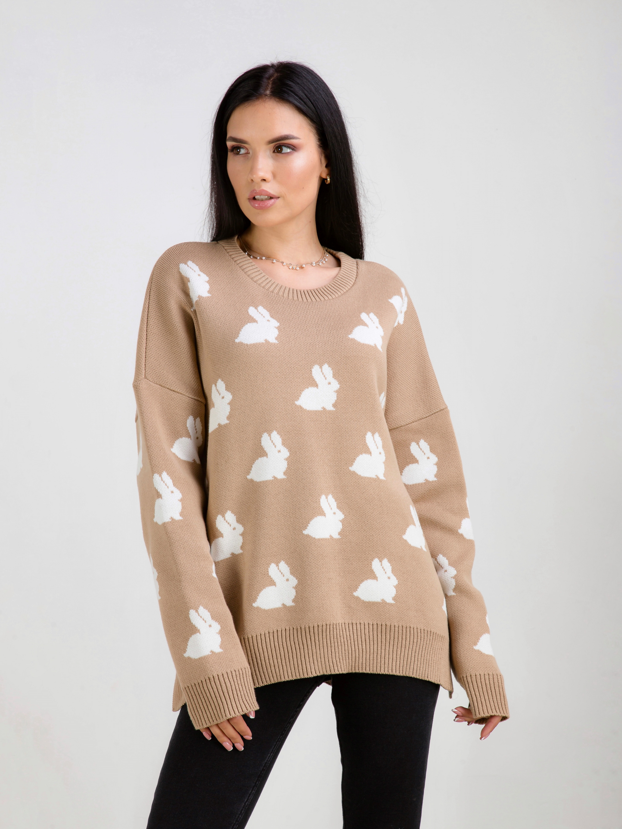Светр "Асканія" в принт. Модель вільного фасону в милий принт "Кролики". Приємний до тіла матеріал щільна бавовняна нитка. Легко поєднується з базовим низом. Виробник: Україна. Доповнити лук можна аксесуарами на шию, окулярами і лаконічною сумкою крос-боді.