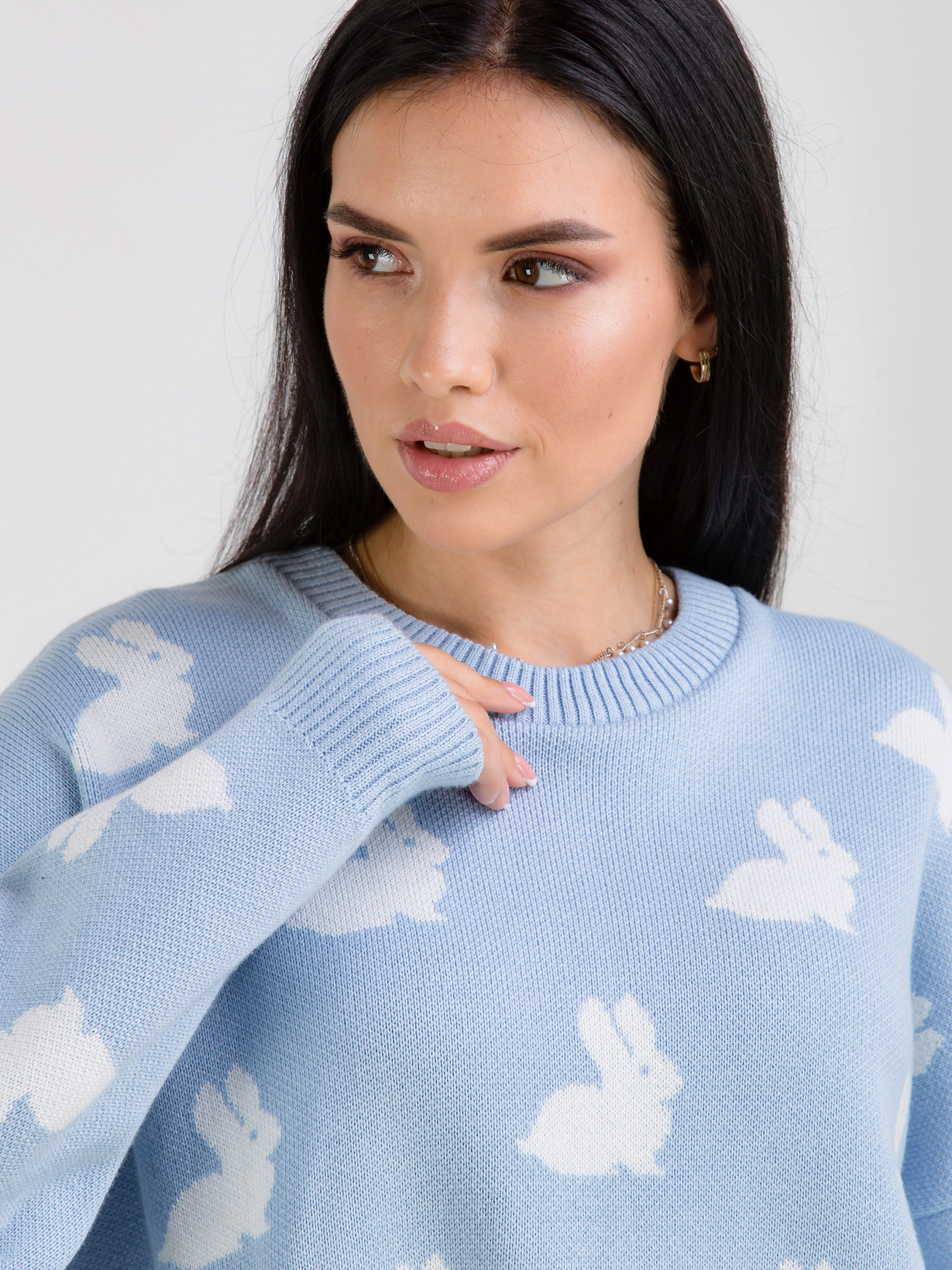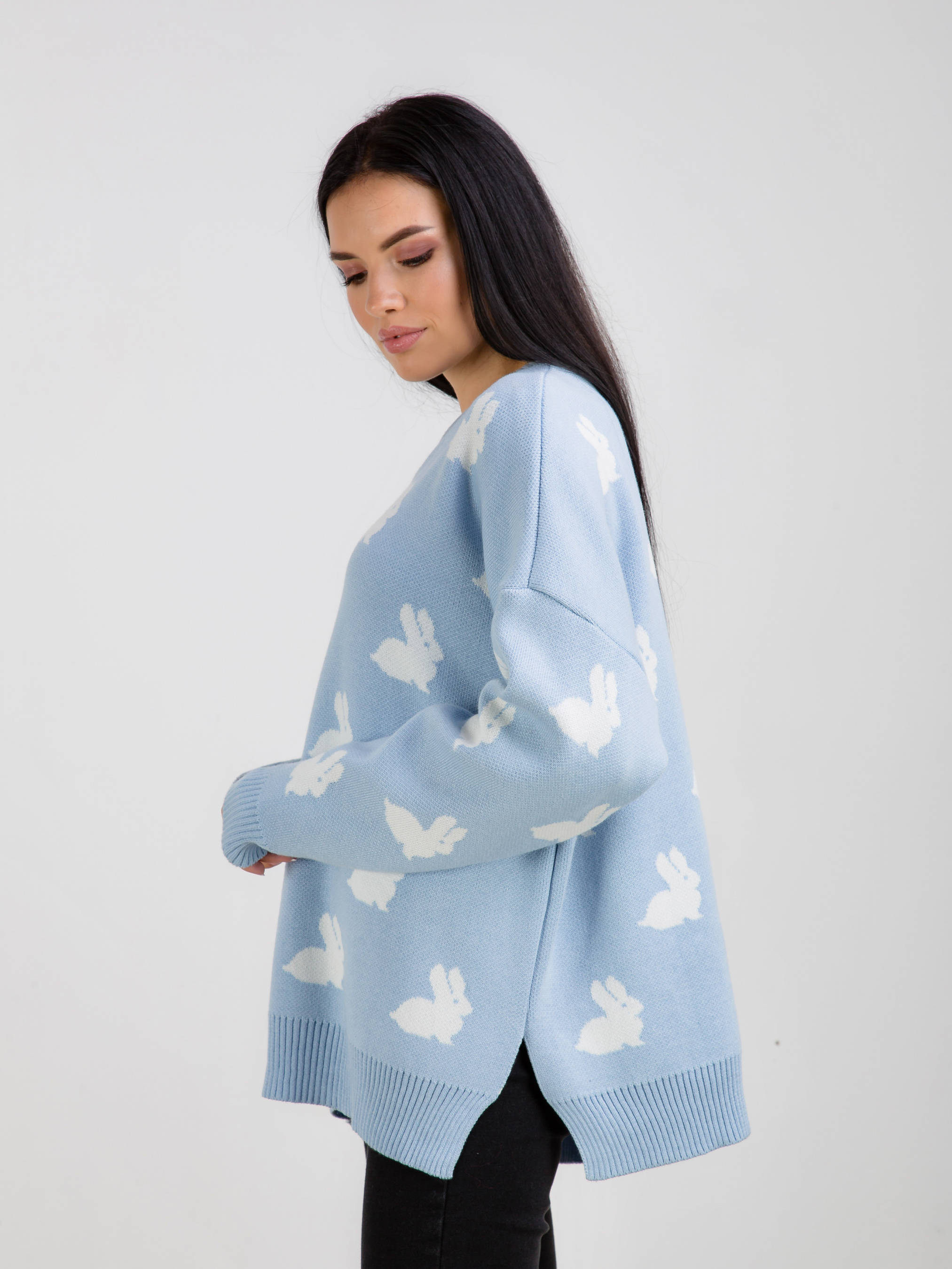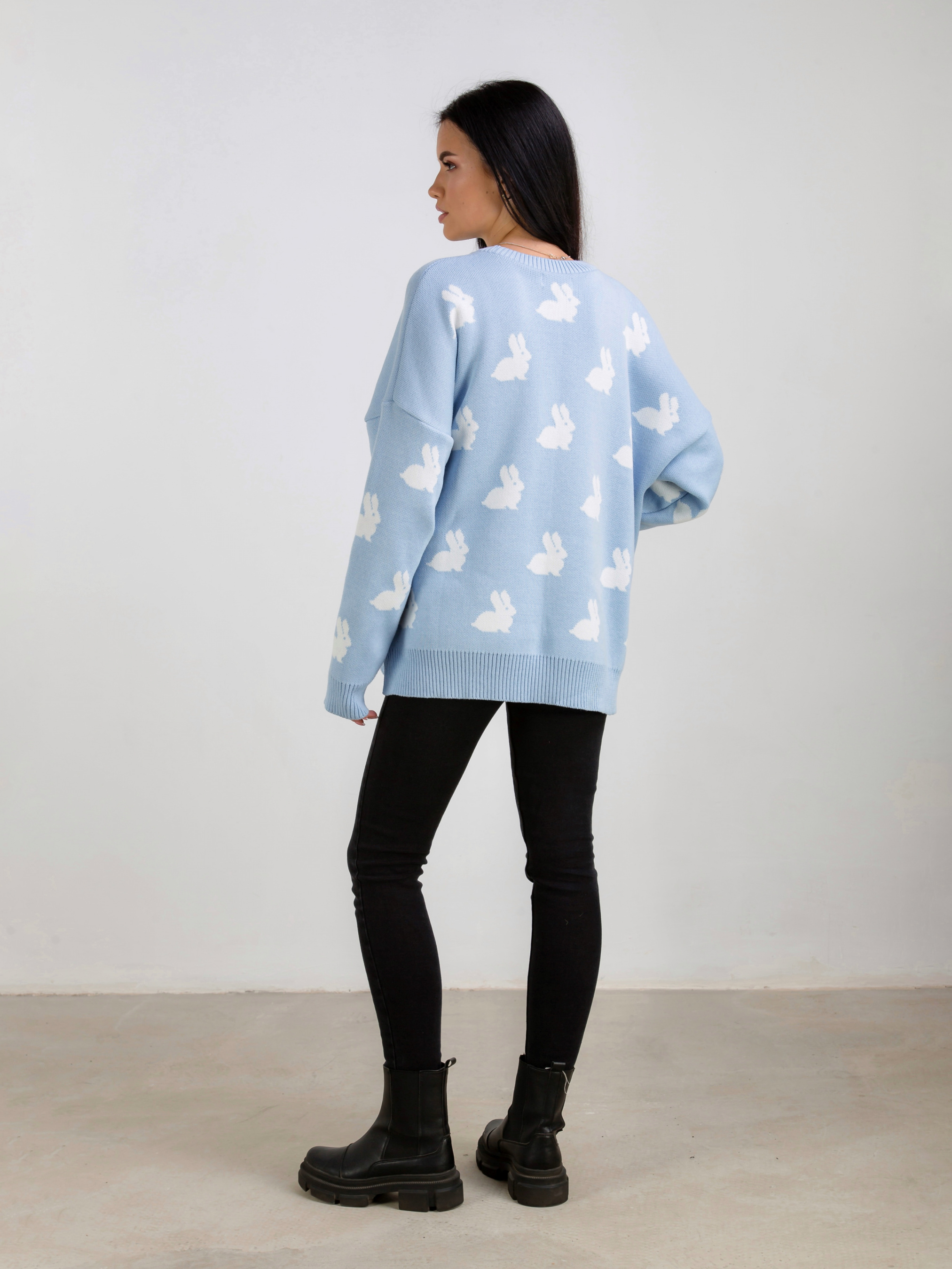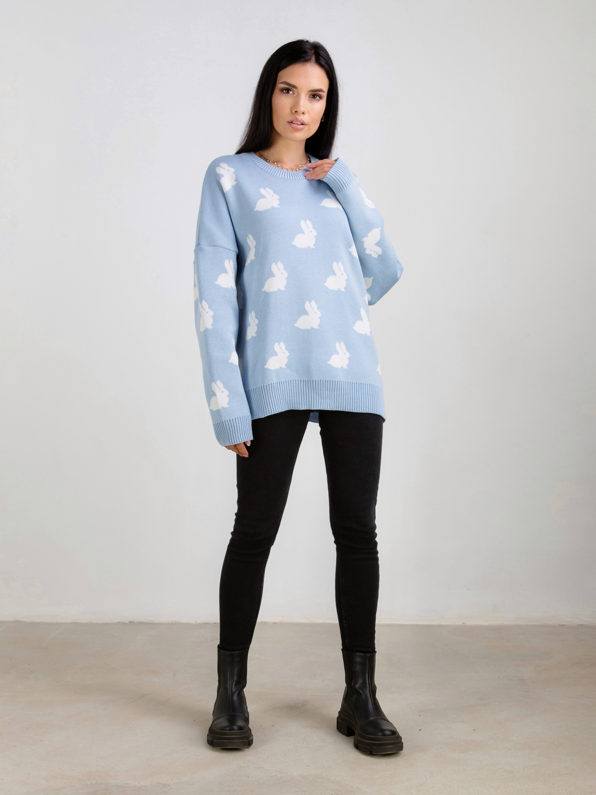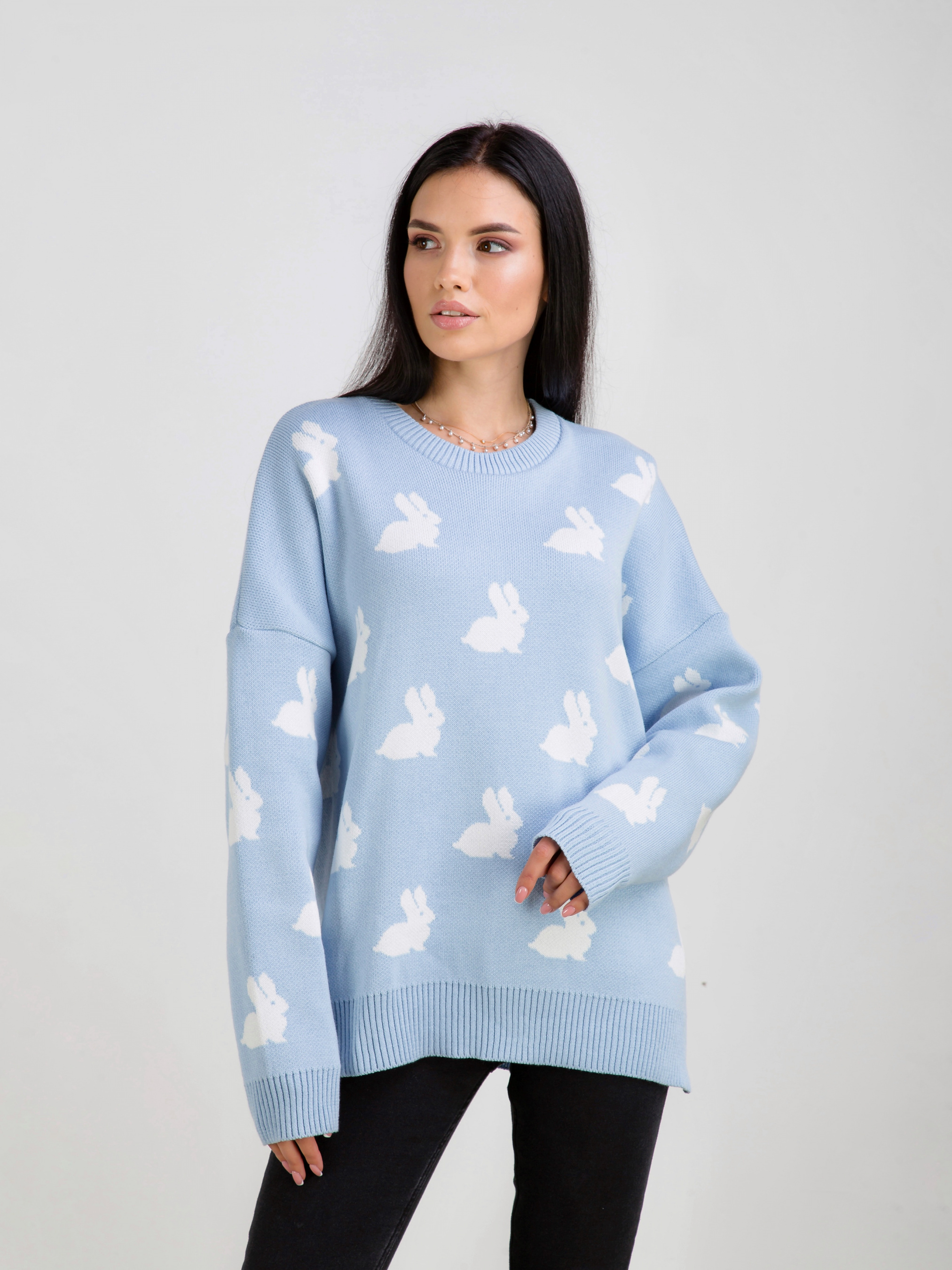 Светр "Асканія" в принт. Модель вільного фасону в милий принт "Кролики". Приємний до тіла матеріал щільна бавовняна нитка. Легко поєднується з базовим низом. Виробник: Україна. Доповнити лук можна аксесуарами на шию, окулярами і лаконічною сумкою крос-боді.