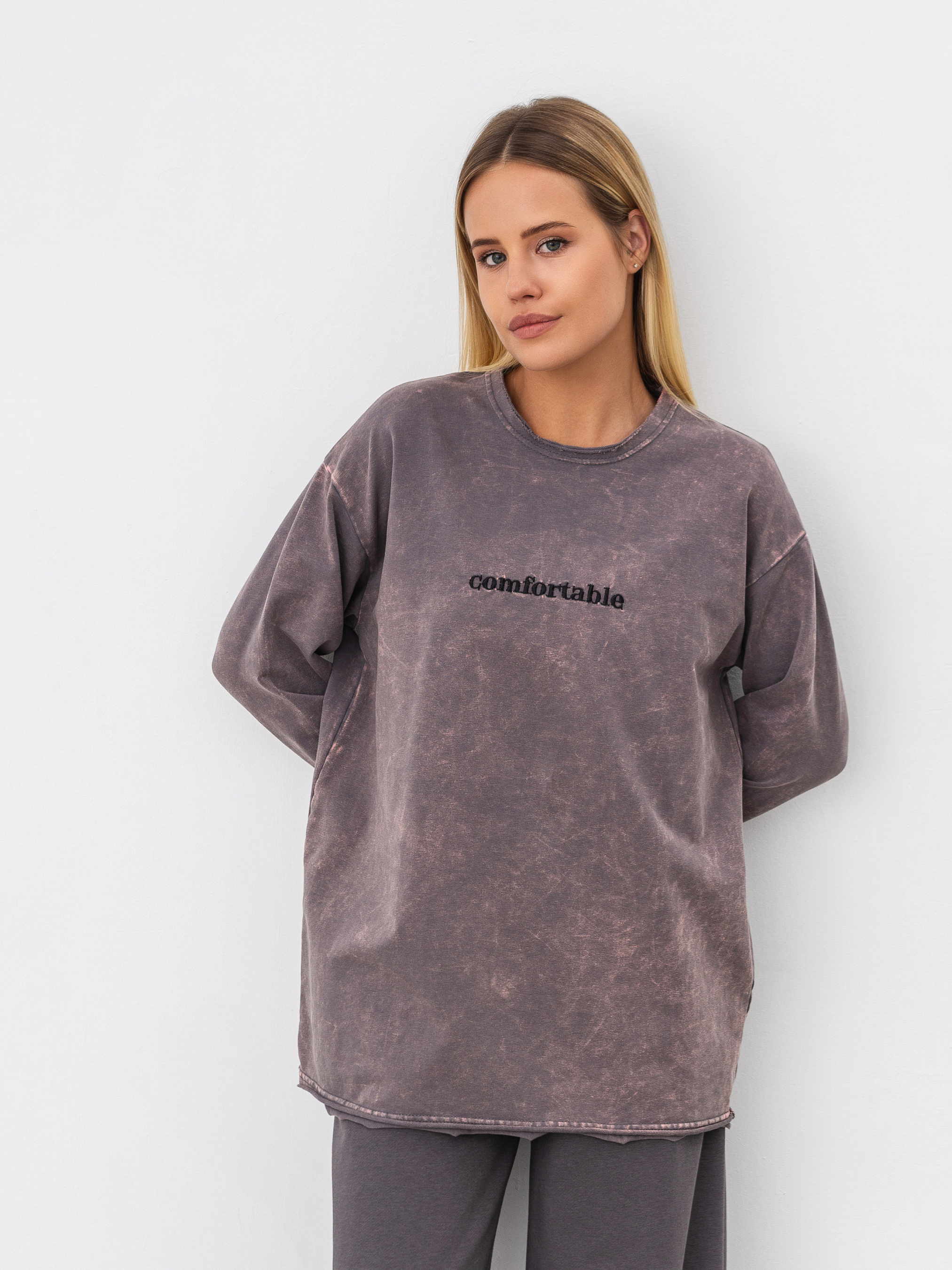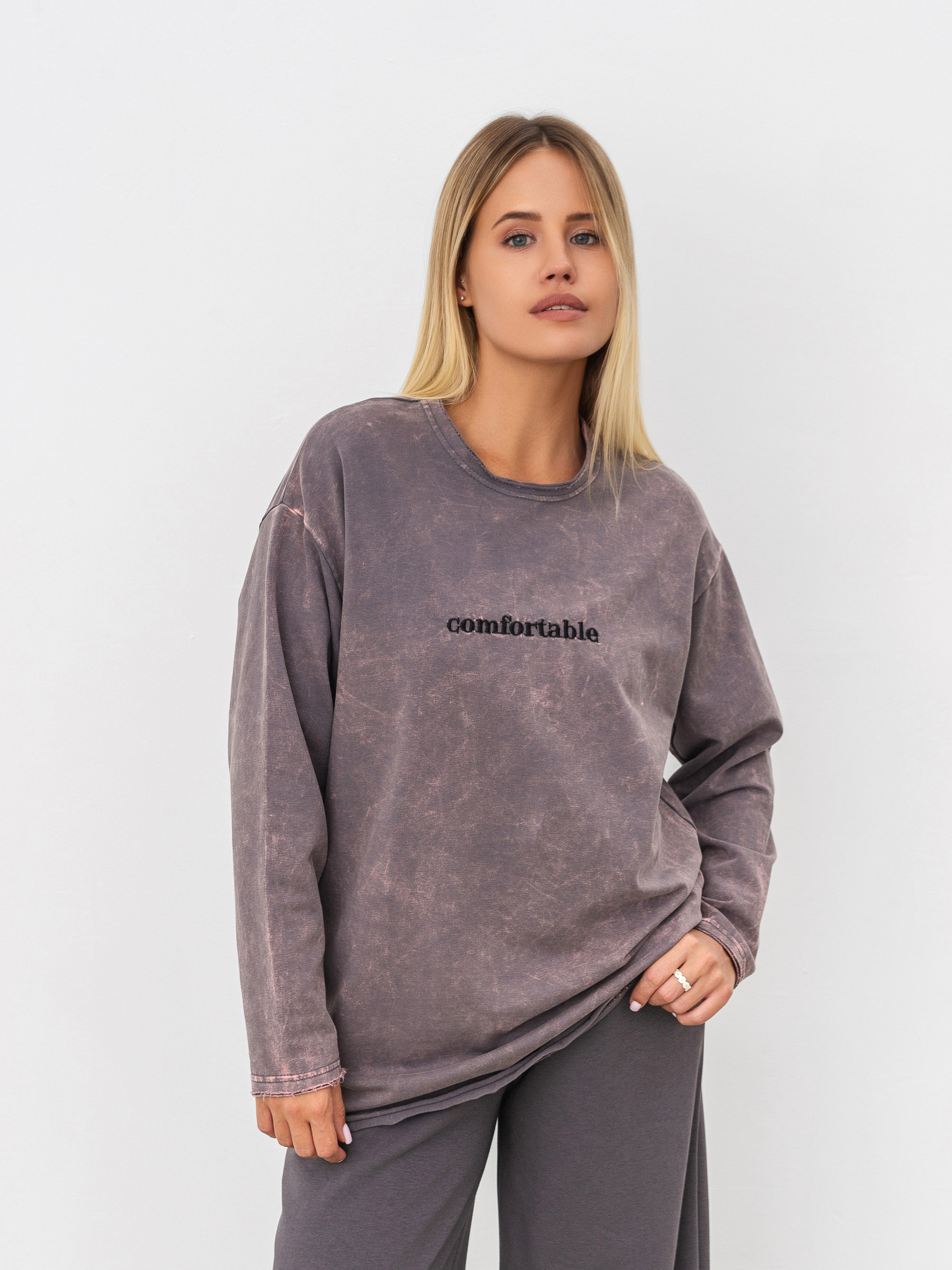 Лонг вільного силуету. Край горловини, низу рукавів та виробу не оброблений. Дизайн лонгу доповнює вишиванка з написом та ефект варки. Стане чудовою акцентною річчю в повсякденному та спортивному гардеробі. XS-S Довжина по спині : 70 см Довжина рукава : 52 см Напівобхват грудей : 55 см Плечі : 50 см Напівобхват талії : 56 см M-L Довжина по спині : 72 см Довжина рукава : 55 см Напівобхват грудей : 63 см Плечі : 53 см Напівобхват талії : 64 см XL-XXL Довжина по спині : 78 см Довжина рукава : 60 см Напівобхват грудей : 68 см Плечі : 22 см Напівобхват талії : 68 см