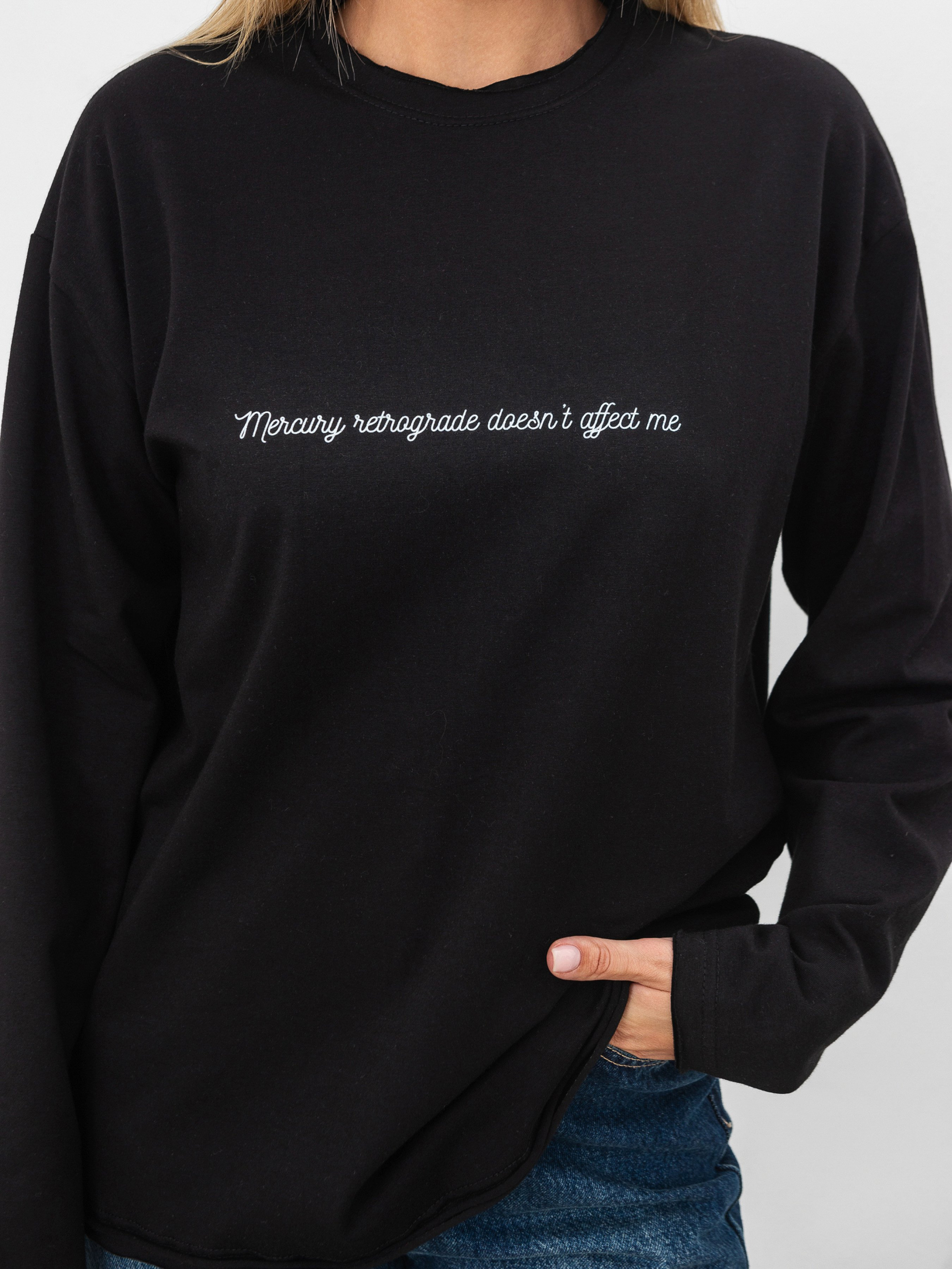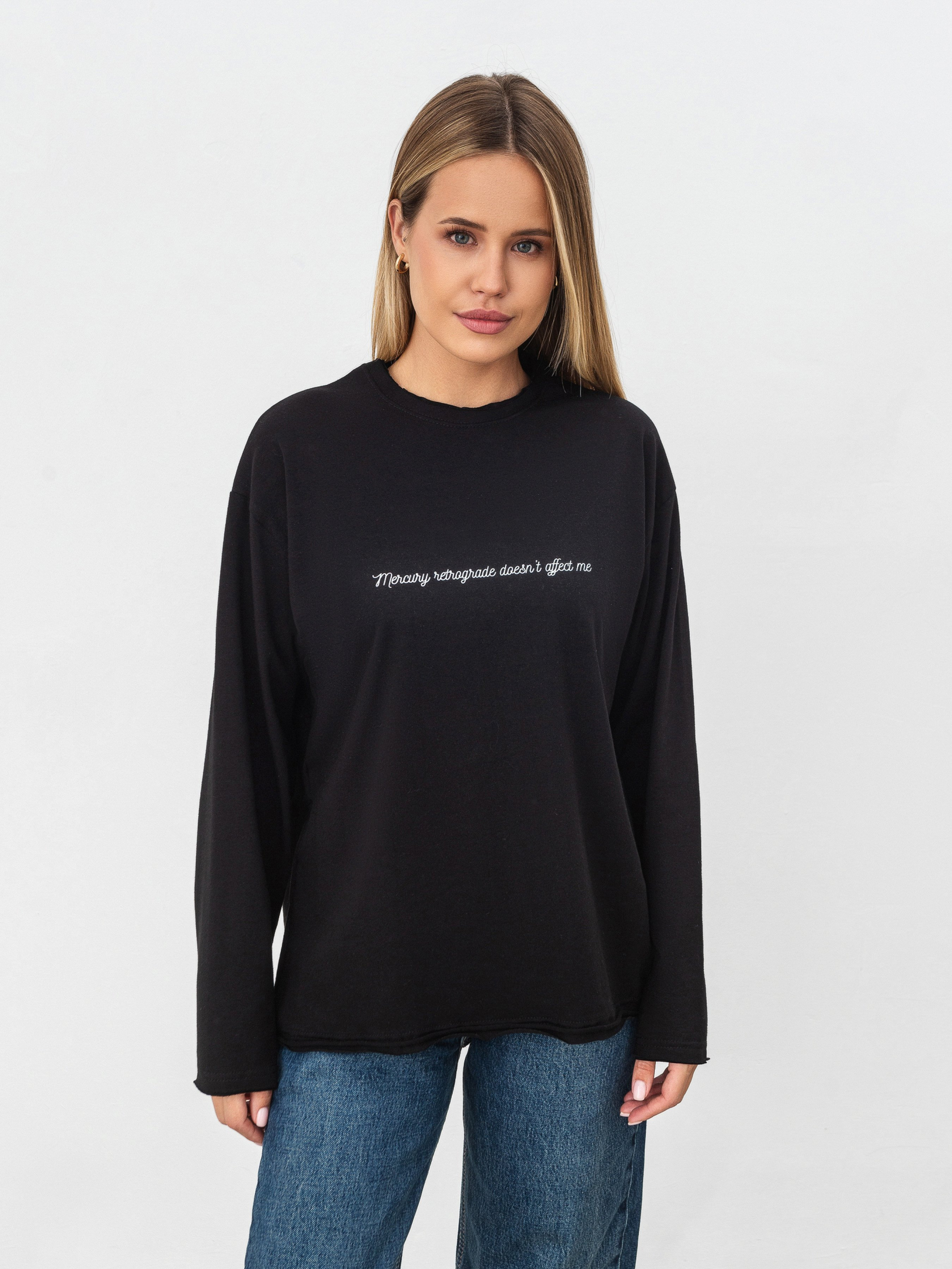 Виготовлений з м якого, приємного на дотик трикотажу. Низ виробу, горловина та рукавчики мають акцентний, трендовий необроблений край. Спереду є авторський принт розміром 20х20 см.