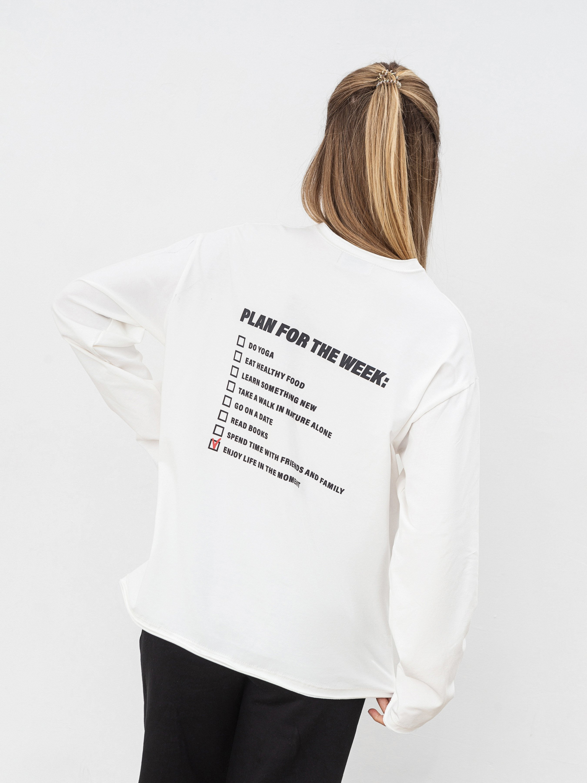 Базовий лонгслів з авторським принтом. Лонг має прямий силует, тому комфортно відчувається на тілі в будь-якому образі. Виготовлений з приємного на дотик трикотажу. Спереду та ззаду є авторський принт. Низ виробу, рукавів і горловина має необроблений край. Базову модель можна легко комбінувати з різним низом, доповнюючи образ аксесурами. XS-S Довжина по спині : 64 см Довжина рукава : 53 см Напівобхват грудей : 54 см Плечі : 49 см Напівобхват талії : 53 см M-L Довжина по спині : 73 см Довжина рукава : 58 см Напівобхват грудей : 63 см Плечі : 54 см Напівобхват талії : 62 см