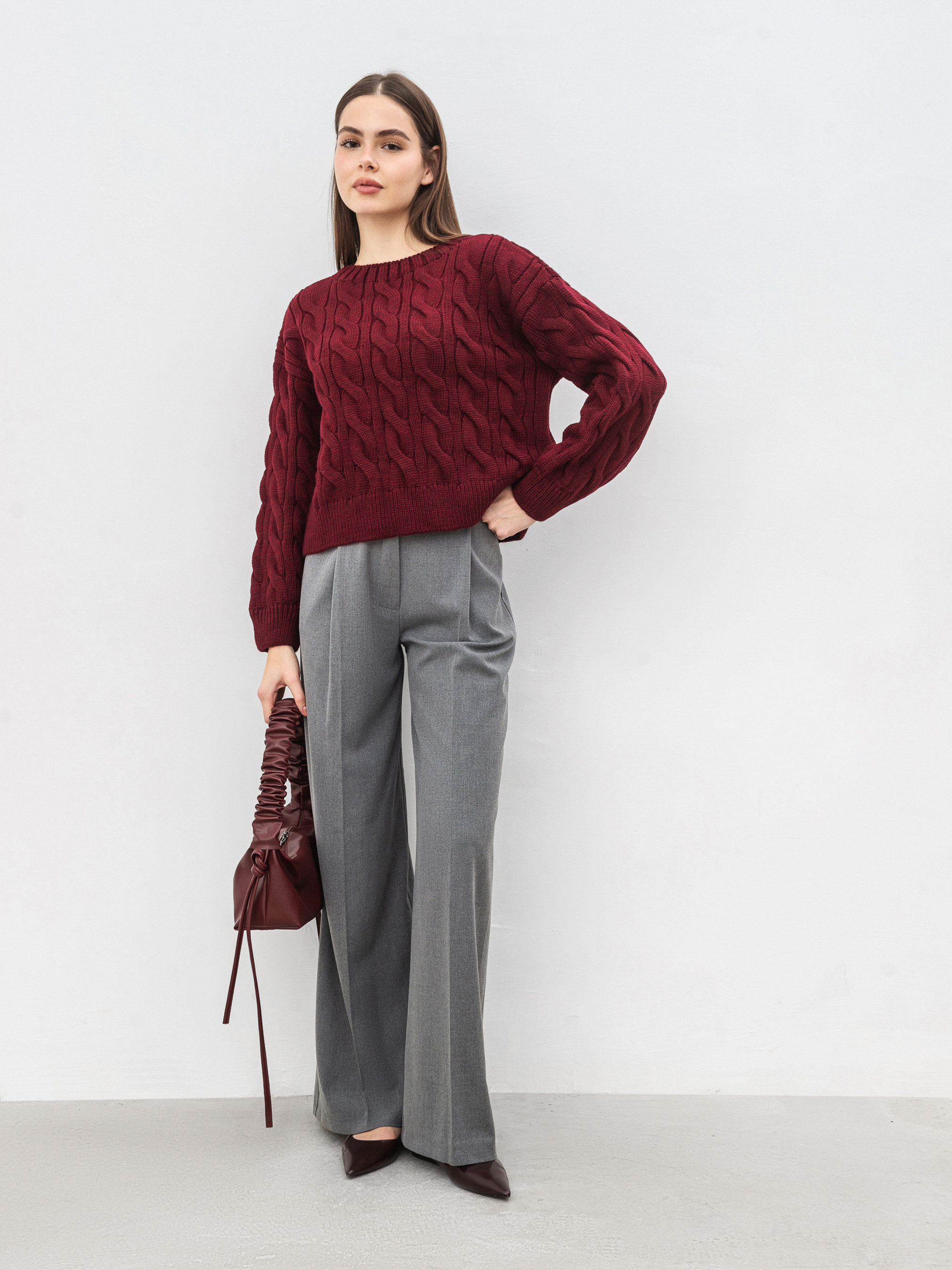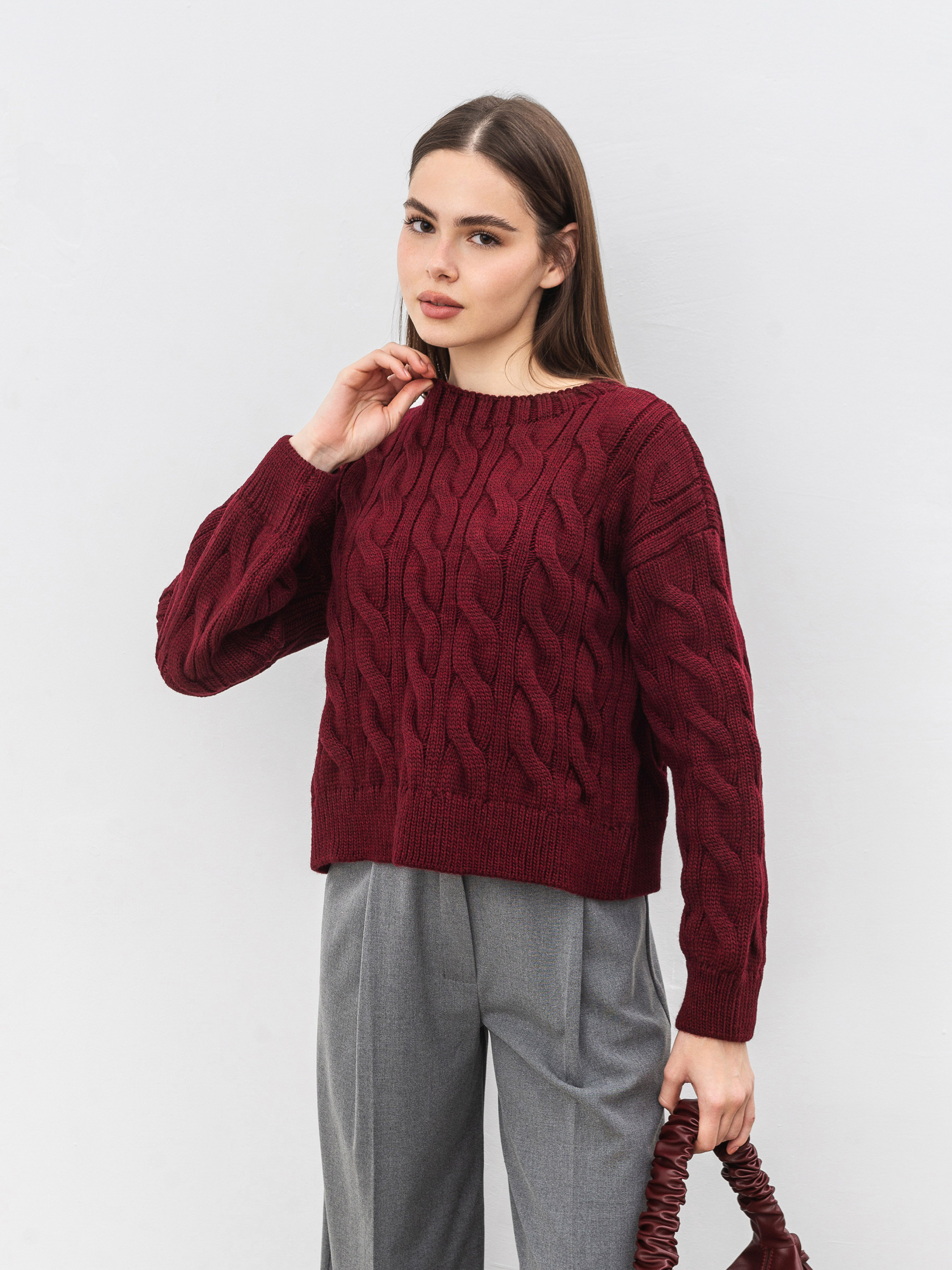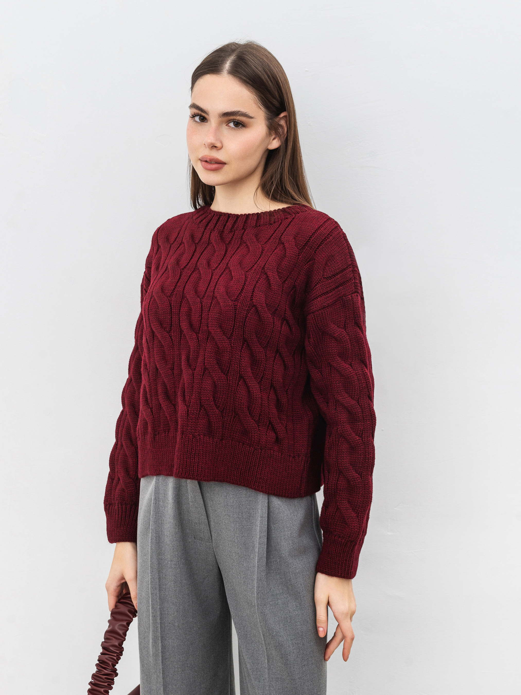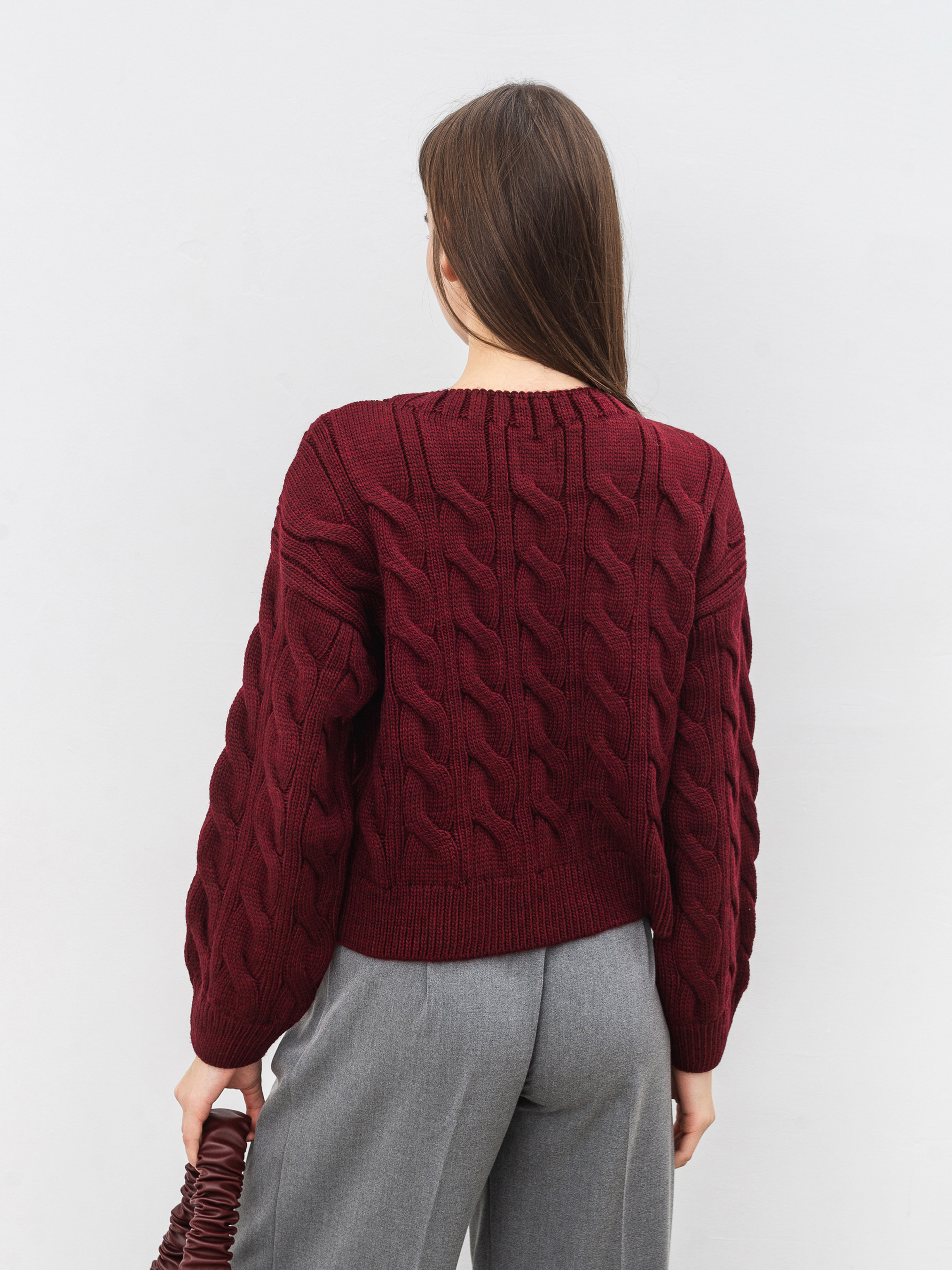 Затишний, вкорочений светрик вільного фасону. Модель має ефект потертості. Виготовлена зі щільної в язки. Светр вільно сидить на тілі. Ідеальний варіант для осені, який можна легко комбінувати з джинсами чи класичними брюками. Довжина по спині: 42 см Довжина рукава: 51 см Напівобхват грудей: 55 см Плечі: 56 см Напівобхват талії : 53 см
