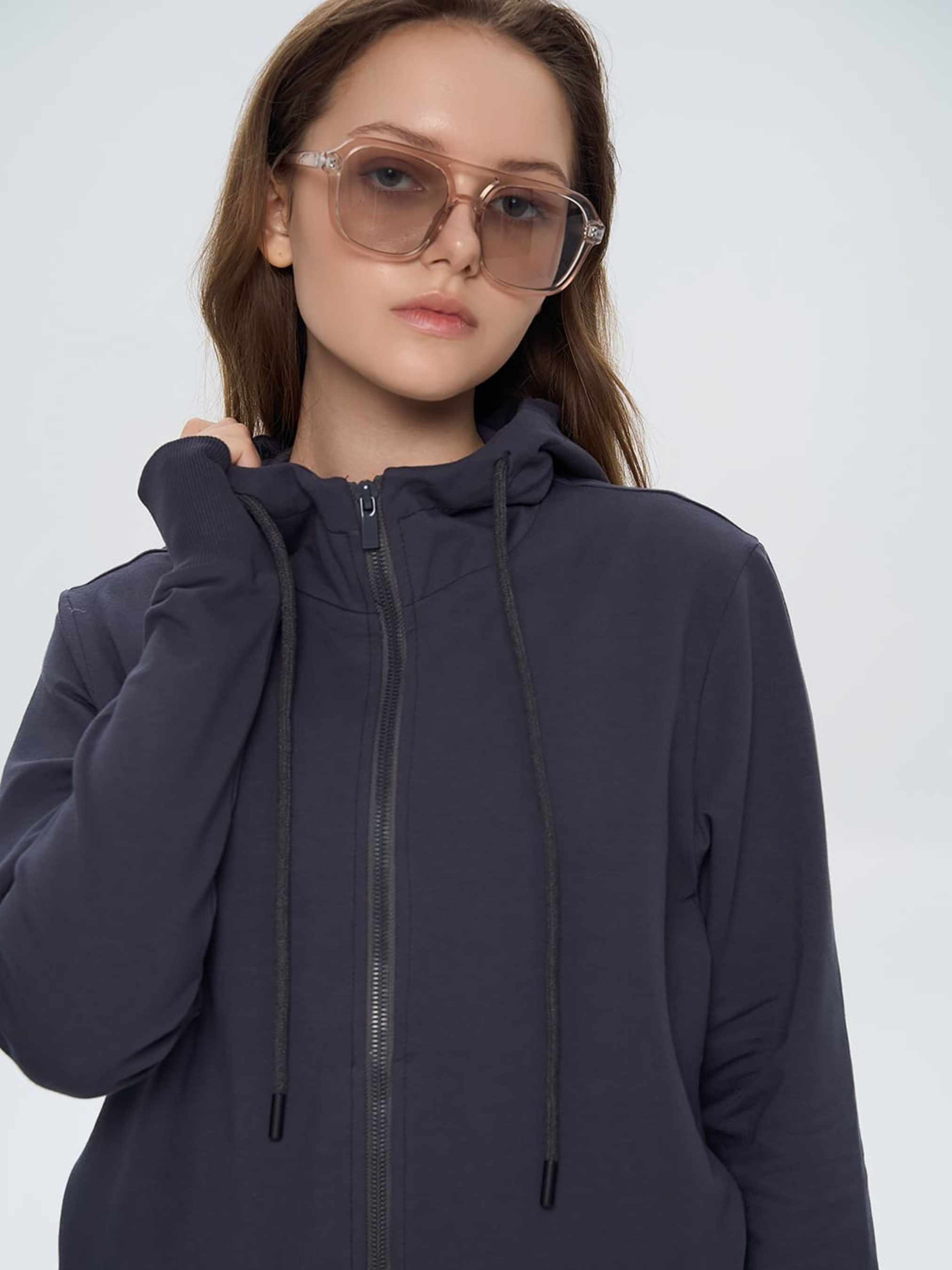 Жіноче зіп-худі класичного прямого крою - практичний і стильний вибір для повсякденного гардеробу. Модель застібається на блискавку, має зручні прорізні кишені та капюшон зі шнурком, що додає функціональності. Манжети з прорізами для великого пальця забезпечують додатковий комфорт і створюють сучасний акцент у дизайні. Такий варіант легко поєднується як зі спортивними, так і з повсякденними образами. Матеріал Тканина виготовлена з двох ниток, що надає їй високу міцність та стійкість до зношення. М'яка та приємна до шкіри, не сковує рухи і не дає тілу перегріватись. Не втрачає колір при пранні та носінні. Вироби з двунитки не мнуться, що додає їм універсальності у використанні. Рекомендації з догляду Рекомендовано прати при температурі не вище 40°C, використовуючи режим делікатного прання. При ручному пранні уникати тертя. Кольорові речі з бавовною у складі не рекомендовано сушити під прямими сонячними променями.