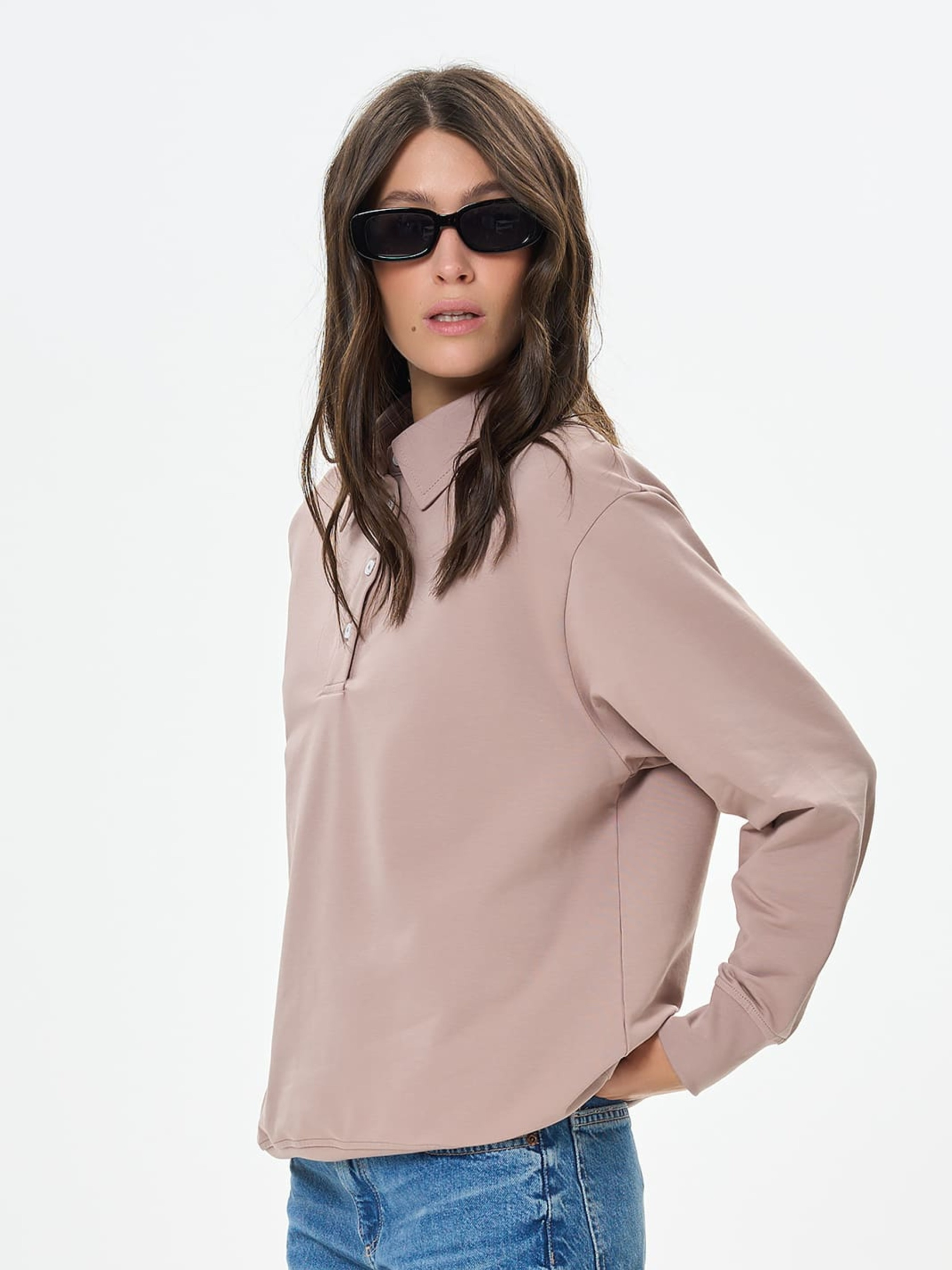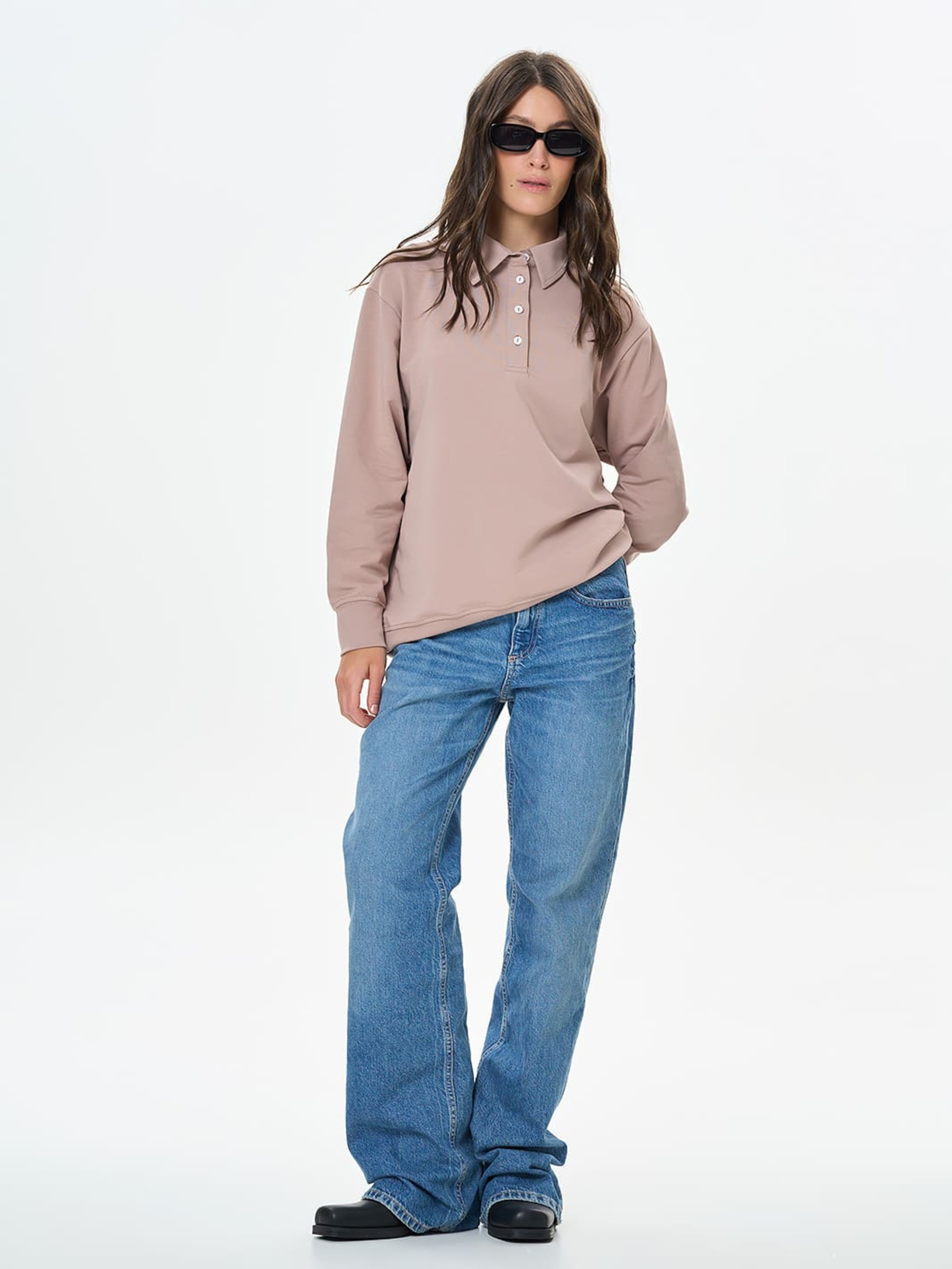 Жіночий світшот-поло вільного крою з приспущеним рукавом - стильне поєднання спортивного комфорту та елегантних деталей. Відкладний комір із планкою на чотири гудзики надає моделі стриманої класики, а манжети на рукавах і по низу виробу формують акуратний силует. Завдяки універсальному дизайну світшот легко поєднується як з джинсами та брюками, так і зі спідницями, створюючи образи для різних випадків. Матеріал Тканина виготовлена з двох ниток, що надає їй високу міцність та стійкість до зношення. М'яка та приємна до шкіри, не сковує рухи і не дає тілу перегріватись. Не втрачає колір при пранні та носінні. Вироби з двунитки не мнуться, що додає їм універсальності у використанні. Рекомендації з догляду Рекомендовано прати при температурі не вище 40°C, використовуючи режим делікатного прання. При ручному пранні уникати тертя. Кольорові речі з бавовною у складі не рекомендовано сушити під прямими сонячними променями.