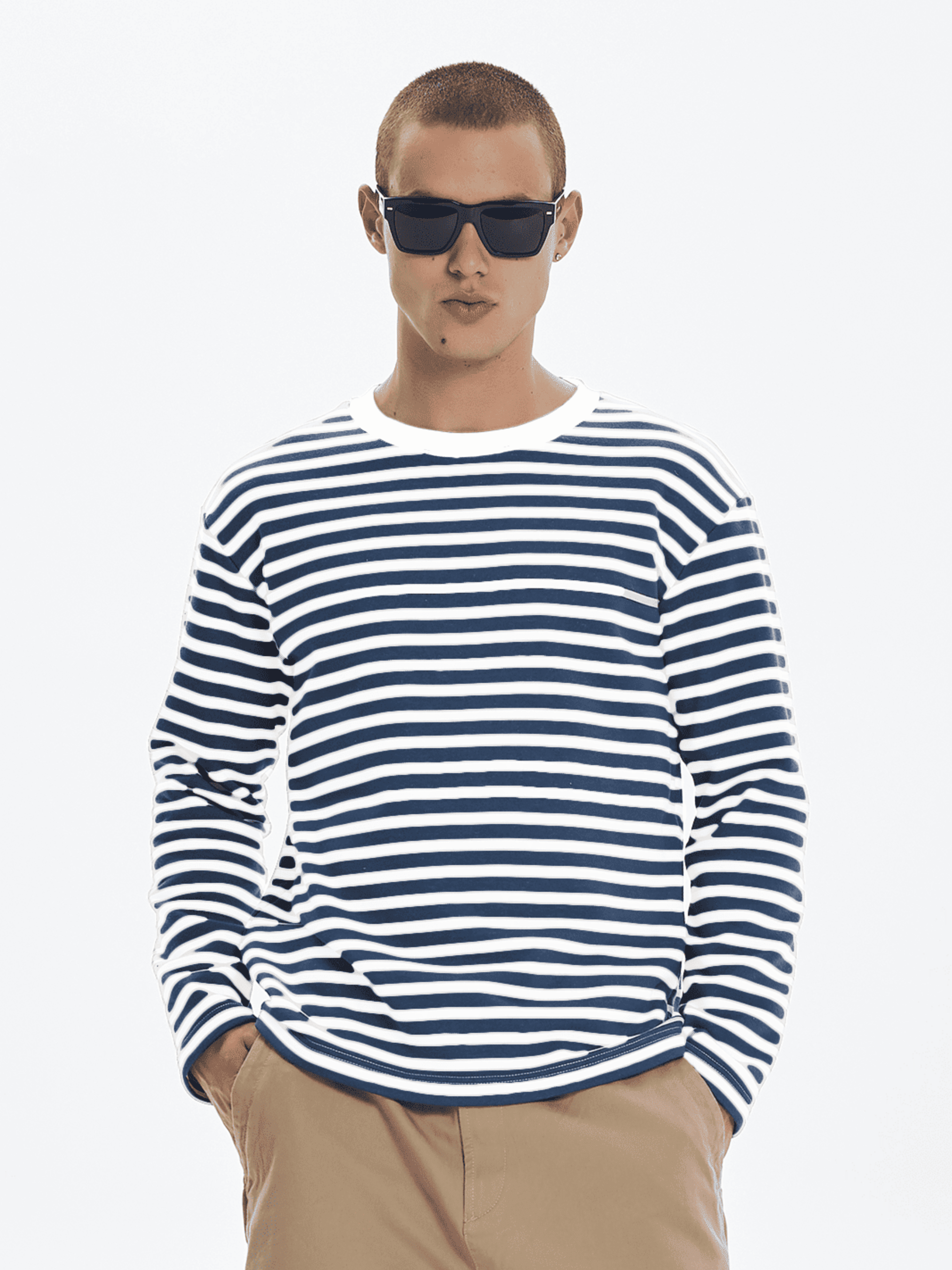 Чоловічий лонгслів прямого крою - базовий елемент гардеробу для тих, хто цінує комфорт і практичність. Модель у смужку з двунитки має спущений рукав, що додає легкості образу та забезпечує зручність у щоденному носінні. Відсутність манжетів підкреслює мінімалістичний характер виробу. Ідеально поєднується з джинсами чи спортивними штанами у повсякденних луках. Матеріал Тканина виготовлена з двох ниток, що надає їй високу міцність та стійкість до зношення. М'яка та приємна до шкіри, не сковує рухи і не дає тілу перегріватись. Не втрачає колір при пранні та носінні. Вироби з двунитки не мнуться, що додає їм універсальності у використанні. Рекомендації з догляду Рекомендовано прати при температурі не вище 40°C, використовуючи режим делікатного прання. При ручному пранні уникати тертя. Кольорові речі з бавовною у складі не рекомендовано сушити під прямими сонячними променями.