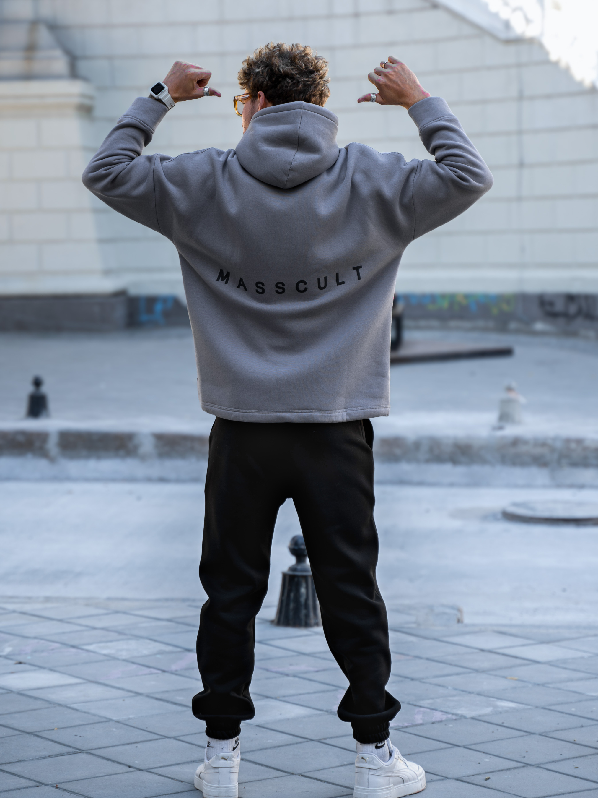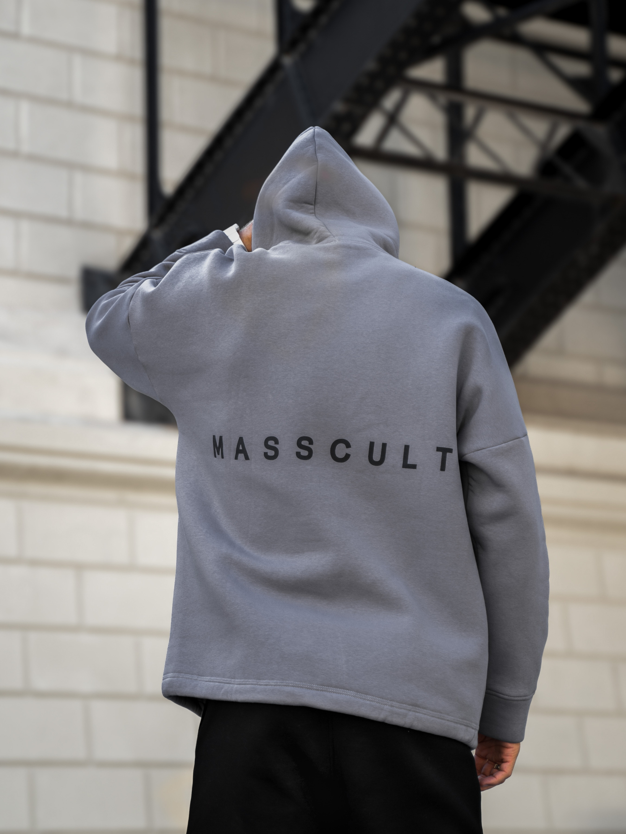 Чоловічий теплий худі оверсайз зі спущеним плечовим швом, подовженим донизу зі шнурком на утяжці. Толстовка з об'ємним принтом MASSCULT в перекладі: МАСОВА КУЛЬТУРА. Виконаний із теплої бавовняної тканини у вільному прямому стилі. Капюшон зі шнурком із 100% бавовни.
