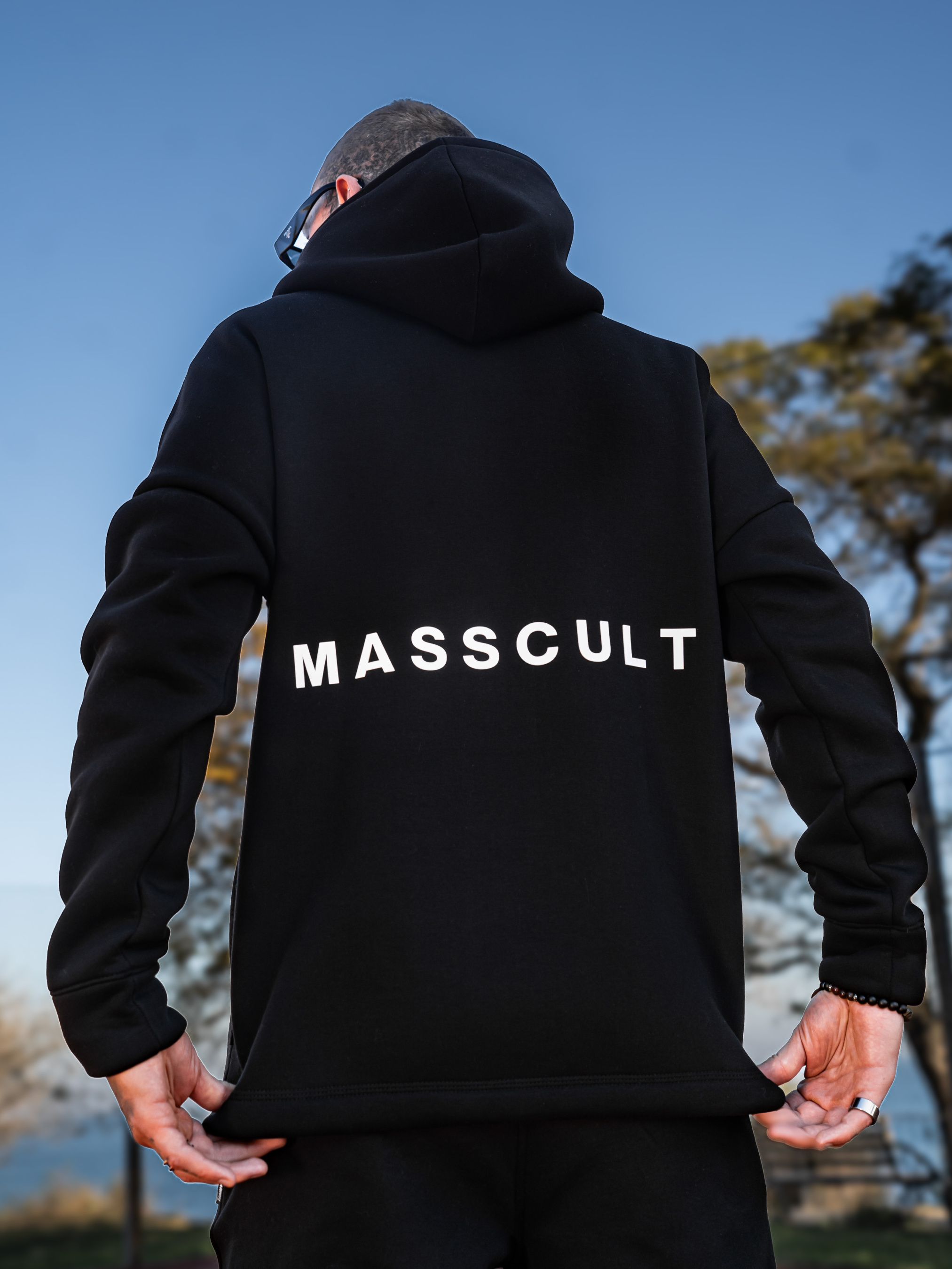 Чоловічий теплий худі оверсайз зі спущеним плечовим швом, подовженим донизу зі шнурком на утяжці. Толстовка з об'ємним принтом MASSCULT в перекладі: МАСОВА КУЛЬТУРА. Виконаний із теплої бавовняної тканини у вільному прямому стилі. Капюшон зі шнурком із 100% бавовни.
