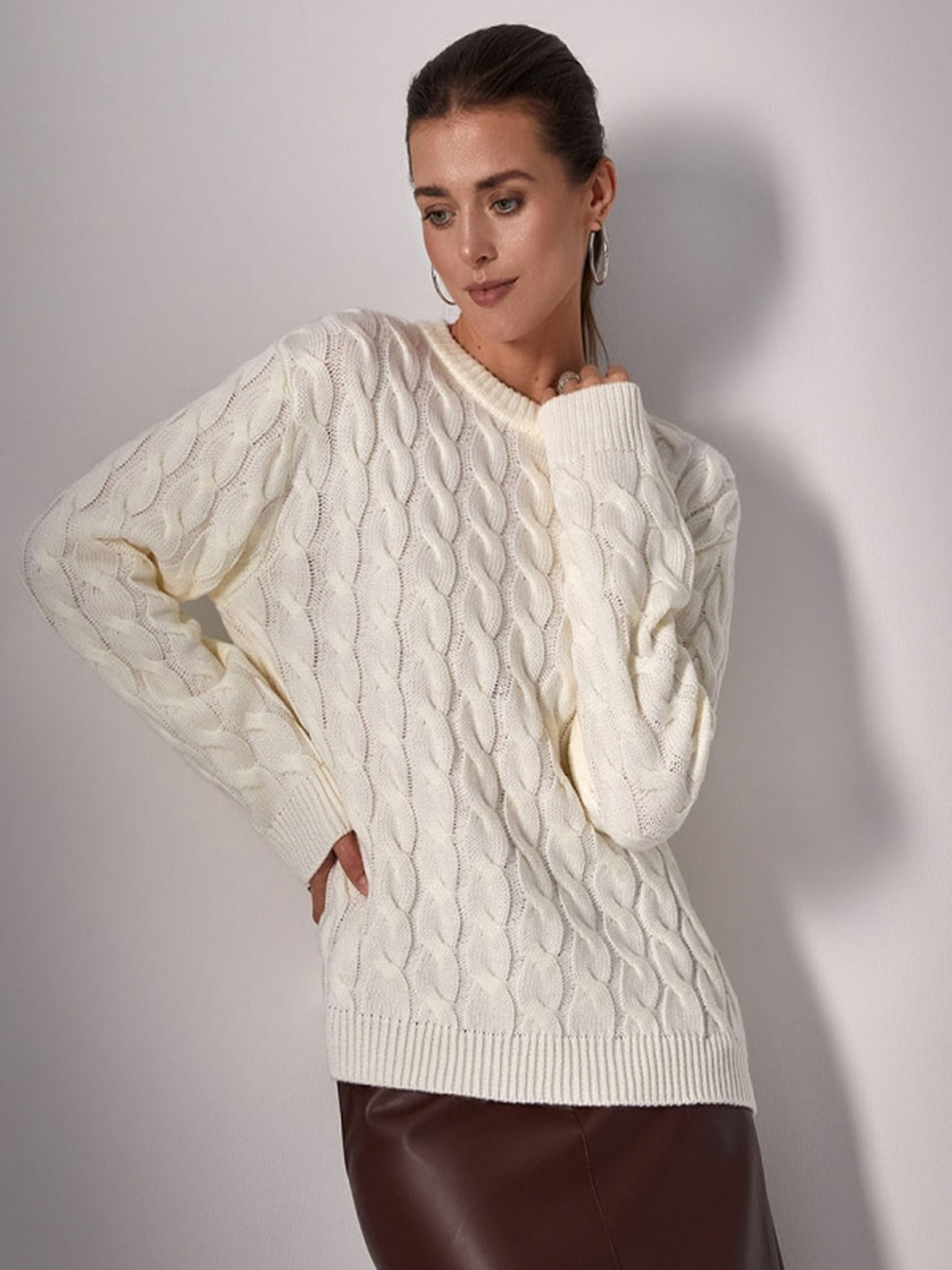 Актуальний жіночий джемпер із вовною та мохеромЗустрічайте тепло та комфорт у стильному виконанні! Цей джемпер прямого силуету виконаний з м’якої сумішевої пряжі, що містить вовну та мохер, завдяки чому дарує приємні тактильні відчуття та чудово зігріває у прохолодну погоду. Матеріал добре тримає форму та забезпечує довговічність виробу. Класичний дизайн із довгим рукавом та зручною посадкою робить модель універсальною — джемпер легко поєднується як з джинсами, так і з більш елегантними низами. Підійде для створення зручного та стильного образу на кожен день. Довжина виробу: близько 62–67 смШирина (в спокійному стані): 51–57 смШирина (в розтягнутому стані): 58–64 смДовжина рукава: 55 смШирина плеча: 14–17 см Ключові слова: жіночий джемпер із вовною, теплий джемпер з мохером, базовий джемпер прямого крою, зручний одяг на осінь-зиму, трикотаж із натуральною пряжею, джемпер з довгим рукавом.