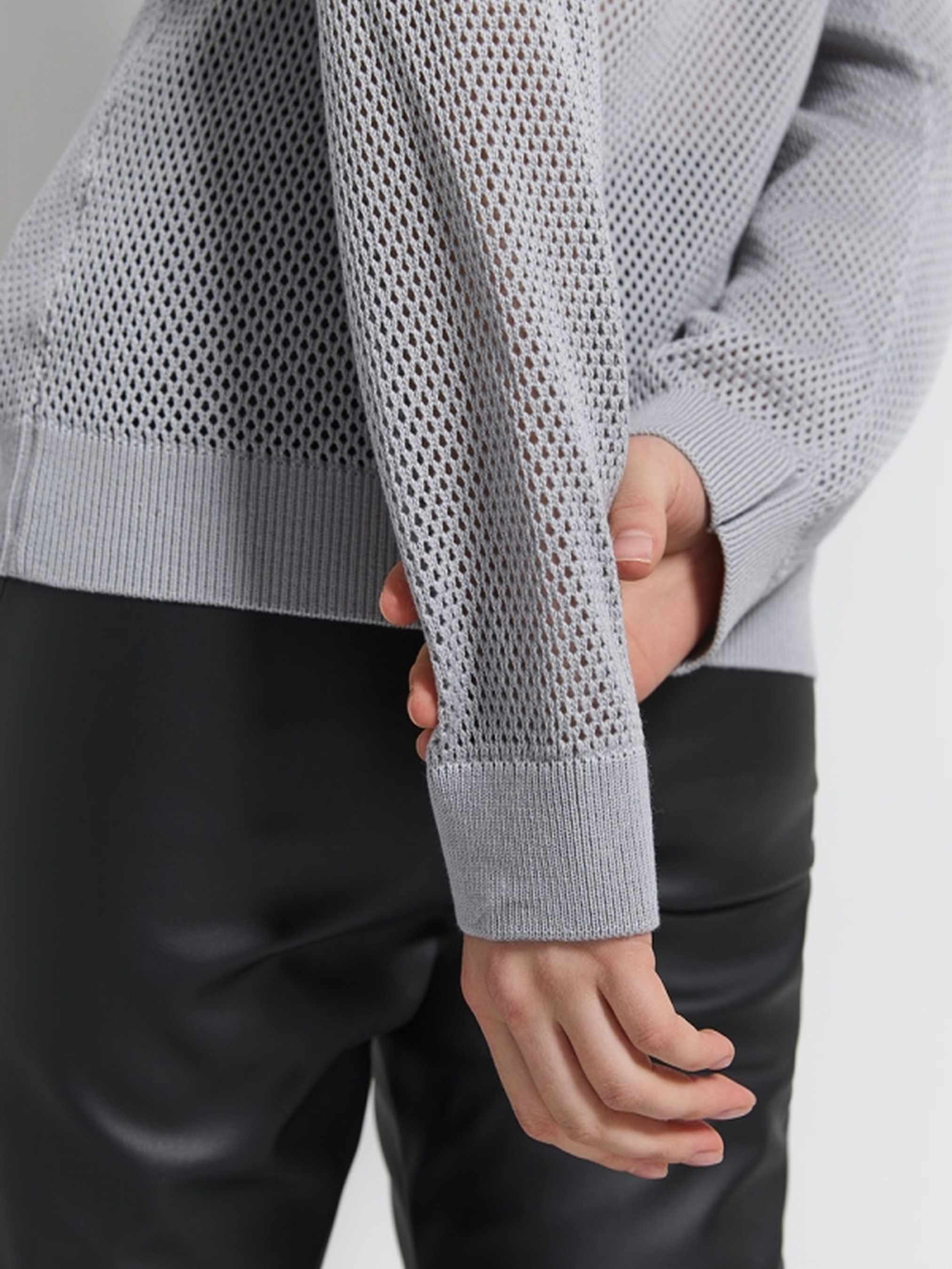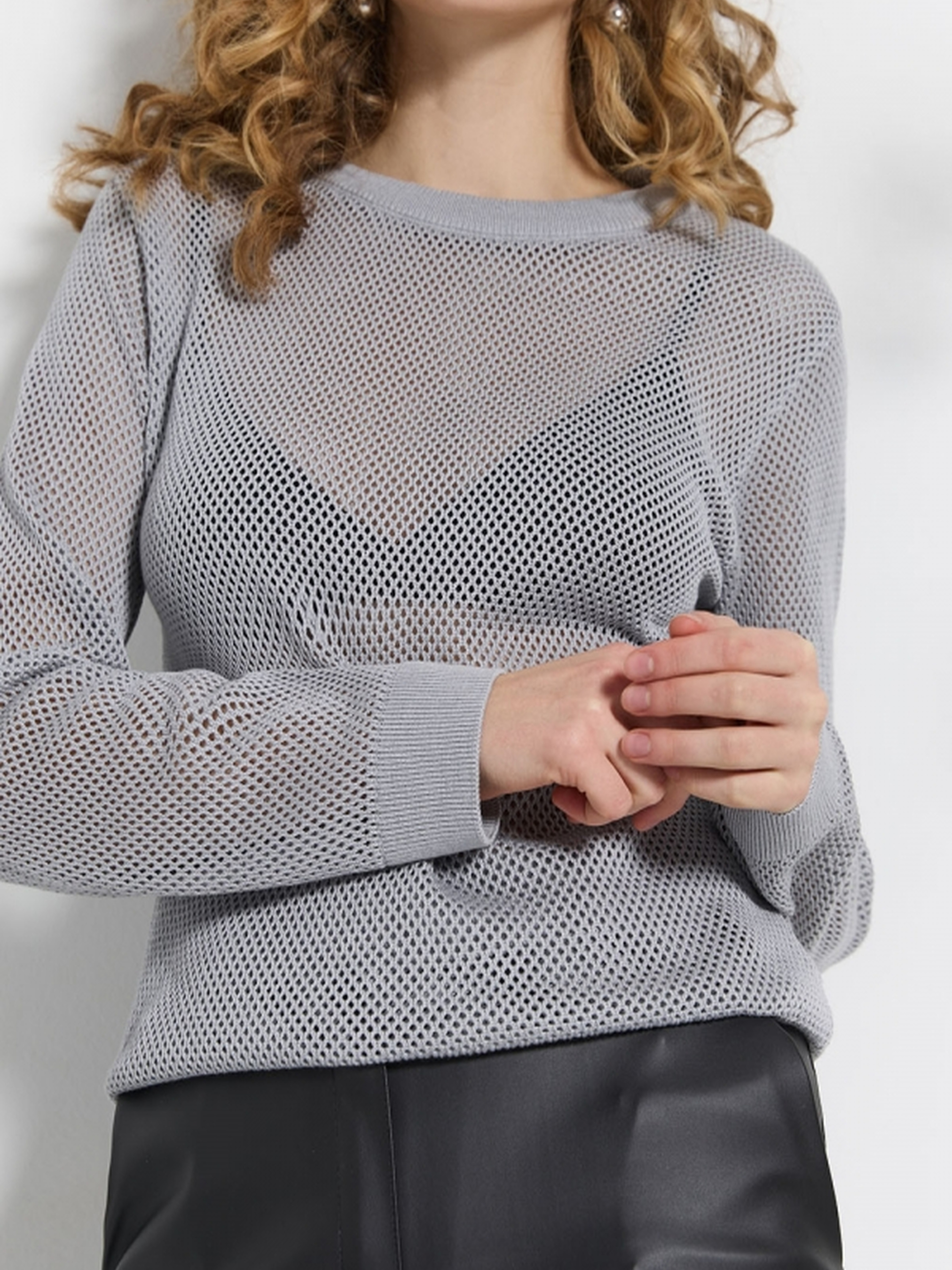 Цей ажурний джемпер з ніжної, приємної до тіла бавовняної пряжі ідеально підходить для тих, хто цінує стиль і комфорт. Охайні манжети на рукавах і низу виробу додають елегантності та завершеності образу. Легка, дихаюча тканина робить його відмінним вибором для теплої погоди чи як легкий шарф у холодніші дні. Довжина виробу: 61–69 смШирина під проймою та у талії в спокійному нерозтягнутому стані: 45–50 смШирина в розтягнутому стані: 50–55 смШирина по низу в спокійному нерозтягнутому стані: 36–41 смШирина по низу в розтягнутому стані: 45–50 смДовжина рукава: 59–58 смШирина плеча: 10–13 смШирина рукава по низу: 10,5–12 смВисота манжети: 5 см