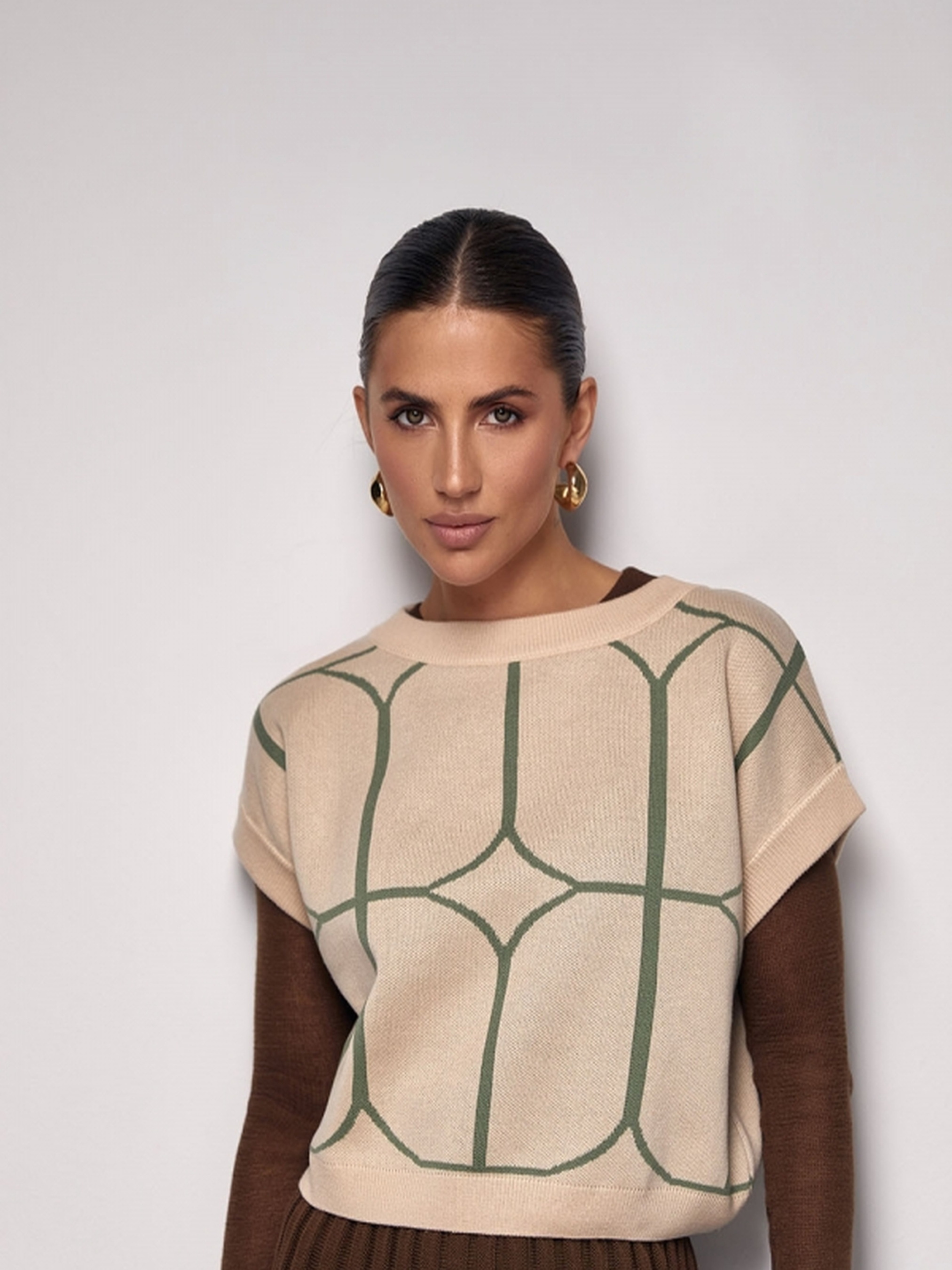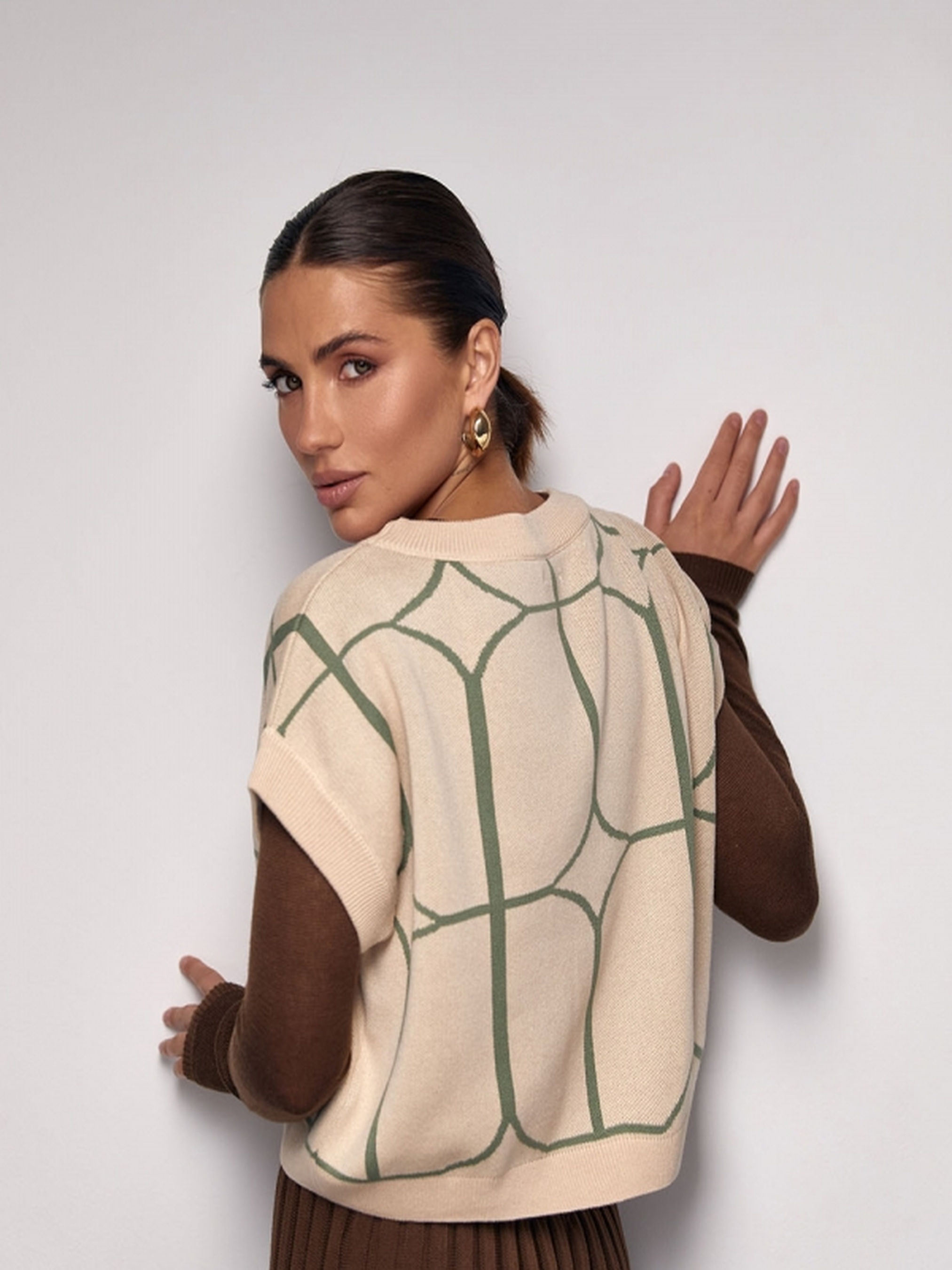 Цей жилет, виготовлений з високоякісної змішаної пряжі на основі бавовни та віскози, поєднує в собі класичний стиль та сучасні трендові елементи. Легкий, елегантний і комфортний, він стане ідеальним доповненням до будь-якого гардеробу, додаючи елегантності та шарму вашому образу. • Довжина жилета: близько 47-55 см (+- 2 см)• Ширина під проймою: В спокійному нерозтягнутому стані: 56-67 см В розтягнутому стані: 64-75 см• Ширина у талії: В спокійному нерозтягнутому стані: 54-65 см В розтягнутому стані: 62-73 см• Ширина по низу: 48-57 см• Ширина плеча: 16-21 см• Висота пройми: 20-21 см Цей жилет ідеально підходить для створення стильних багатошарових образів. Його універсальність дозволяє поєднувати його з різними елементами одягу, як для офіційних, так і для повсякденних стилізацій.