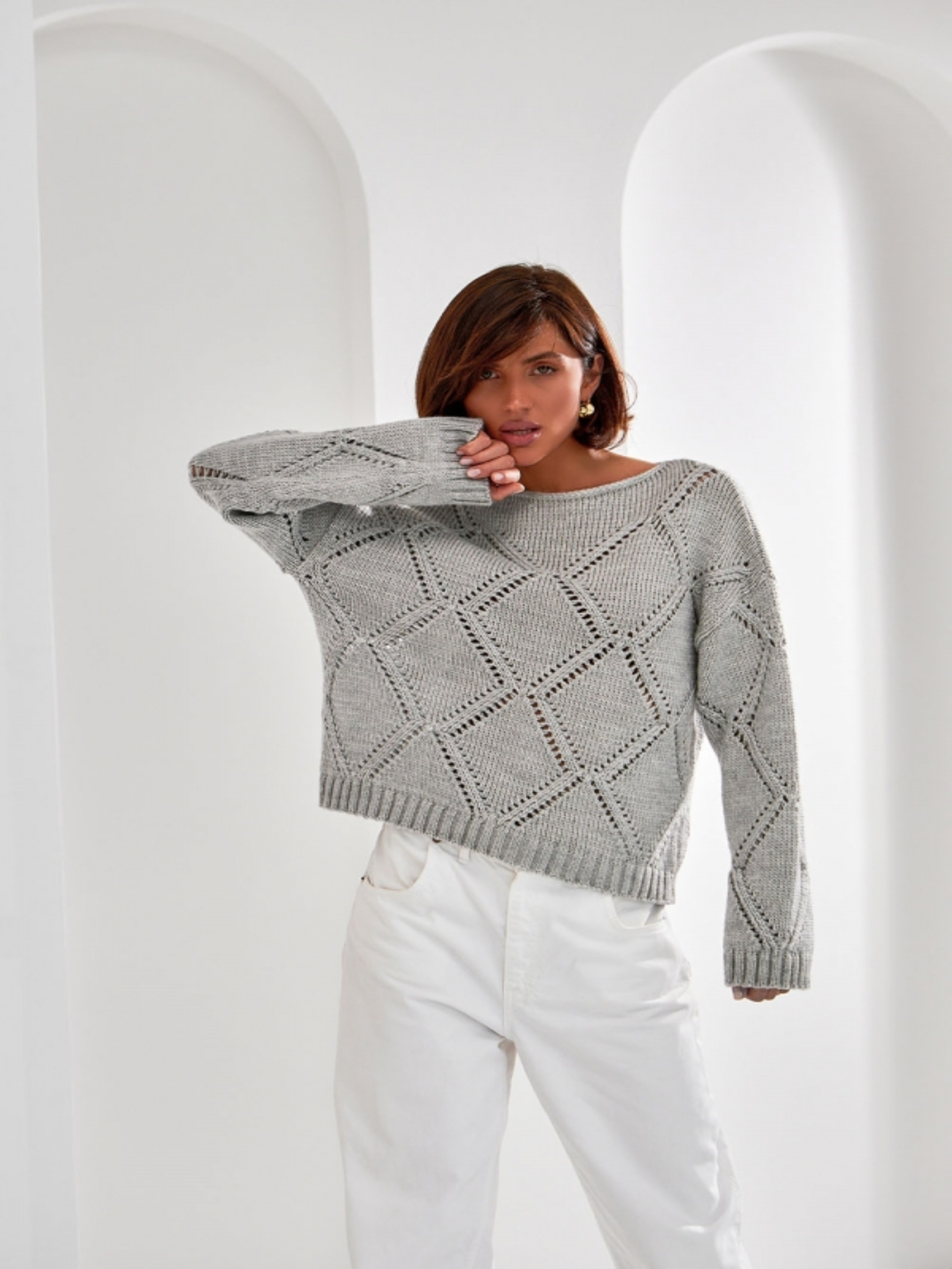 Цей стильний кардиган укороченого крою виконаний з теплої вовняної змішаної пряжі, що забезпечує комфорт та затишок. Модель вільного силуету з комфортною спущеною проймою в об'ємному переплетенні середньої щільності. Декорований фактурним малюнком, кардиган додає оригінальності та витонченості будь-якому образу. Особливості:• Матеріал: тепла вовняна змішана пряжа для комфортного носіння в холодну пору року.• Фасон: укорочений, вільний силует з комфортною спущеною проймою.• Переплетення: об'ємне, середньої щільності для ідеальної драпіровки.• Декор: фактурний малюнок для елегантності.• Застібка: ґудзики.• Довжина виробу: близько 58-64 см (+- 2 см).• Ширина під проймою та у талії в спокійному нерозтягнутому стані: 50-56 см (в розтягнутому стані 56-62 см).• Ширина по низу в спокійному нерозтягнутому стані: 42-52 см.• Довжина рукава: 52-50 см.• Ширина плеча: 16-20 см.• Висота пройми: 23-25 см.• Глибина вирізу: 25-29 см. Цей кардиган стане чудовим доповненням вашого гардеробу, підходячи для повсякденних і вечірніх образів.
