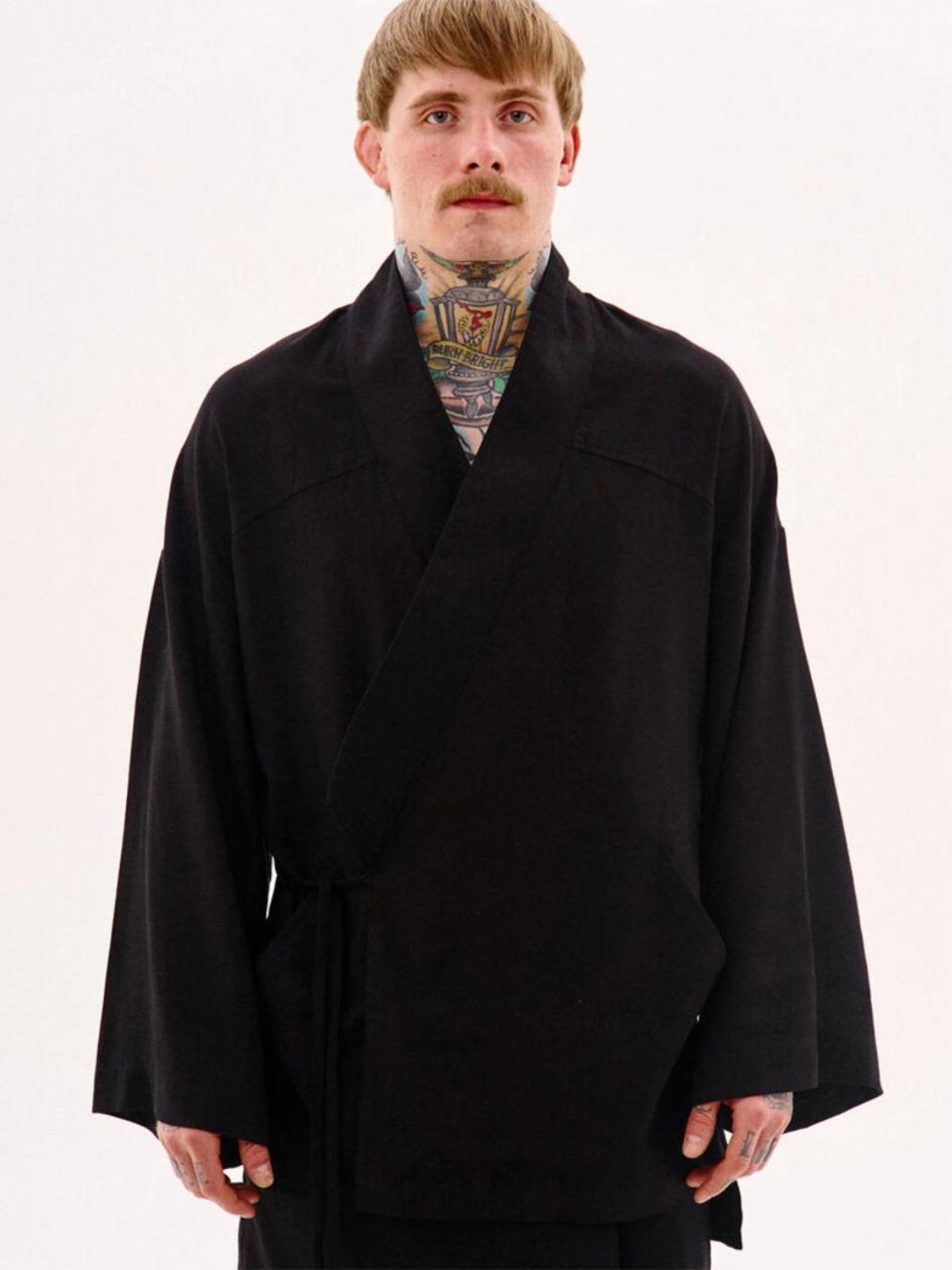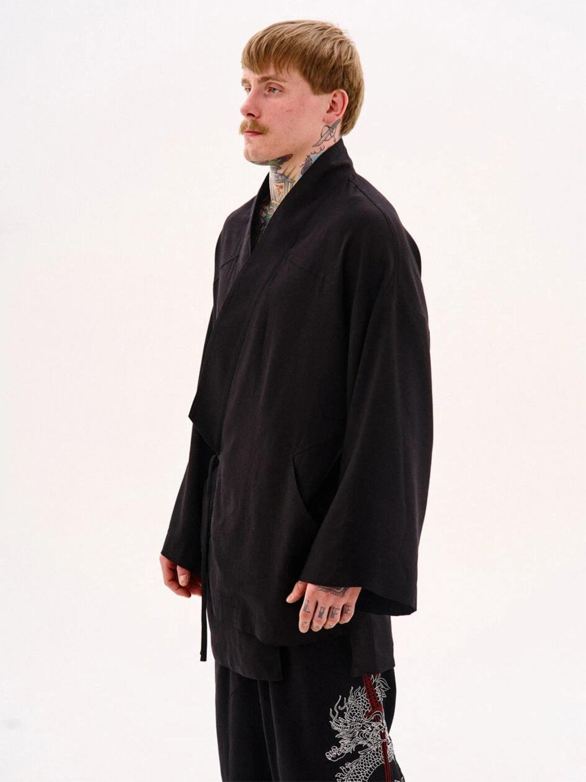 Склад тканини: 53% льон, 47% бавовна. Опис матеріалів та фурнітури: Льон — натуральний матеріал з приємною текстурою, дихає та забезпечує комфорт у спекотну погоду. Ключові особливості моделі: Кімоно оверсайз крою з льону, фіксується на запах з ременем. Має декоративні шви, дві кишені та зйомні стрічки на рукавах для візуального ефекту. На спині розташована вишивка в японському стилі. Доступне в двох кольорах. Ідеально поєднується з льняними брюками Муракамі, або брюками Ямагуті. Рекомендації по догляду: Машинне прання при макс. 30 ºC Не можна використовувати лужні засоби / відбілювач Прасування при макс. 110 ºC Не використовувати сушарку