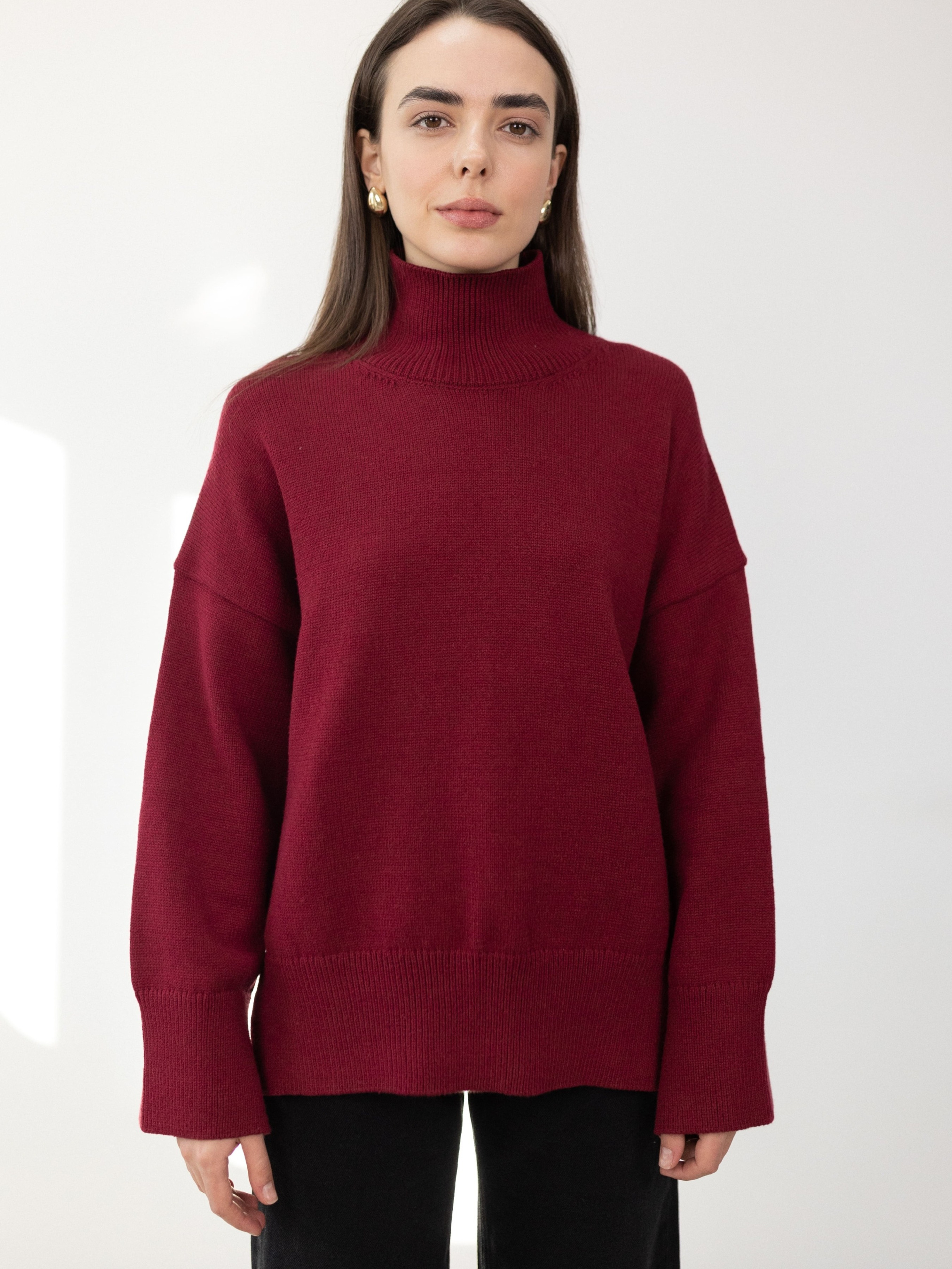 Светр в'язаний з високою горловиною — це стильний і затишний елемент зимового гардеробу, який відмінно підходить для холодної погоди. Він забезпечує не тільки комфорт і тепло, але й має елегантний вигляд, що робить його універсальним для різних образів.