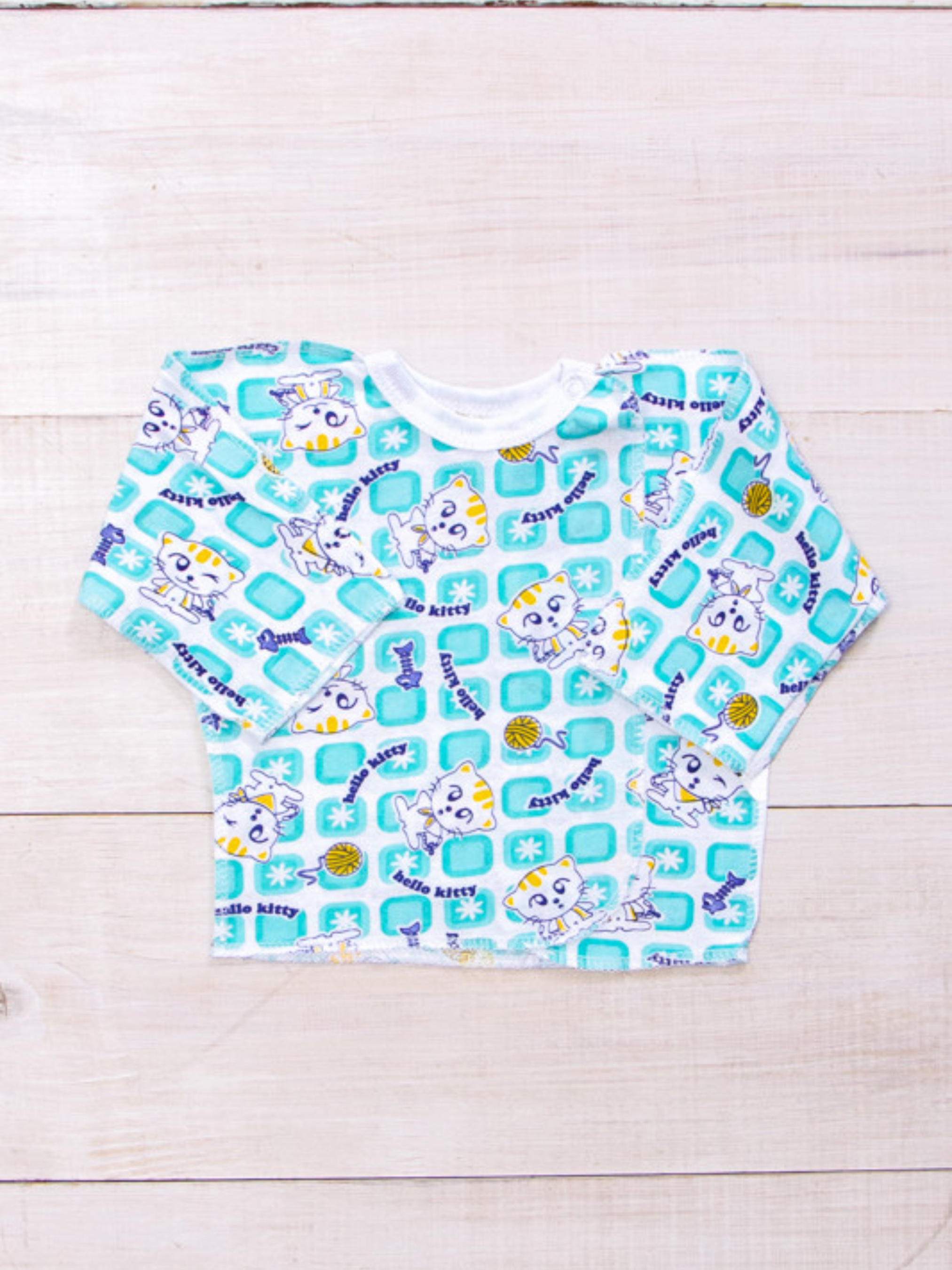 Полотно: кулір набивний Склад полотна: 100% бавовна Розмір 22 Легка простора зручна дитяча сорочечка на запах з довгим рукавом. Виріб виконаний з набивного куліру швами назовні. На плечі застібається на кнопку. Модель призначена для носіння на свіжому повітрі в літню пору. Якість матеріалів бездоганна бавовна відрізняється своїми натуральністю приємлимістью для шкіри і хорошою стійкістю до зносу. Догляд: прання при температурі 30 градусів без попереднього замочування. Вироби з принтом перед пранням необхідно вивернути на виворітний бік барабанна сушка заборонена; прасувати при t не більше 110С; з вивороту; при пранні не змішувати з іншими типами тканин. Продукція бренду відрізняється європейськими стандартами якості і відшивається тільки з сертифікованої сировини. Весь одяг вироблений фабрикою суворо відповідає розмірній сітці. На бірочці вказано орієнтовний зріст дитини а в таблиці - реальні виміри які зробили наші менеджери. Приємних Вам покупок! Прання перед першим носінням ОБОВ'ЯЗКОВЕ!