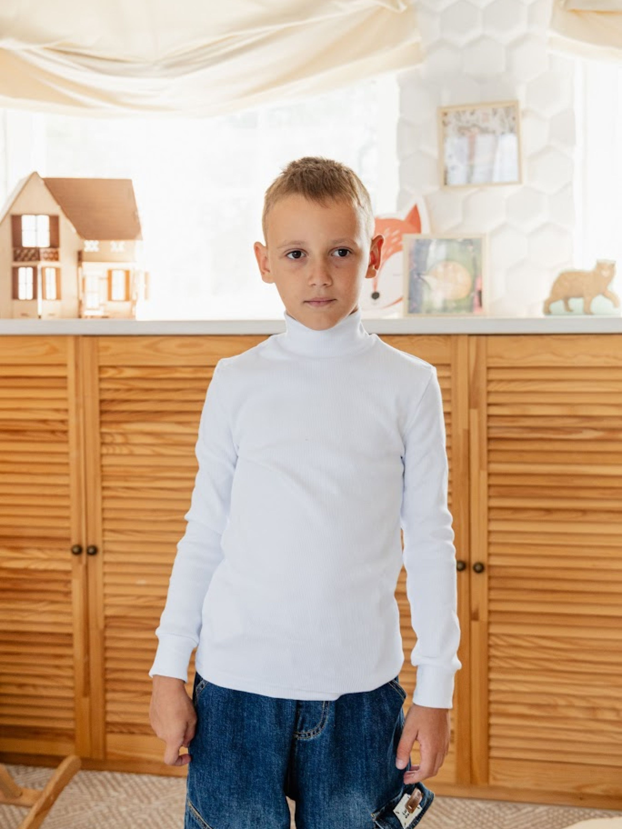 Полотно: рубчик білий Склад полотна: 95% бавовна, 5% еластан Зріст: 164 Дитяча водолазка - стильний і теплий вибір для вашої дитини в холодну пору року. Виготовлена з якісних матеріалів, вона забезпечує комфорт і захист від холоду. Ця дитяча водолазка чудово підходить для активного відпочинку та повсякденного носіння. Вишуканий дизайн і різноманітні кольори дозволяють підібрати відтінок за вашим смаком.