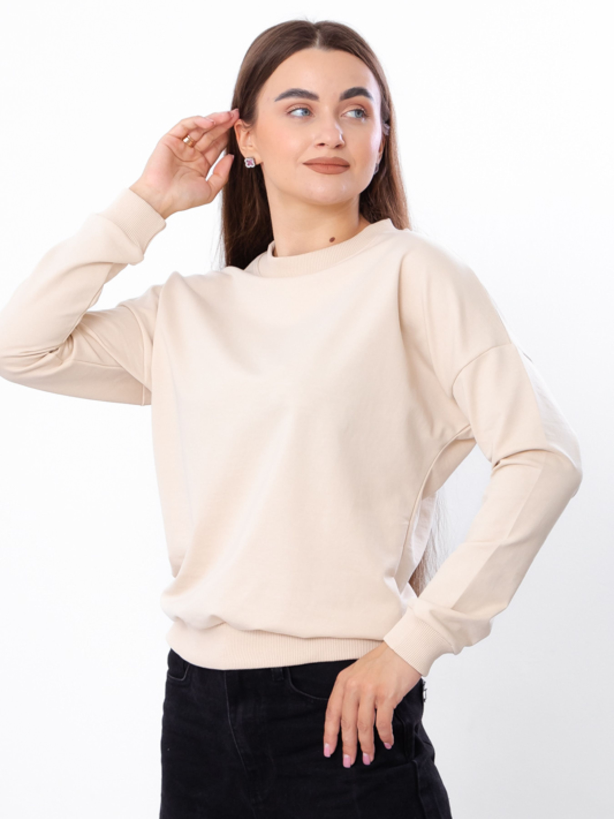 Полотно: двонитка однотонна Склад полотна: 80% бавовна, 20% поліестер Розмір: 44-54 Жіночий світшот із якісного полотна двунитка забезпечує комфорт та стиль у будь-яку пору року. М’яка тканина приємна до тіла, добре зберігає тепло та не сковує рухів. Класичний круглий виріз підкреслює витонченість шиї, а манжети додають зручності. Завдяки універсальному дизайну легко поєднується з джинсами, легінсами, ботфортами чи спідницями, дозволяючи створювати стильні образи на кожен день.