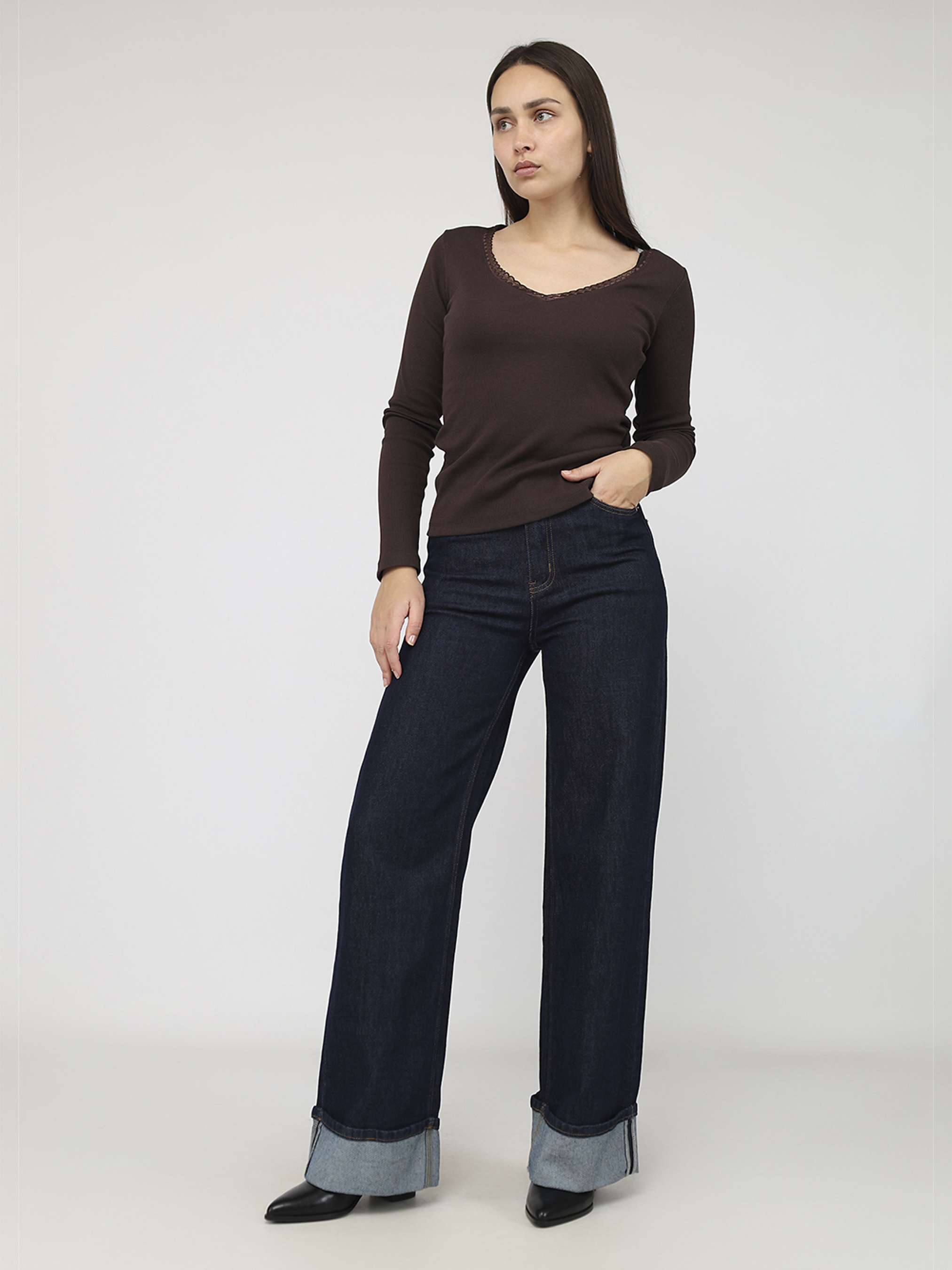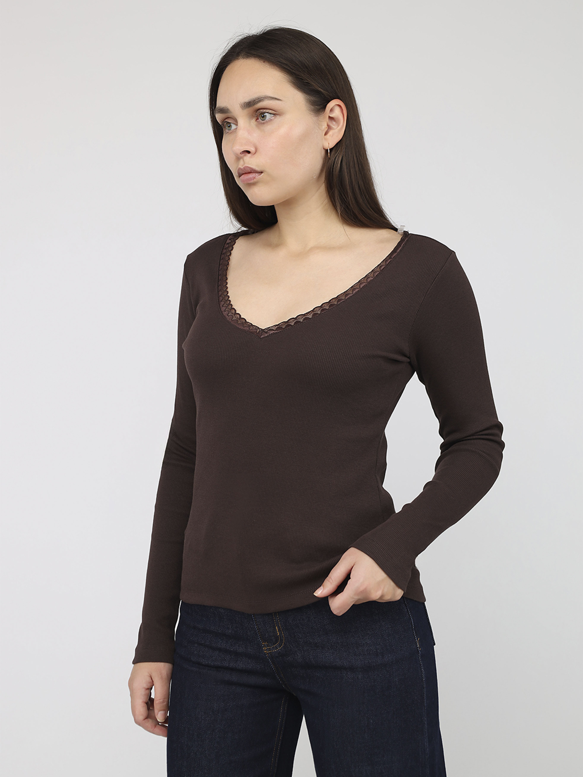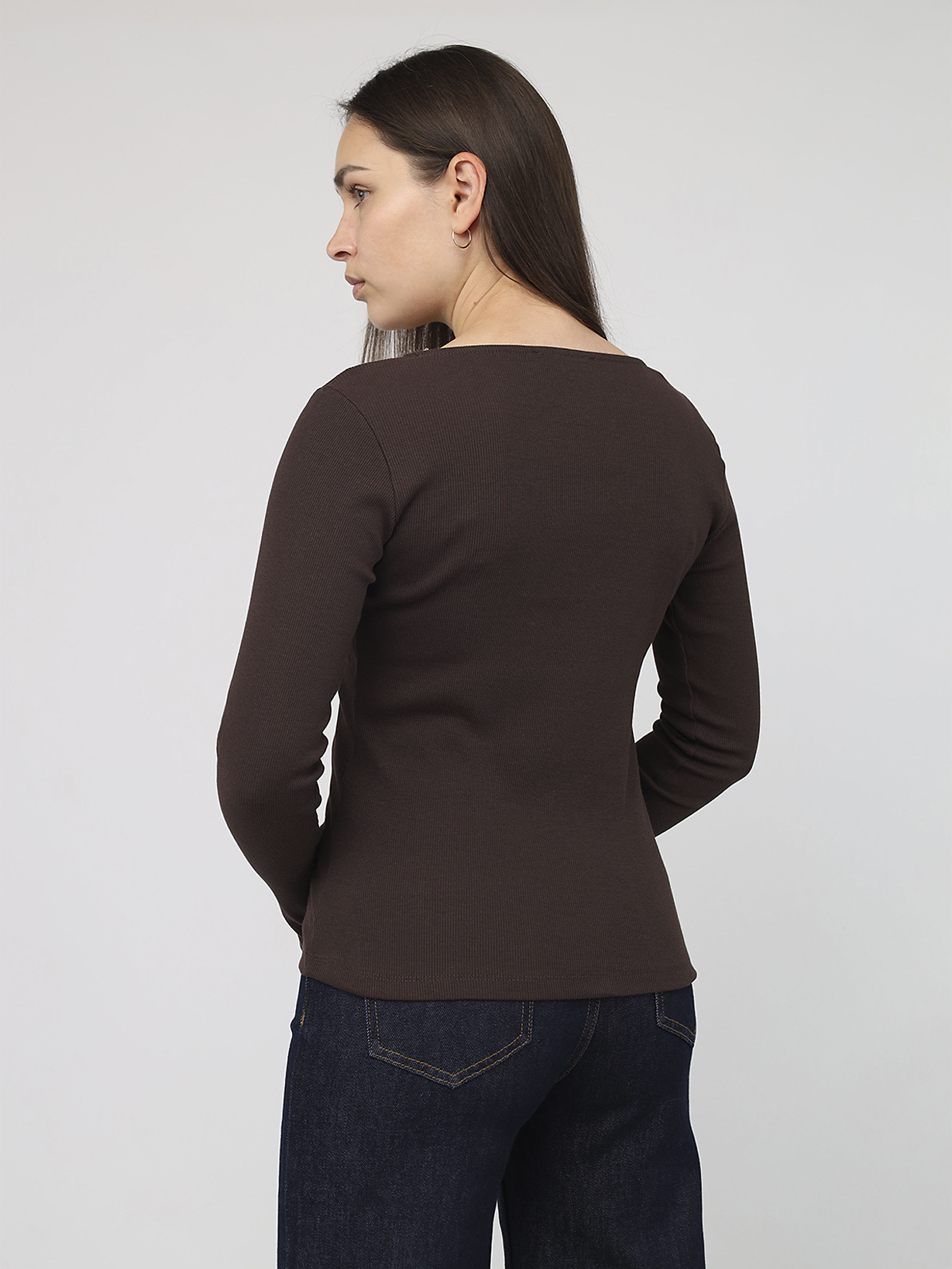 Футболка з довгим рукавом жіноча колір темно-коричневий ЦБ-00284476 модель ЦБ-00284476