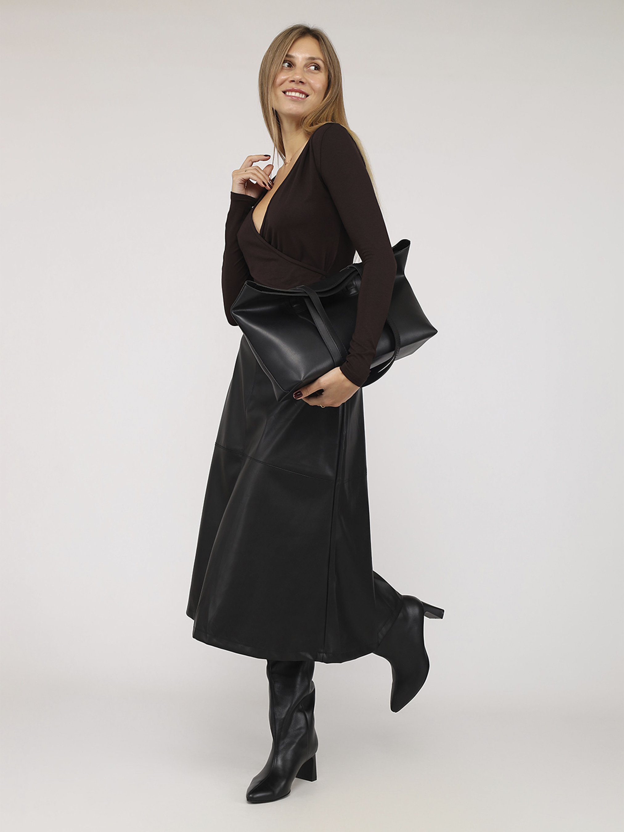 Футболка з довгим рукавом жіноча колір темно-коричневий ЦБ-00283831 модель ЦБ-00283831