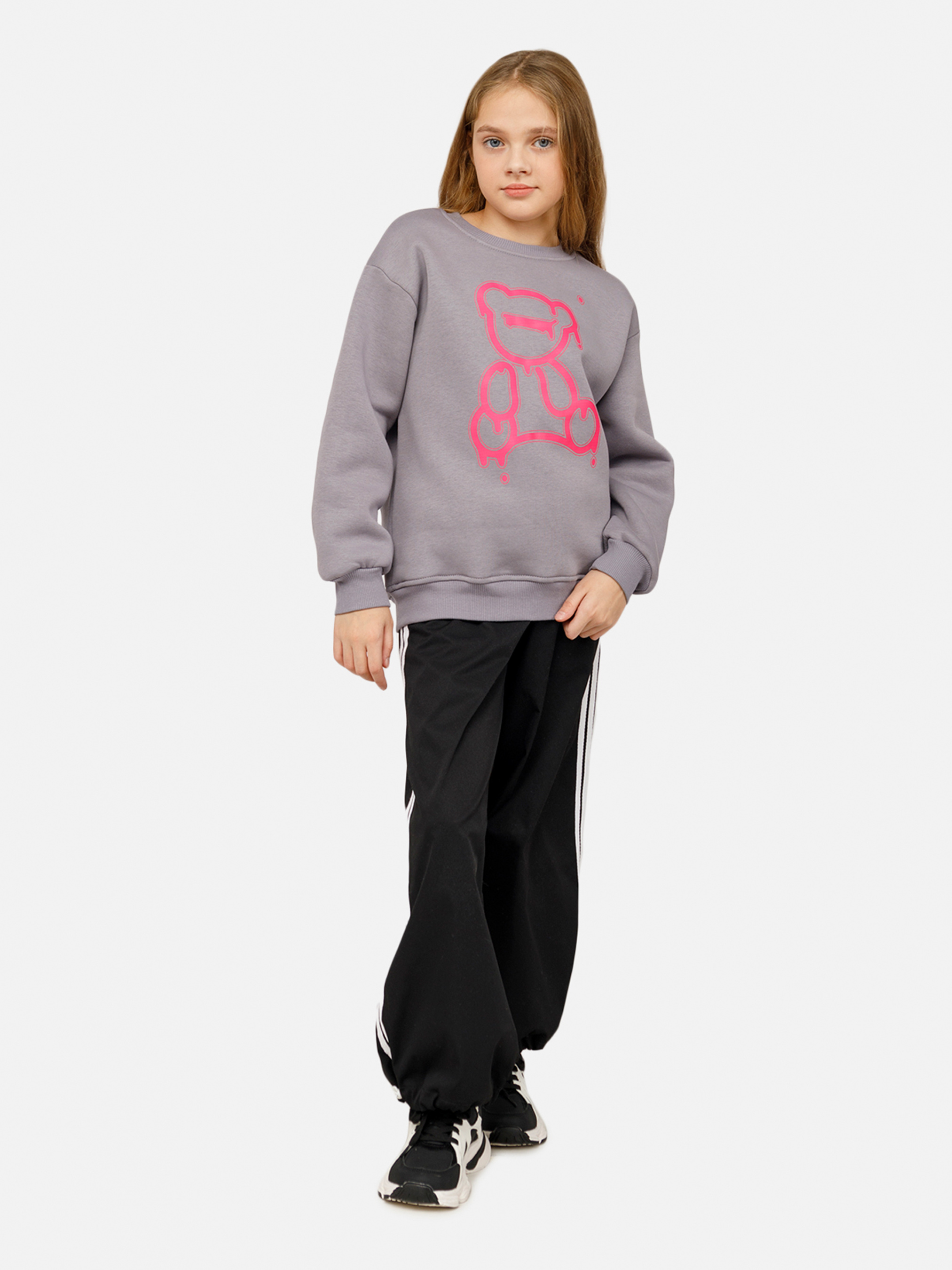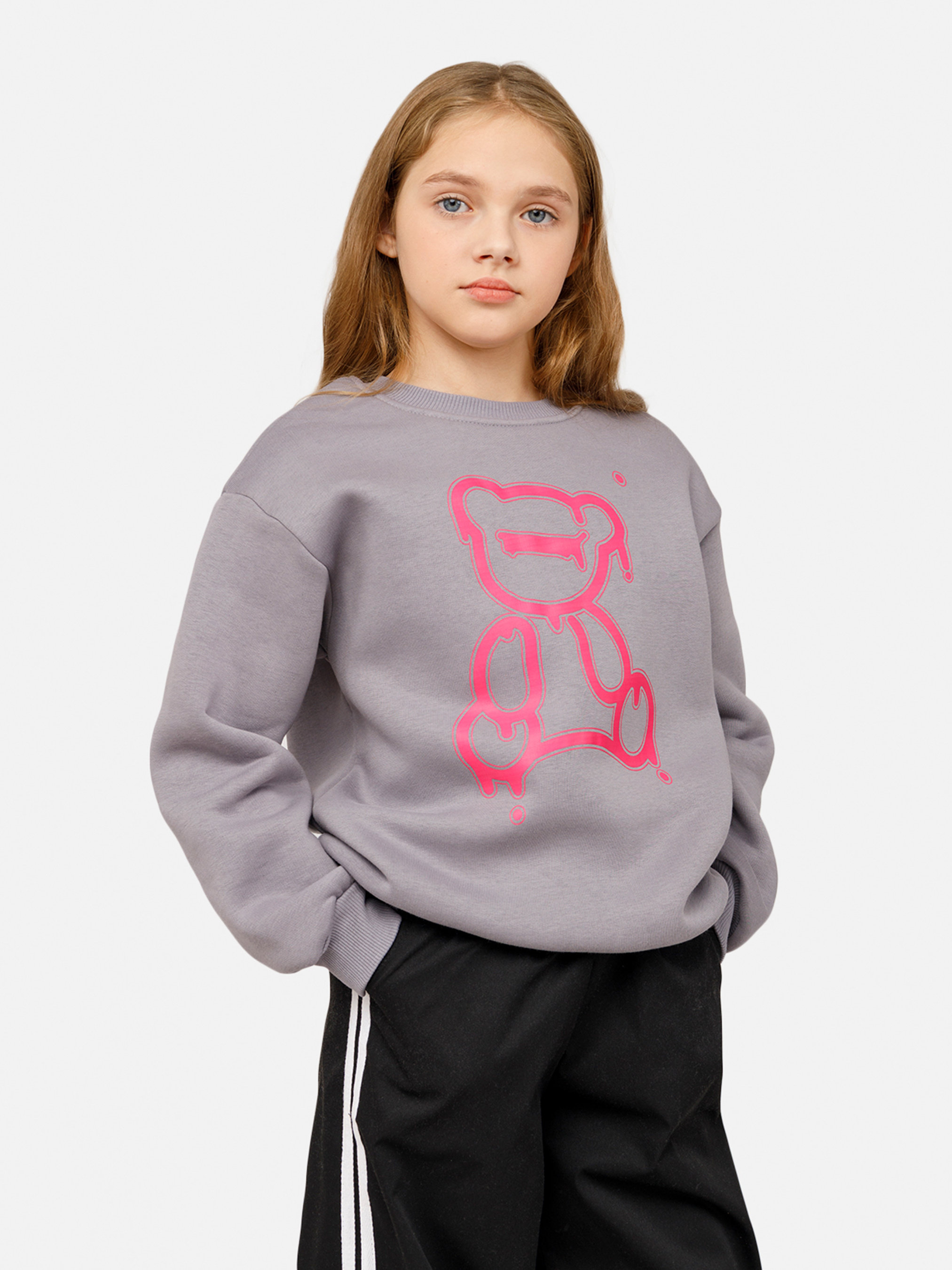 Світшот для дівчинки — це зручний та стильний вибір для повсякденного гардеробу. Виготовлений із м'якого, приємного на дотик матеріалу, світшот забезпечує комфорт і тепло в прохолодну погоду. Завдяки вільному крою та еластичним манжетам, він не обмежує рухів і підходить для активного відпочинку або прогулянок. Яскравий дизайн і модні деталі роблять його ідеальним для шкільних занять або вихідних. Світшот легко поєднується з джинсами, легінсами чи спідницями, додаючи образу вашої дівчинки індивідуальності та стилю. Особливості: Колір світшоту: сірий з декоративним принтом. Крій: оверсайз Матеріал виготовлення: футер. Склад: 70 % бавовна, 30 % лайкра. Має еластичні манжети на рукавах. Сезон: зима. Параметри моделі: Зріст: 134 сантиметри. Розмір на моделі: 140 / український розмір: 140. Країна виробник: Україна.