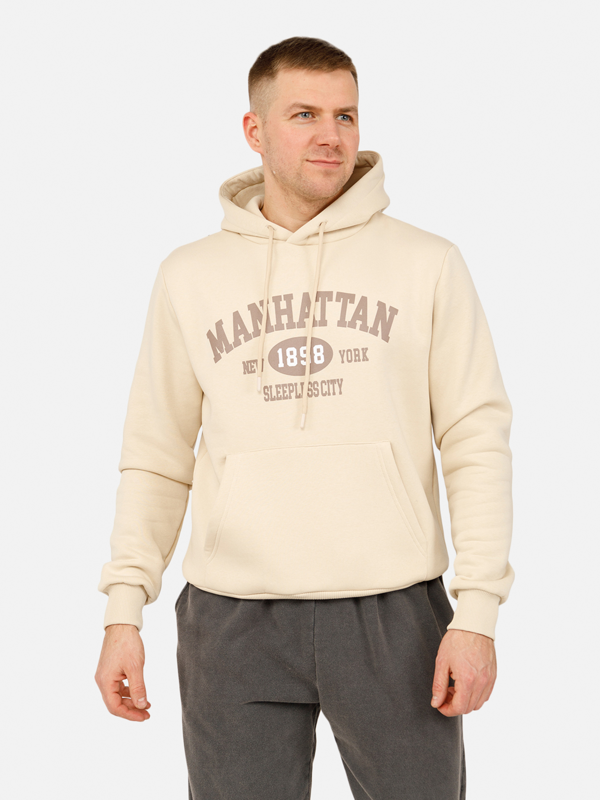 Чоловічий худі — це ідеальний вибір для комфорту та стилю в повсякденному житті. Завдяки м'якому, дихаючому матеріалу, худі відмінно підходить для будь-якої погоди, забезпечуючи легке тепло та зручність протягом усього дня. Його універсальний дизайн дозволяє поєднувати з джинсами, спортивними штанами або шортами, створюючи як casual, так і спортивний образ. Практична кишеня "кенгуру" додає функціональності, а капюшон із шнурком захищає від вітру та надає стильний вигляд. Це худі стане надійним доповненням до гардероба, яке легко поєднується з іншими речами, і підійде для будь-якої ситуації — від прогулянок у місті до спортивних тренувань. Вибір на кожен день для чоловіків, які цінують простоту та комфорт. Особливості худі: Колір: молочний, з декоративним принтом. Матеріал виготовлення: футер. Склад: 80 % бавовна, 20 % еластан. Крій худі: прямий. Має еластичний манжет на рукавах. Сезон: зима. Параметри моделі: Зріст: 180 сантиметрів. Розмір на моделі: L / український розмір - 50. Країна виробник: Туреччина.