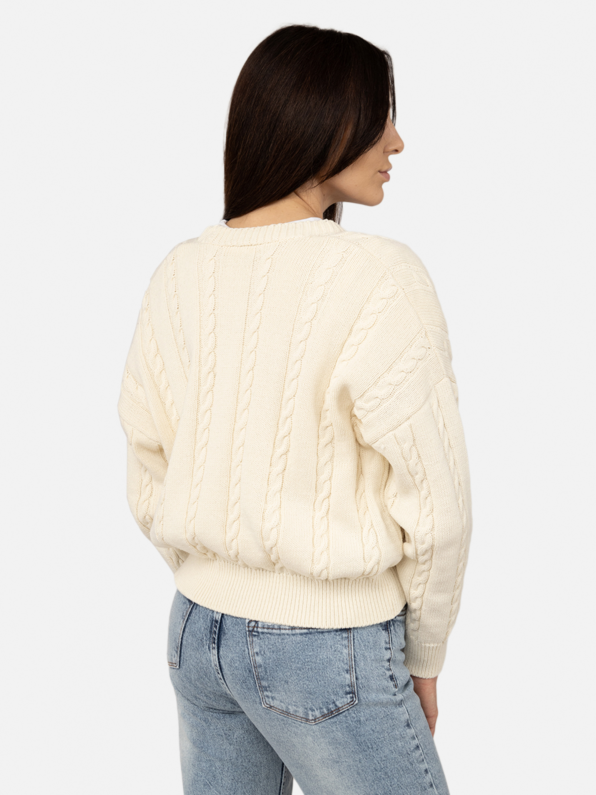 Кардиган жіночий: комфорт, стиль та універсальність у кожному образі Жіночий кардиган з прямим кроєм – це стильна та практична річ, яка стане ідеальним доповненням вашого гардероба. Завдяки продуманому крою ця модель виглядає стримано й елегантно, водночас забезпечуючи комфорт і свободу рухів. Вона підходить для будь-якого типу фігури, гарантуючи ідеальну посадку та створюючи модний і водночас розслаблений образ. Кардиган виготовлений із високоякісних матеріалів, що гарантує м'якість тканини, її зносостійкість і здатність зберігати форму навіть після багаторазового прання. Крім того, тканина добре пропускає повітря, що забезпечує комфорт протягом усього дня, незалежно від погодних умов. Дизайн моделі відрізняється мінімалізмом і сучасним стилем. Прямий крій забезпечує легкість у поєднанні з різними елементами гардероба. Ви можете носити кардиган із джинсами, легінсами, штанами чи навіть спідницями для створення універсального образу. Такий кардиган легко інтегрується як у повсякденний, так і у спортивний або кежуал стиль. Кардиган ідеально підходить для прогулянок, подорожей, роботи чи навіть домашнього відпочинку, даруючи комфорт і свободу в кожному русі. Цей кардиган – чудовий вибір для створення багатошарових образів. Ви можете носити його поверх сорочки чи майки або комбінувати з курткою, пальто чи пуховиком у прохолодну погоду. Простий, але стильний крій робить цю модель універсальною, дозволяючи використовувати її в будь-якому сезоні. Замовте жіночий кардиган прямого крою вже сьогодні та додайте до свого гардероба практичну, стильну й універсальну річ, яка стане вашим улюбленим вибором для будь-якого випадку! Особливості кардигану: Колір: молочний, з декоративним візерунком. Матеріал виготовлення: в'язане полотно. Склад: 70 % бавовна, 30 % поліестер. Крій: прямий. Кардиган має застібку на гудзиках. Довжина: середня. Сезон: демісезон. Параметри моделі: Зріст: 174 сантиметри. Розмір на моделі: 46. Країна виробник: Туреччина.