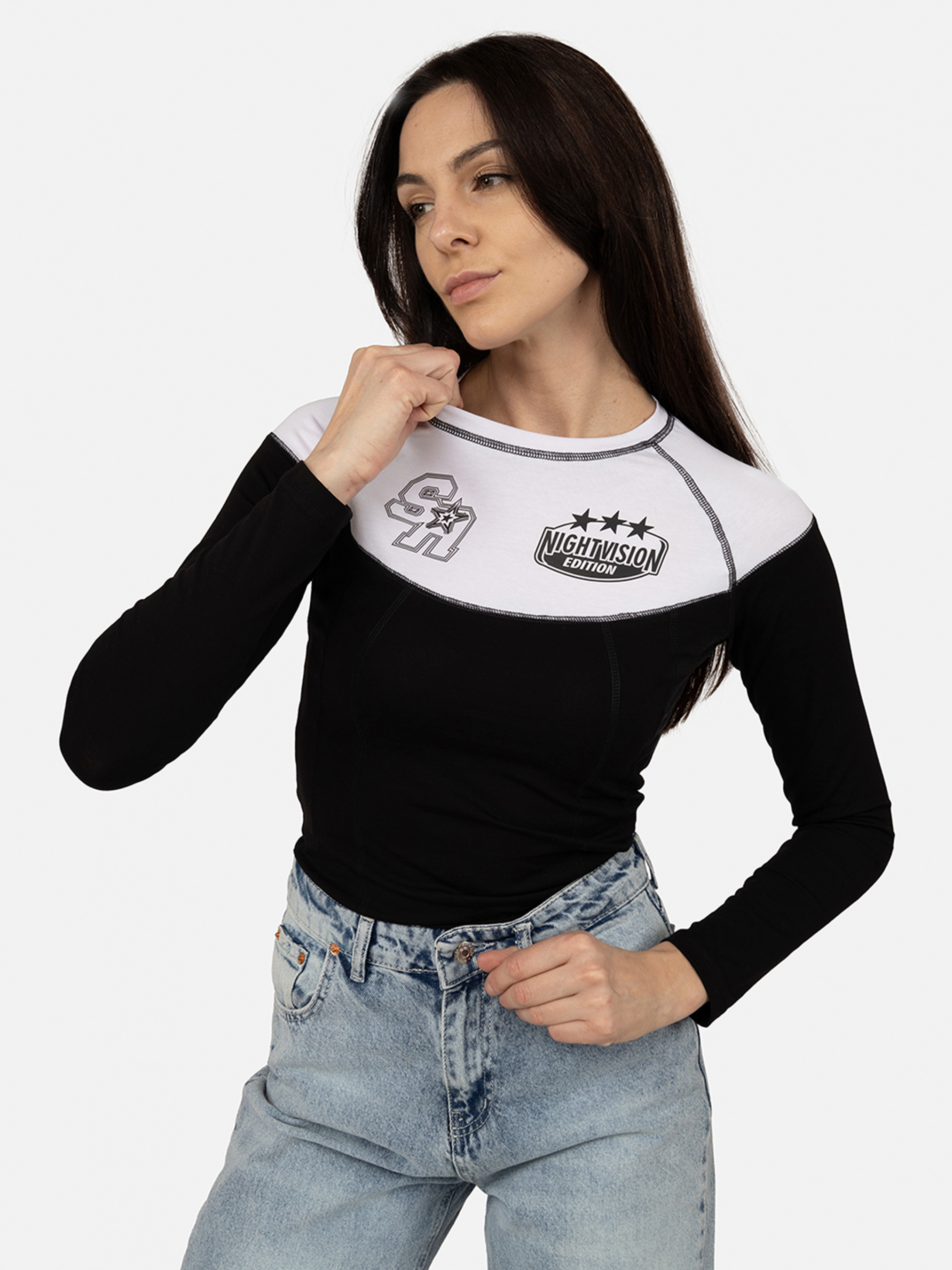 Футболка з довгим рукавом жіноча: стиль, комфорт і універсальність Жіноча приталена футболка з довгим рукавом – це ідеальний вибір для тих, хто цінує поєднання елегантності, зручності та сучасного дизайну. Завдяки облягаючому крою ця модель гарно підкреслює контури фігури, додаючи вашому образу жіночності й витонченості. Виготовлена з якісних матеріалів, футболка забезпечує комфорт навіть під час тривалого носіння. Тканина приємна до тіла, добре пропускає повітря і не створює відчуття дискомфорту. Довгі рукави додають практичності, дозволяючи носити цю футболку в прохолодну погоду або в умовах змінного клімату. Вона чудово підходить для демісезонного гардеробу, адже легко комбінується з іншими елементами одягу. Високоякісний крій забезпечує ідеальну посадку по фігурі, а акуратно оброблені шви додають моделі довговічності та естетичності. Її універсальність дозволяє використовувати як основу для різних образів – вона однаково добре виглядає в комплекті з джинсами, класичними брюками, спідницями або шортами. Особливу увагу варто приділити зручності моделі для активного способу життя. Завдяки приталеній формі футболка не лише виглядає стильно, а й не обмежує рухів, що робить її чудовим вибором для прогулянок, поїздок чи навіть легких тренувань. Крім того, вона чудово підходить для створення багатошарових образів – її можна носити під піджаком, кардиганом або спортивною кофтою. Ця жіноча футболка з довгим рукавом ідеально підходить як для повсякденного використання, так і для більш офіційних випадків. Її сучасний дизайн і висока якість виготовлення роблять цю модель універсальним і стильним доповненням вашого гардеробу. Замовте приталену футболку з довгим рукавом вже зараз і відчуйте поєднання стилю та комфорту у кожному русі! Особливості футболки: Колір: чорний, з декоративним принтом спереду. Матеріал виготовлення: трикотаж. Склад: 95 % бавовна, 5 % лайкра. Крій: приталений. Футболка має довгі рукави. Класичний круглий виріз горловини. Сезон: демісезон. Параметри моделі: Зріст: 174 сантиметри. Розмір на моделі: 46. Країна виробник: Туреччина.