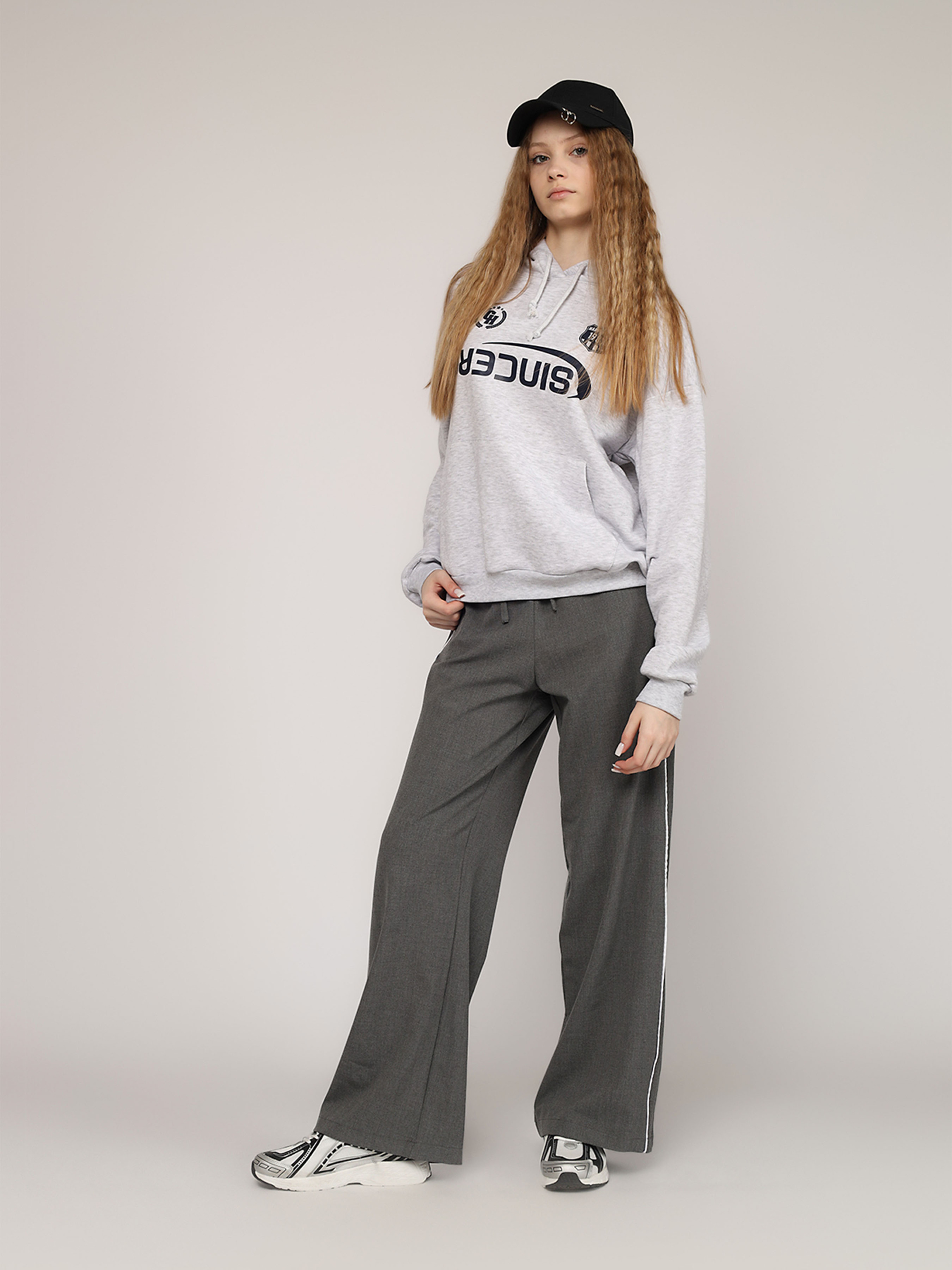 Худі жіночий – це затишний і трендовий елемент гардеробу, який ідеально вписується в повсякденний стиль. Його вільний крій дарує комфорт і свободу рухів, а м’яка тканина ніжно огортає, створюючи відчуття тепла в будь-яку погоду. Капюшон із зав’язками додає практичності та шарму, дозволяючи захиститися від вітру чи створити невимушений образ. Худі легко комбінується з легінсами, джинсами чи спортивними штанами, стаючи основою для стильних і зручних аутфітів. Ця річ підкреслює індивідуальність і сучасний підхід до моди. Жіночий худі – must-have для тих, хто цінує поєднання зручності, практичності та елегантної простоти в одному! Особливості виробу: Колір: сірий. Матеріал виготовлення: тринитка. Склад: 95 % бавовна, 5 % еластан. Крій: оверсайз.. Сезон: демісезон. Параметри моделі: Зріст: 170 сантиметрів. Розмір на моделі: XS, український розмір: 42. Країна виробник: Туреччина.