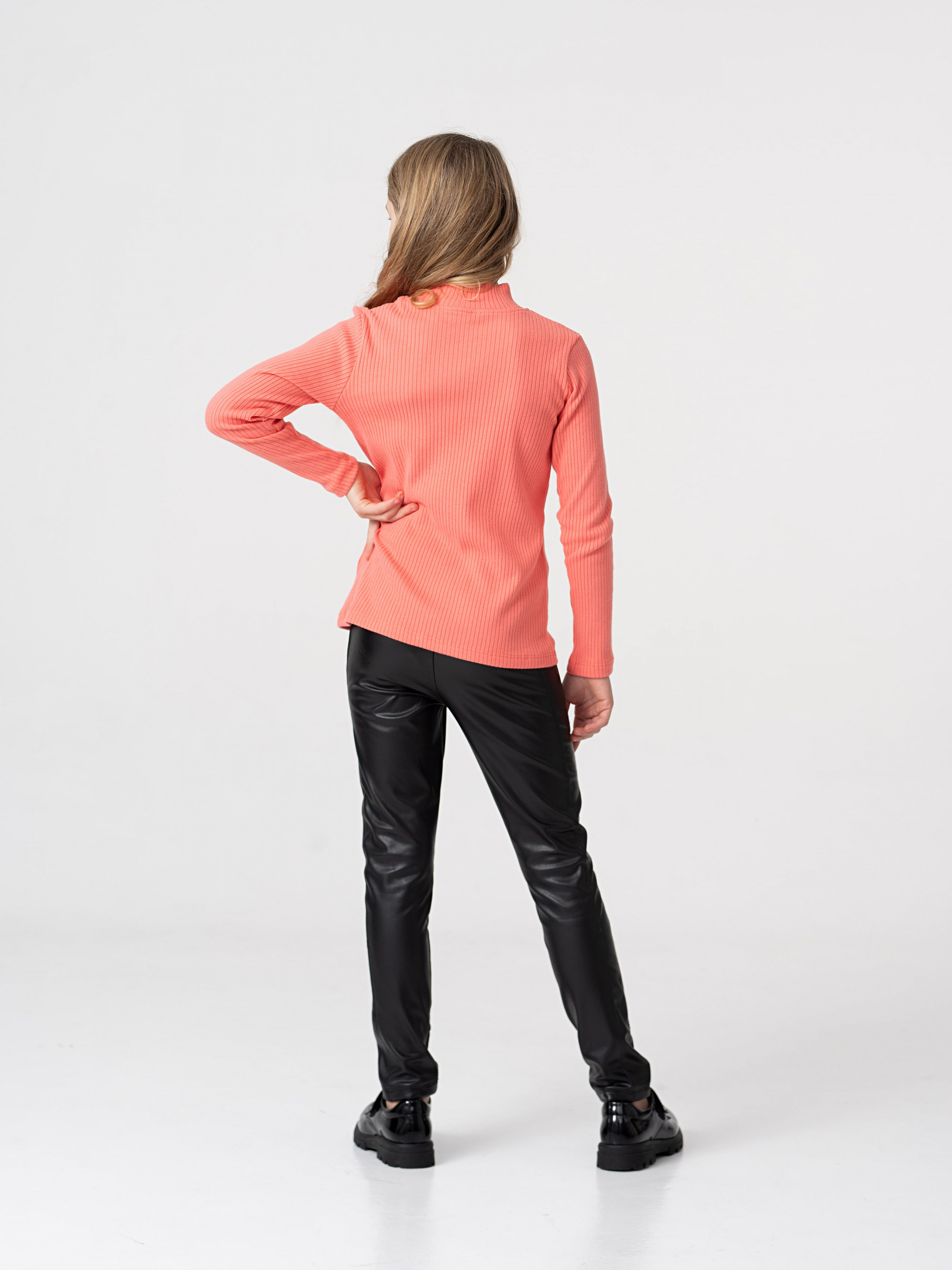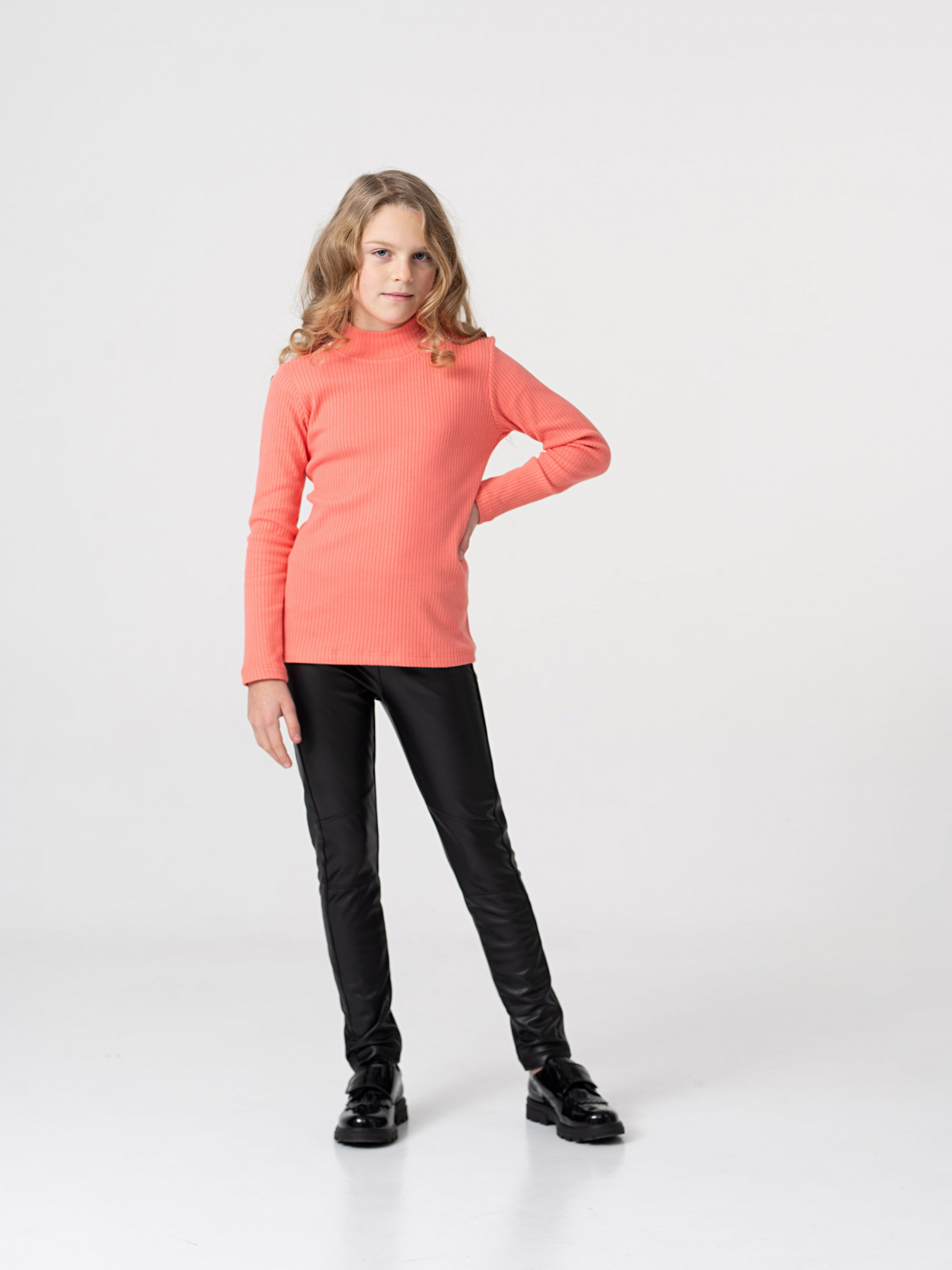 Деталі моделі: гольф коралового кольору. Комір-стійка. Довгий рукав. Сезон: осінь-весна-зима. Матеріал - органічний котон найвищої якості. Тонка та приємна до тіла тканина. Текстура тканини - у рубчик