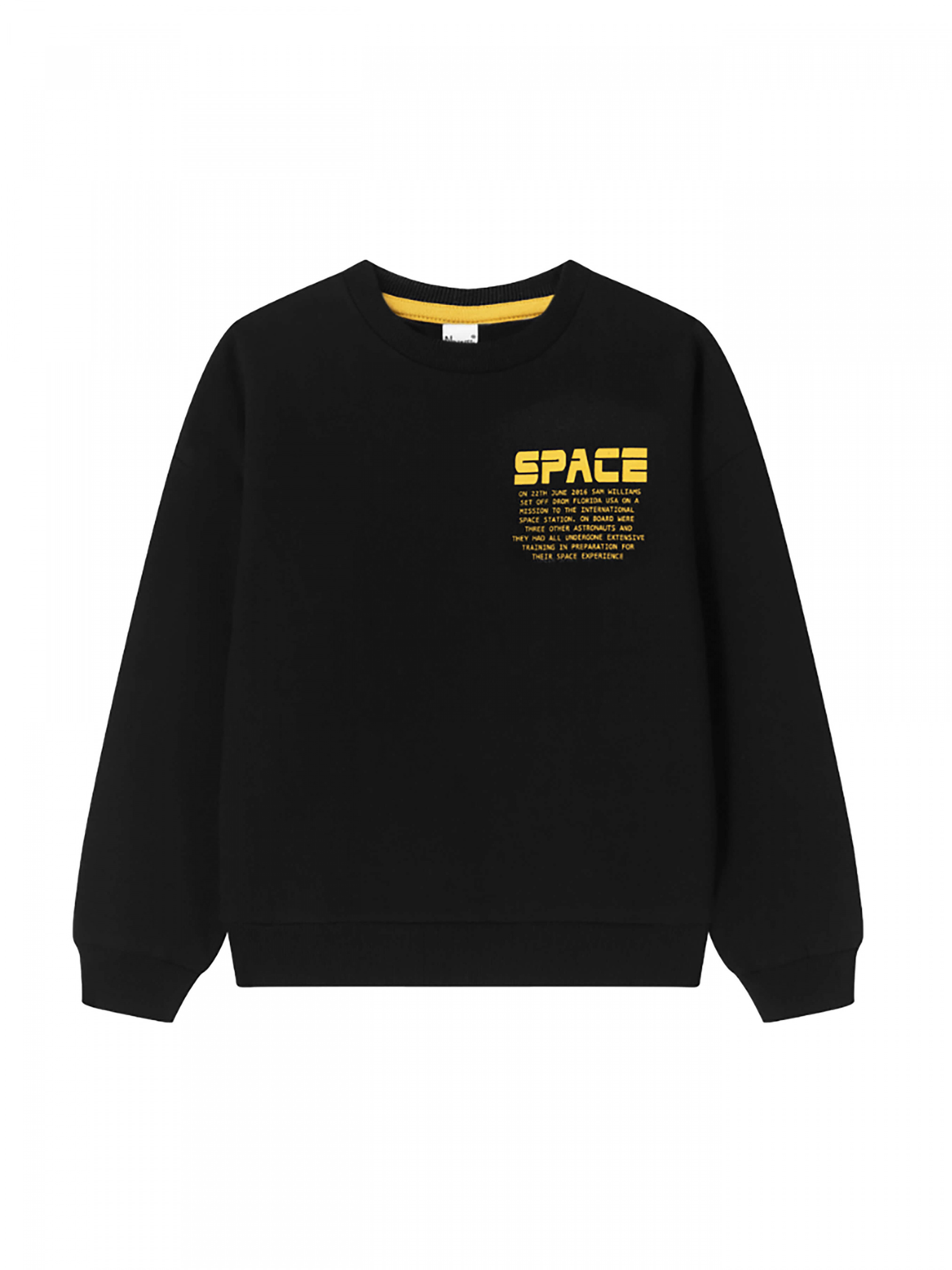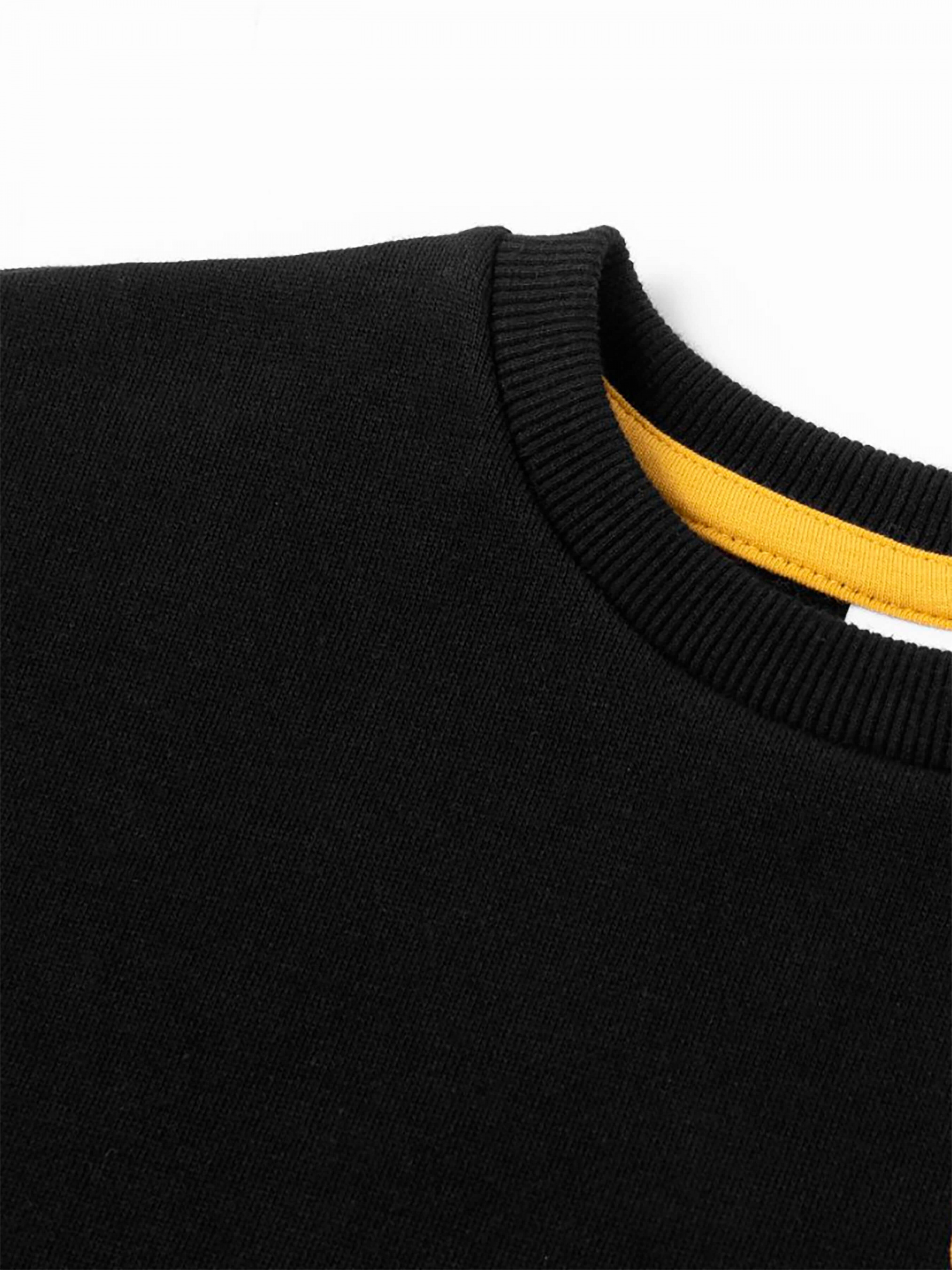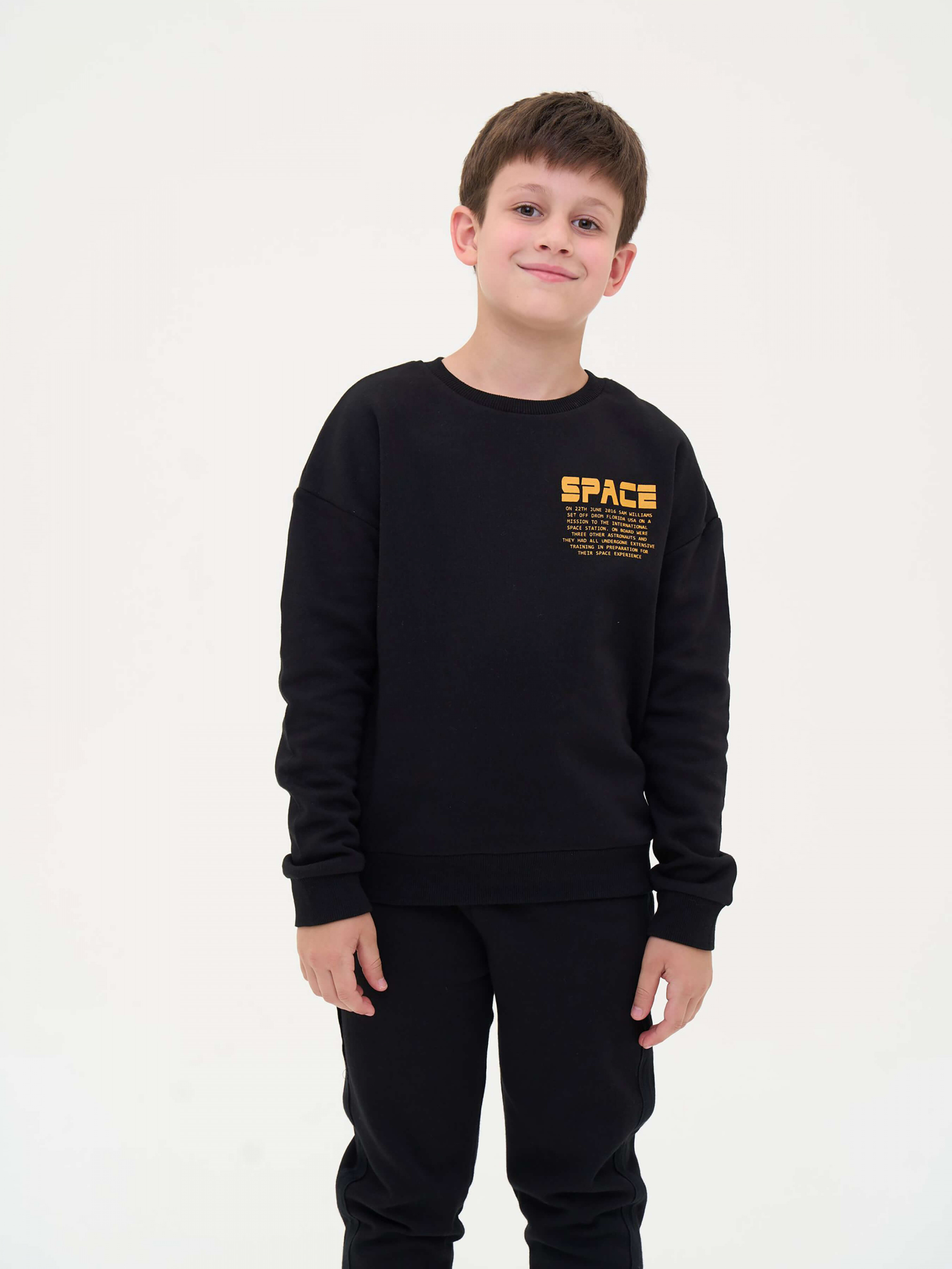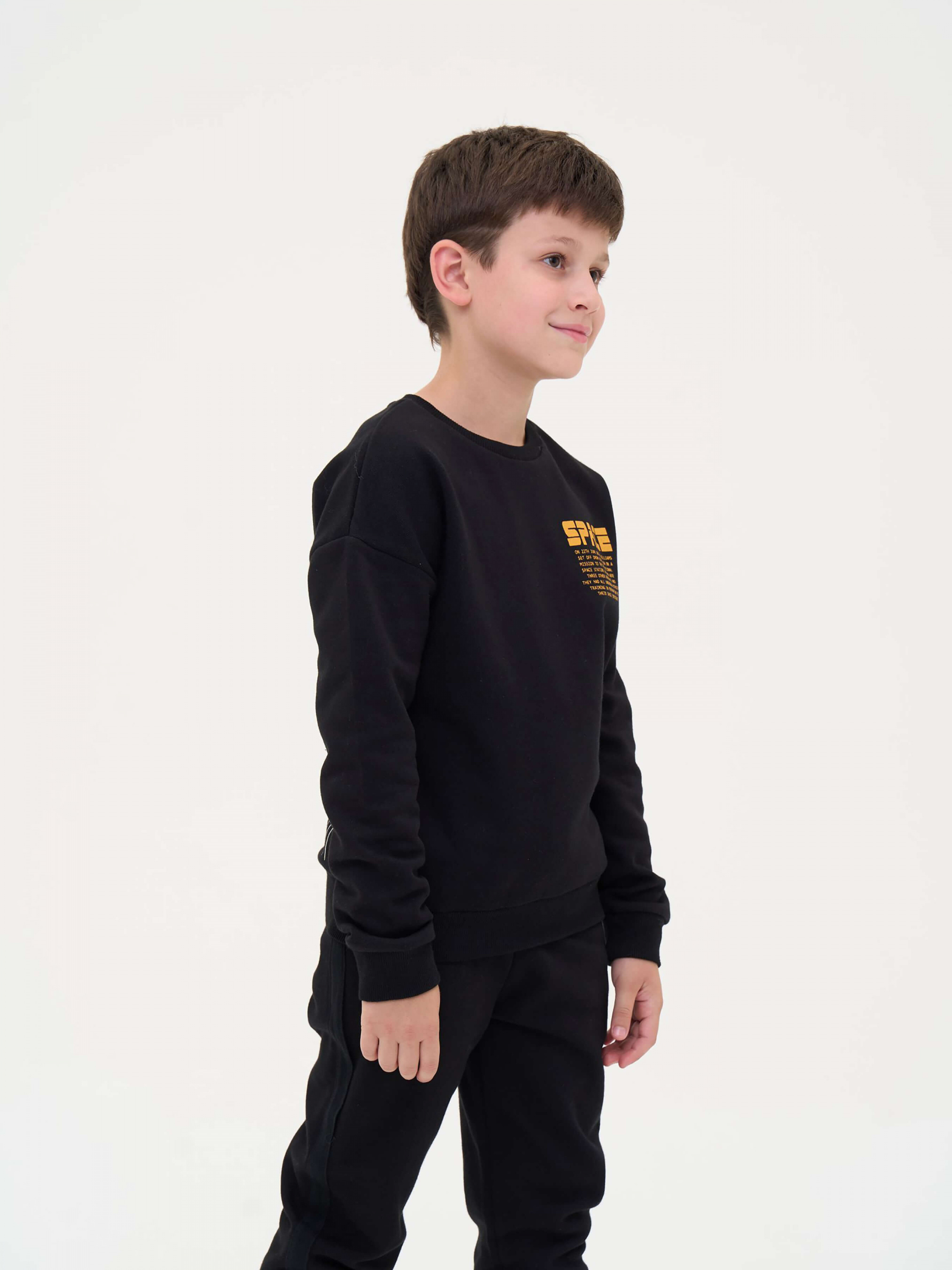 Зустрічайте нову колекцію - колаборація брендів YUMSTER і NEWNESS! Стильний світшот для хлопчиків з крутими принтами спереду та ззаду Деталі моделі: світшот чорного кольору. Круглі горловини, довгий рукав. Попереду помаранчевий принт у вигляді тексту. На спині принт білого кольору у вигляді графічного малюнка. Горловина, манжети на рукавах та низ світшота обрамлені еластичною резинкою. Розмірний ряд: на зріст від 128 см до 164 см Склад: 80% бавовна, 20% поліестер Рекомендації щодо догляду: машинне прання при температурі 30 градусів. *Відтінок кольору на фото може трохи відрізнятися від реального