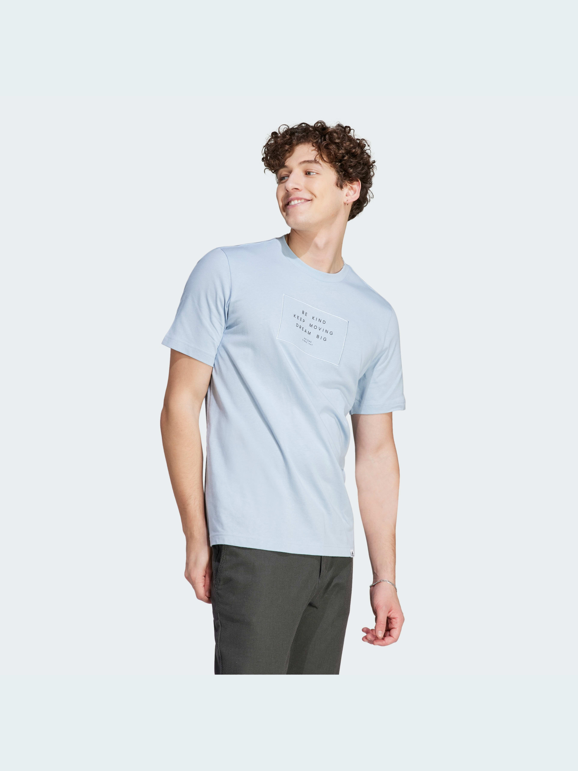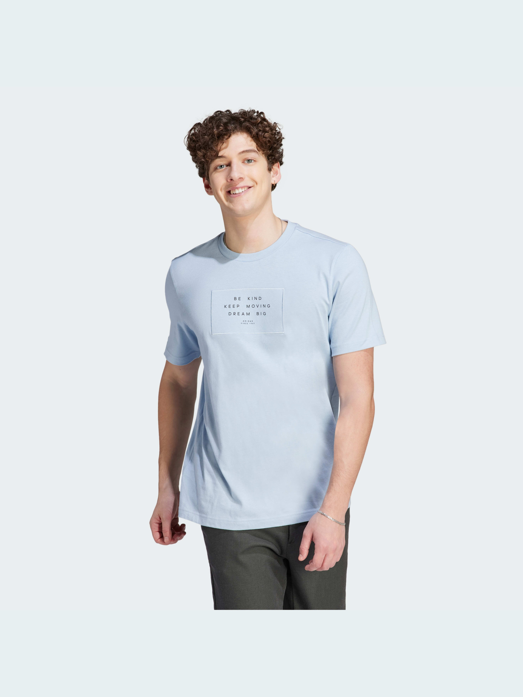 Не зупиняйся на досягнутому і продовжуй мріяти. Надихай інших на максимальну віддачу - і при цьому залишайся в повному комфорті. Ця футболка adidas несе оптимістичне послання на пришивній тканинній бирці. Повністю бавовняний матеріал і рифлена горловина забезпечують м'якість упродовж усього дня, а крій чудово поєднується з будь-якими речами - від звужених штанів до облягаючих шортів. Ми співпрацюємо з компанією Better Cotton, щоб поліпшити вирощування бавовни в усьому світі. Better Cotton робить глобальне виробництво бавовни кращим для людей, які її виробляють, кращим для довкілля, в якому вона росте, і кращим для майбутнього галузі. Найкраща бавовна поставляється за моделлю ланцюжка поставок, званою масовим балансом. Це означає, що найкращу бавовну не можна фізично відстежити до кінцевої продукції, проте фермери бавовни отримують вигоду від попиту на неї в обсягах, еквівалентних тим, які ми "отримуємо". Йде розмір в розмір. Ми радимо замовити цю модель в твоєму звичайному розмірі.